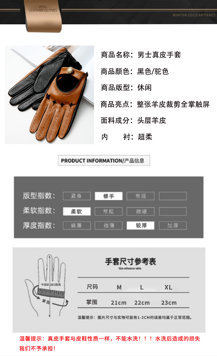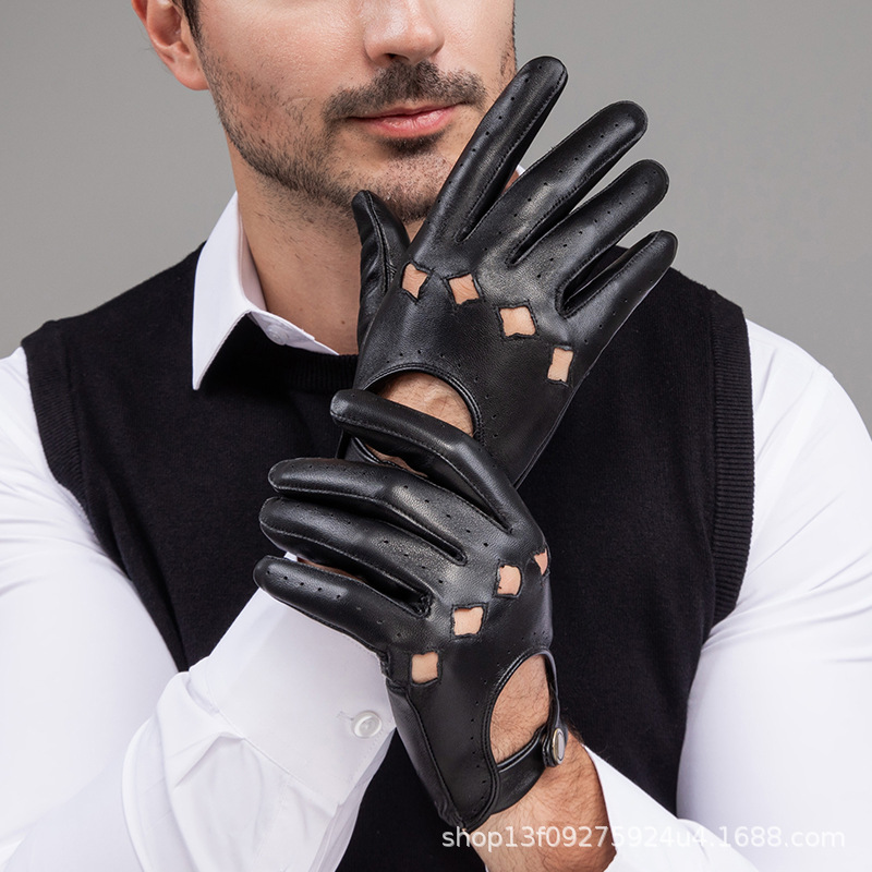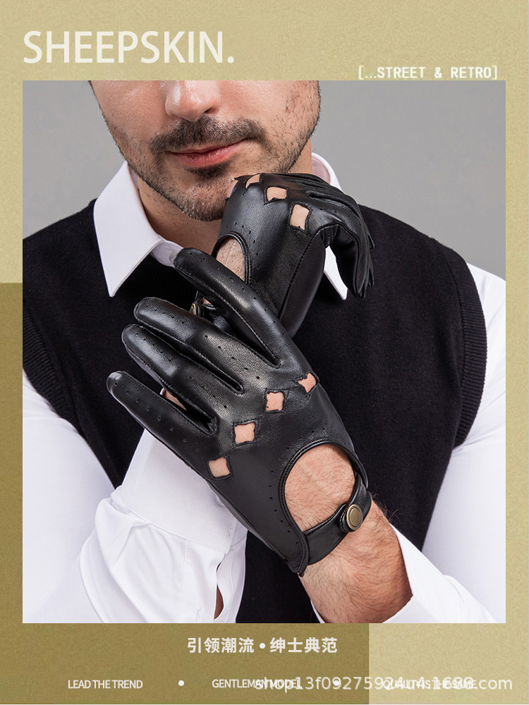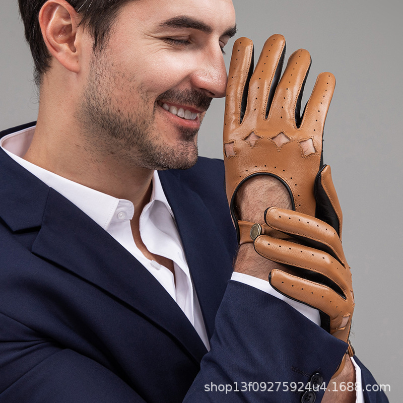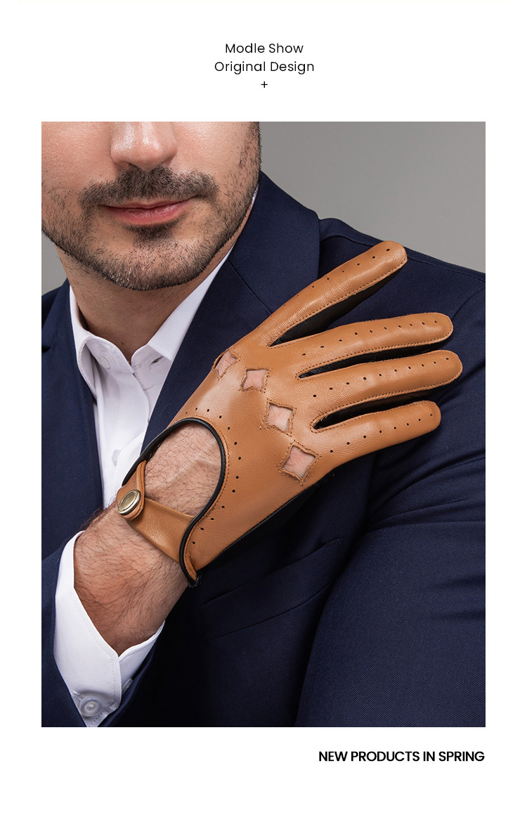 빈티지 오토바이 통기성 손 수리 손으로 잘 생긴 승마 램 스킨 남성 가죽 장갑의 첫 번째 레이어 얇은 터치 스크린 운전