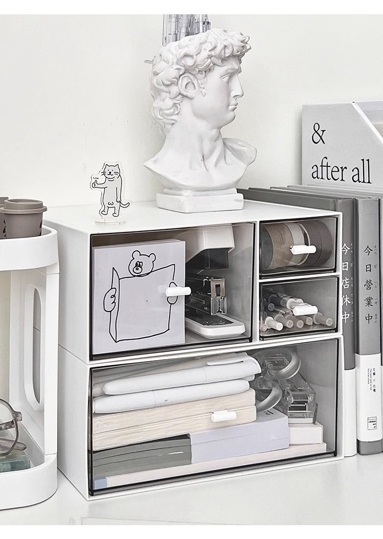 데스크탑 저장 상자 서랍 유형 아크릴 투명 책상 문구 화장품 랙 사무실 주최자 상자