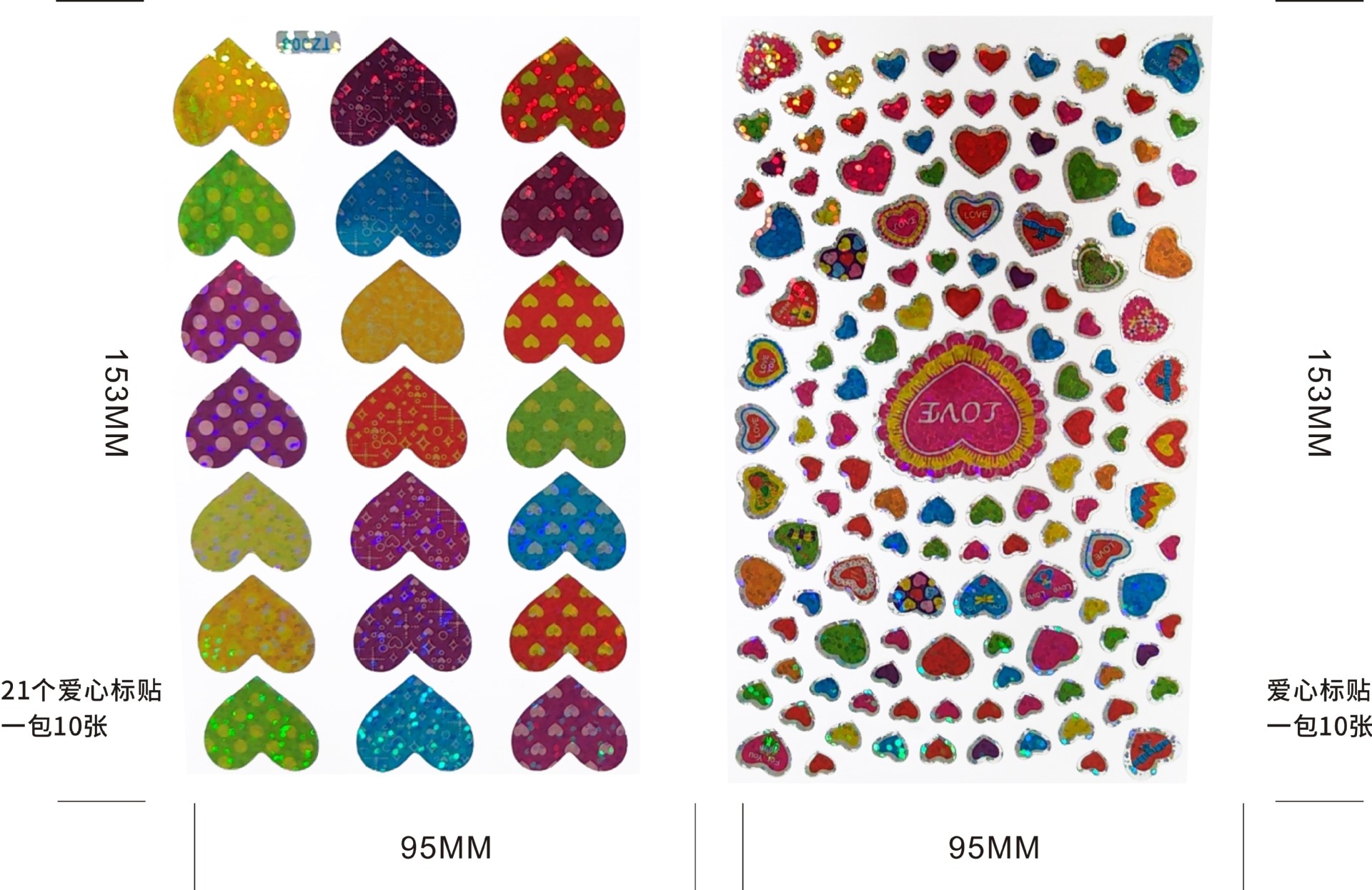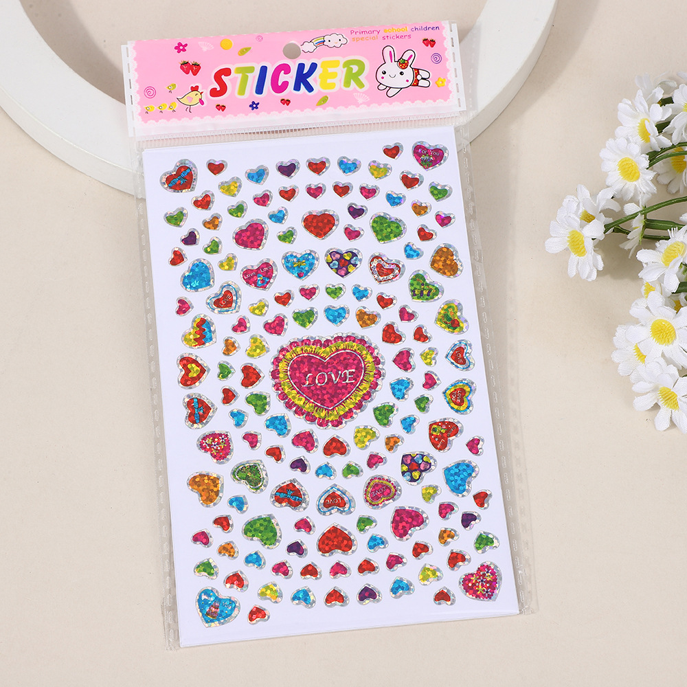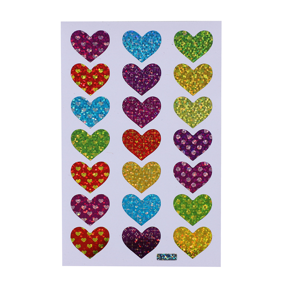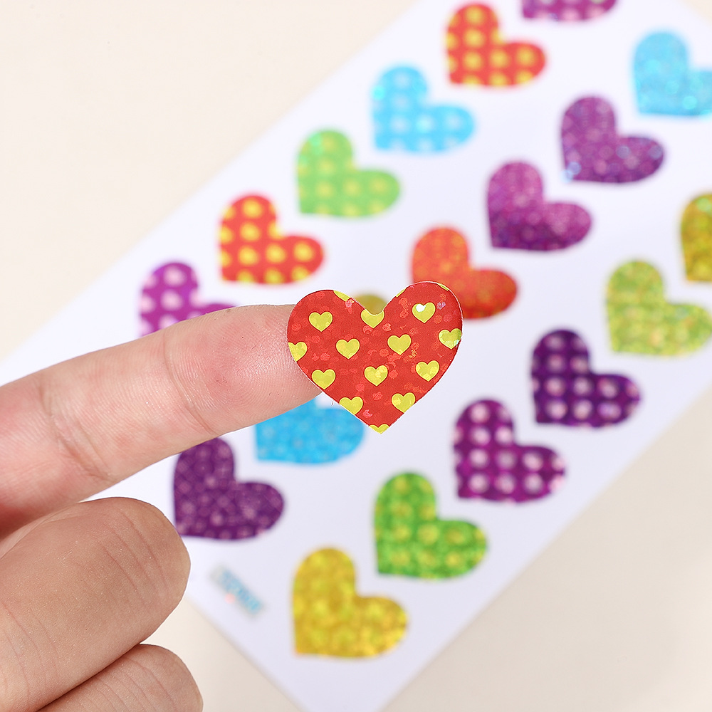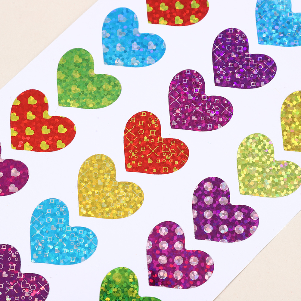한청 레이저 스티커 핸드북 하트 스티커 컬러풀 유치원 어린이 보상 스티커 반짝이 하트 모양 DIY 장식