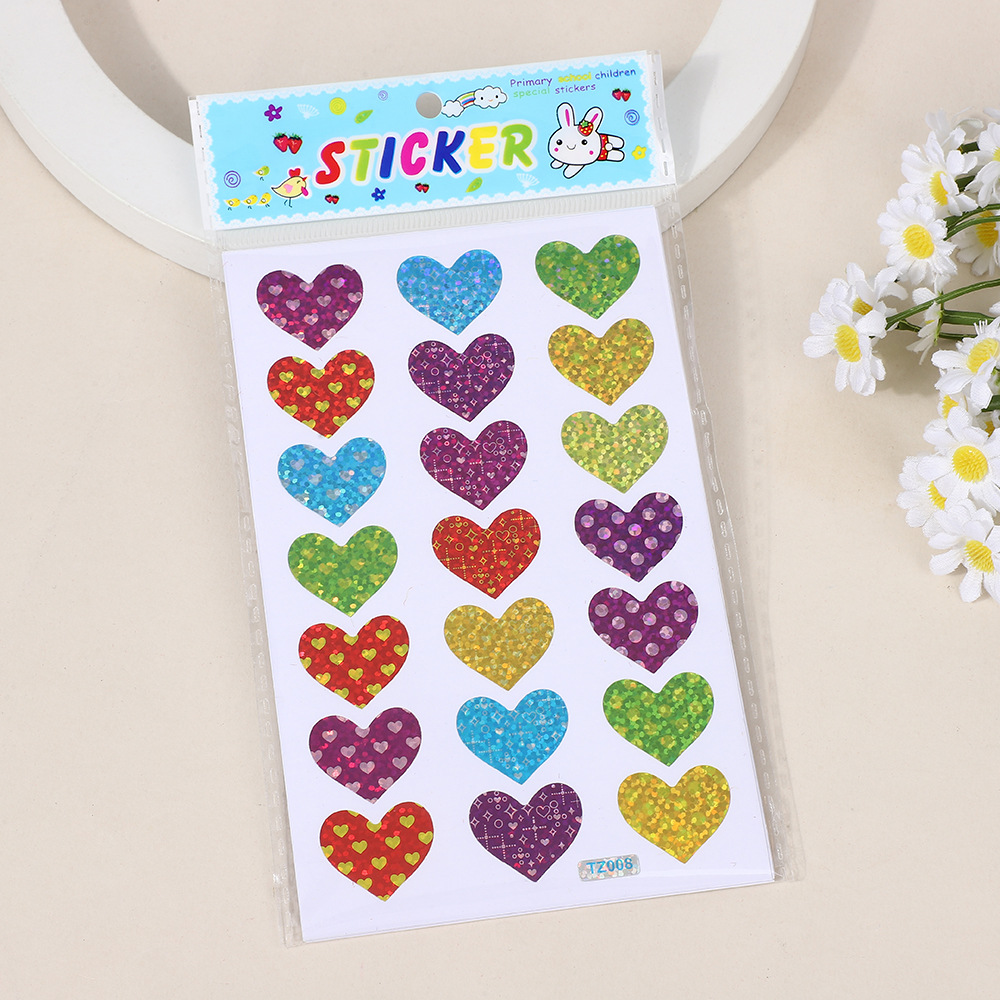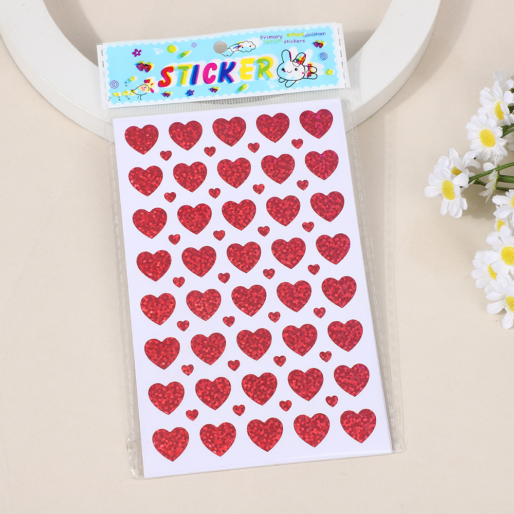 한청 레이저 스티커 핸드북 하트 스티커 컬러풀 유치원 어린이 보상 스티커 반짝이 하트 모양 DIY 장식스토어 가기