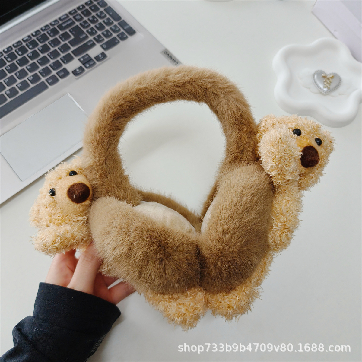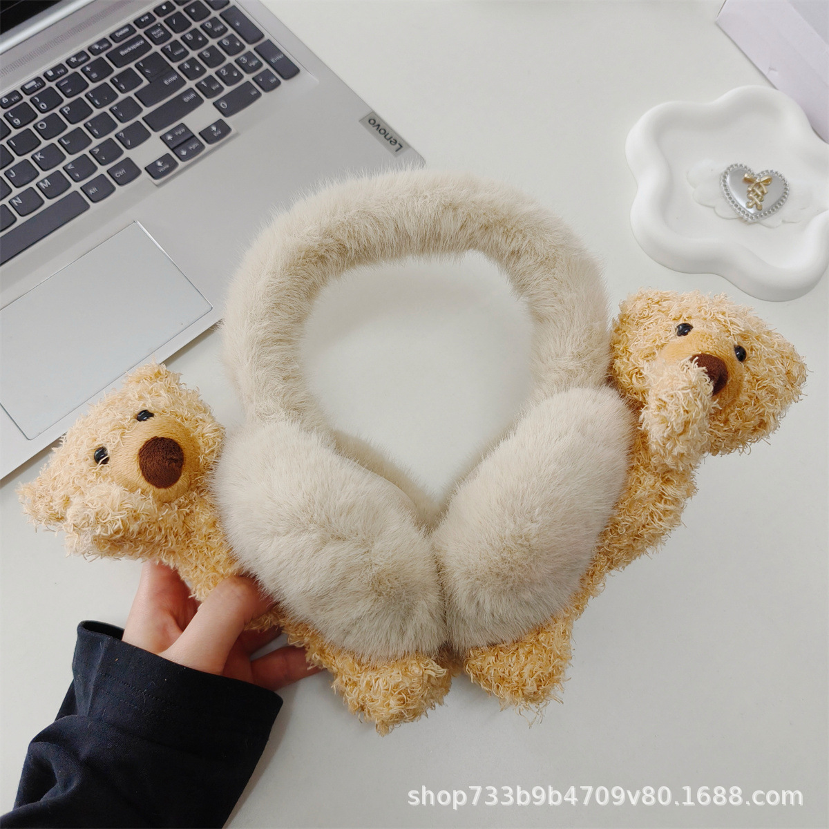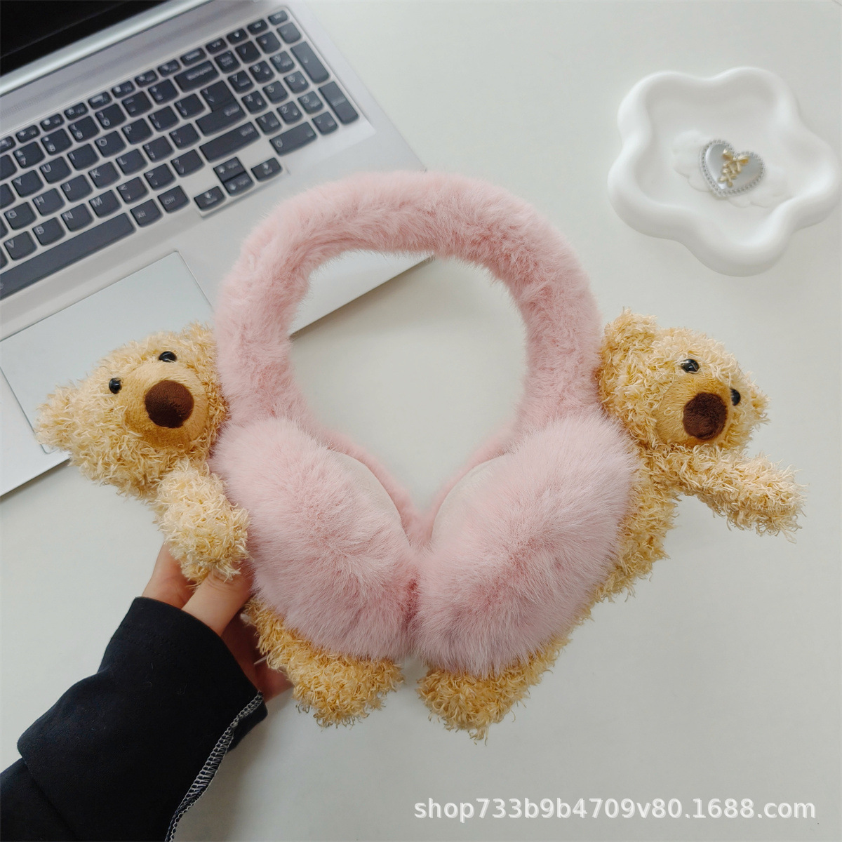 겨울 새로운 귀여운 플러시 곰 귀마개 접이식 두꺼운 따뜻한 학생 사이클링 방풍 및 방한 귀 가방 여성을위한스토어 가기