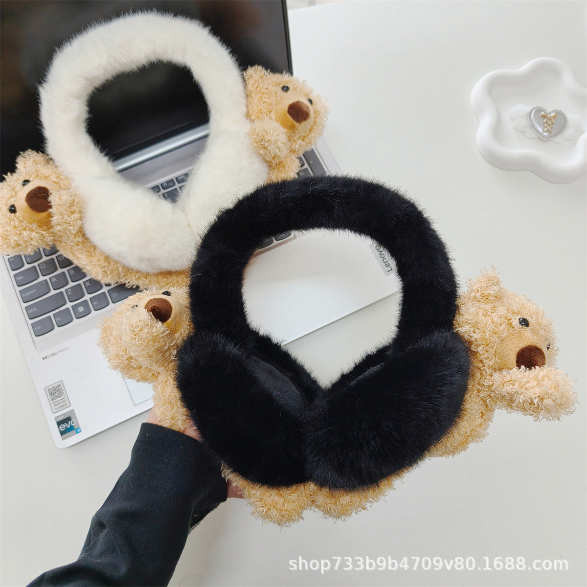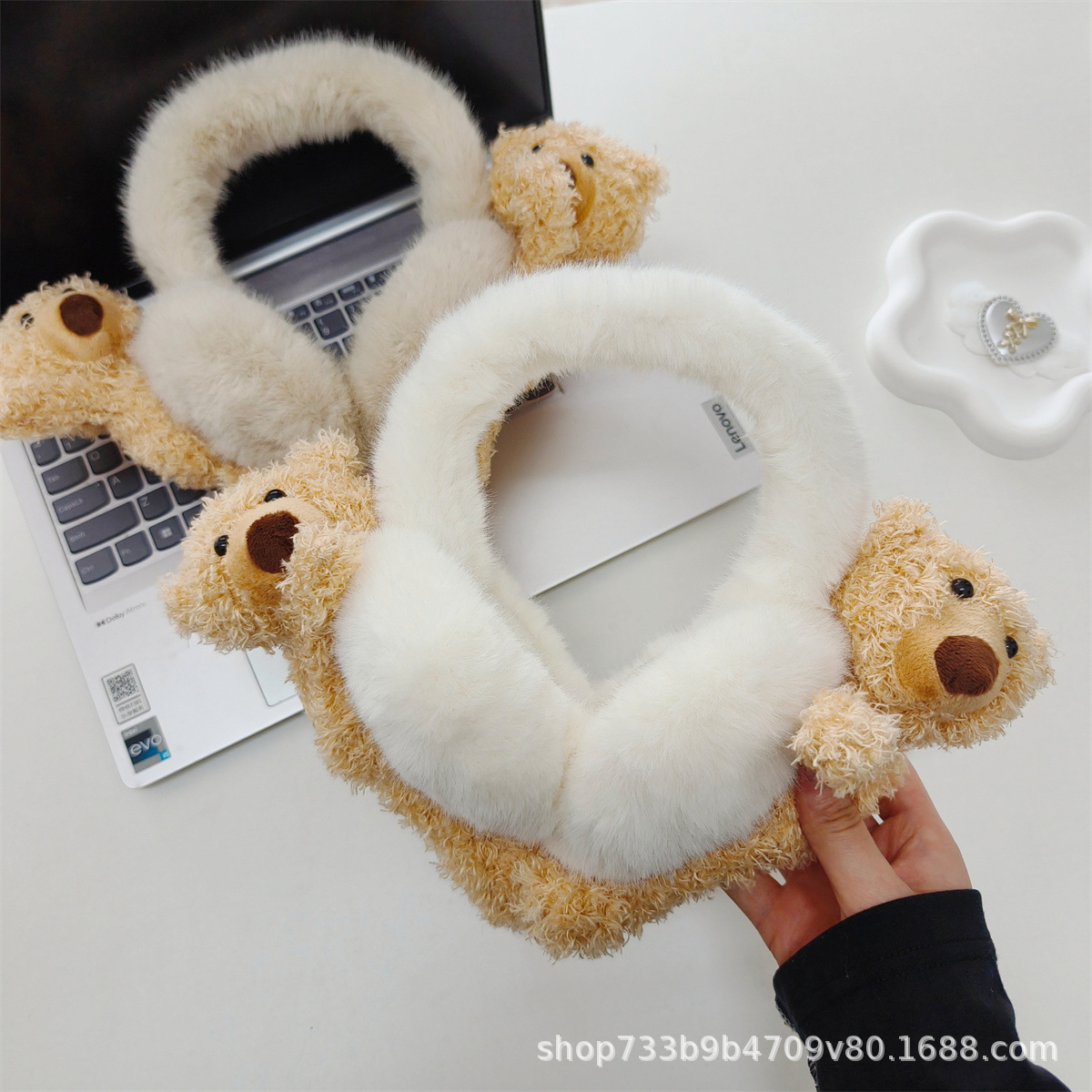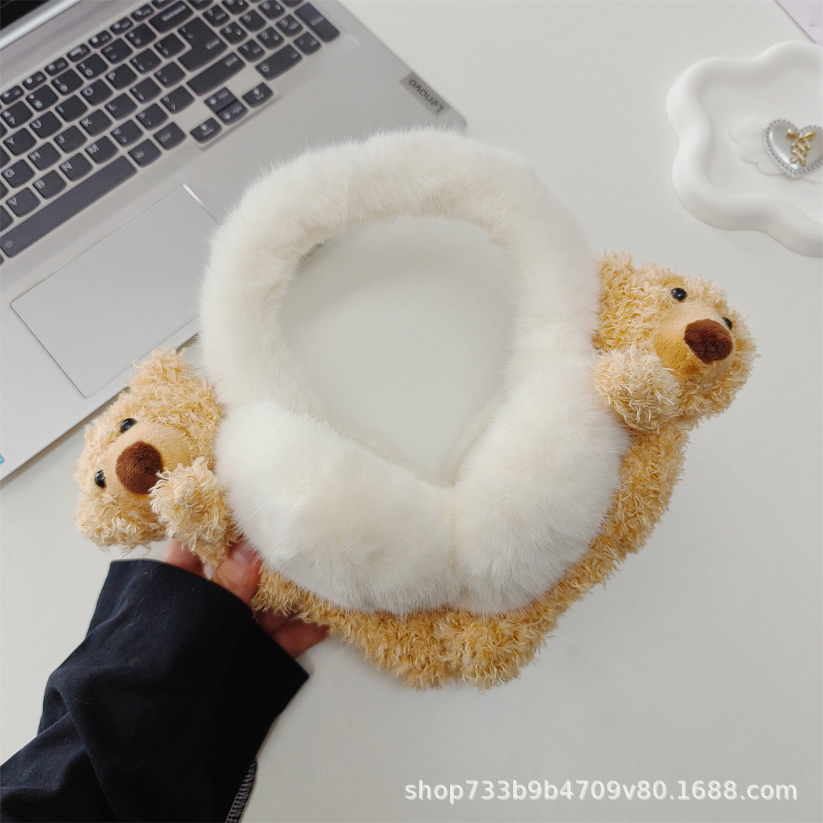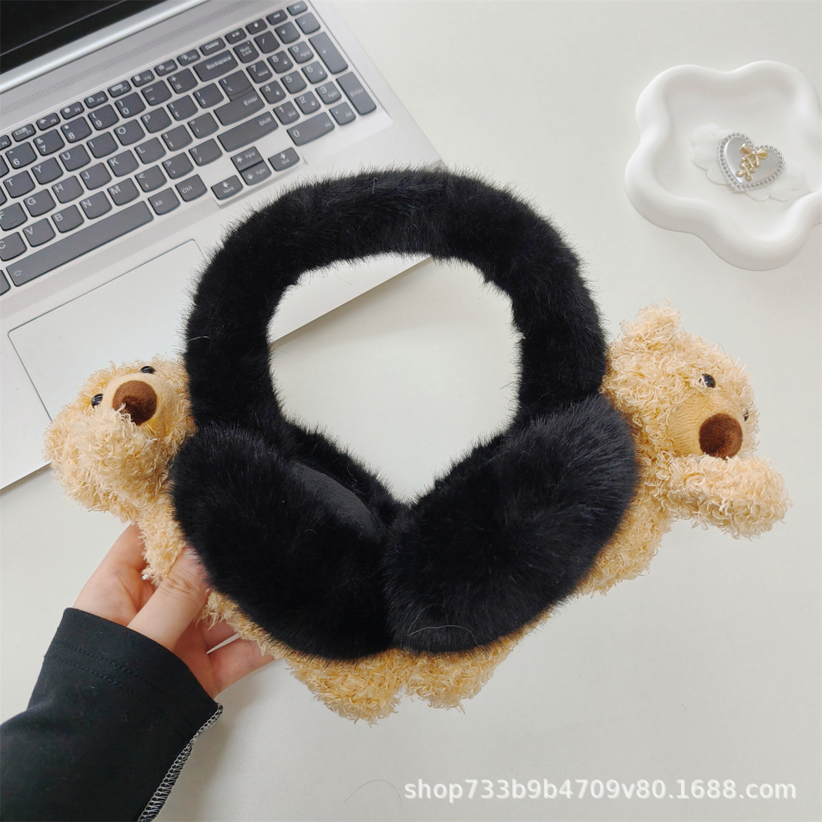겨울 새로운 귀여운 플러시 곰 귀마개 접이식 두꺼운 따뜻한 학생 사이클링 방풍 및 방한 귀 가방 여성을위한스토어 가기