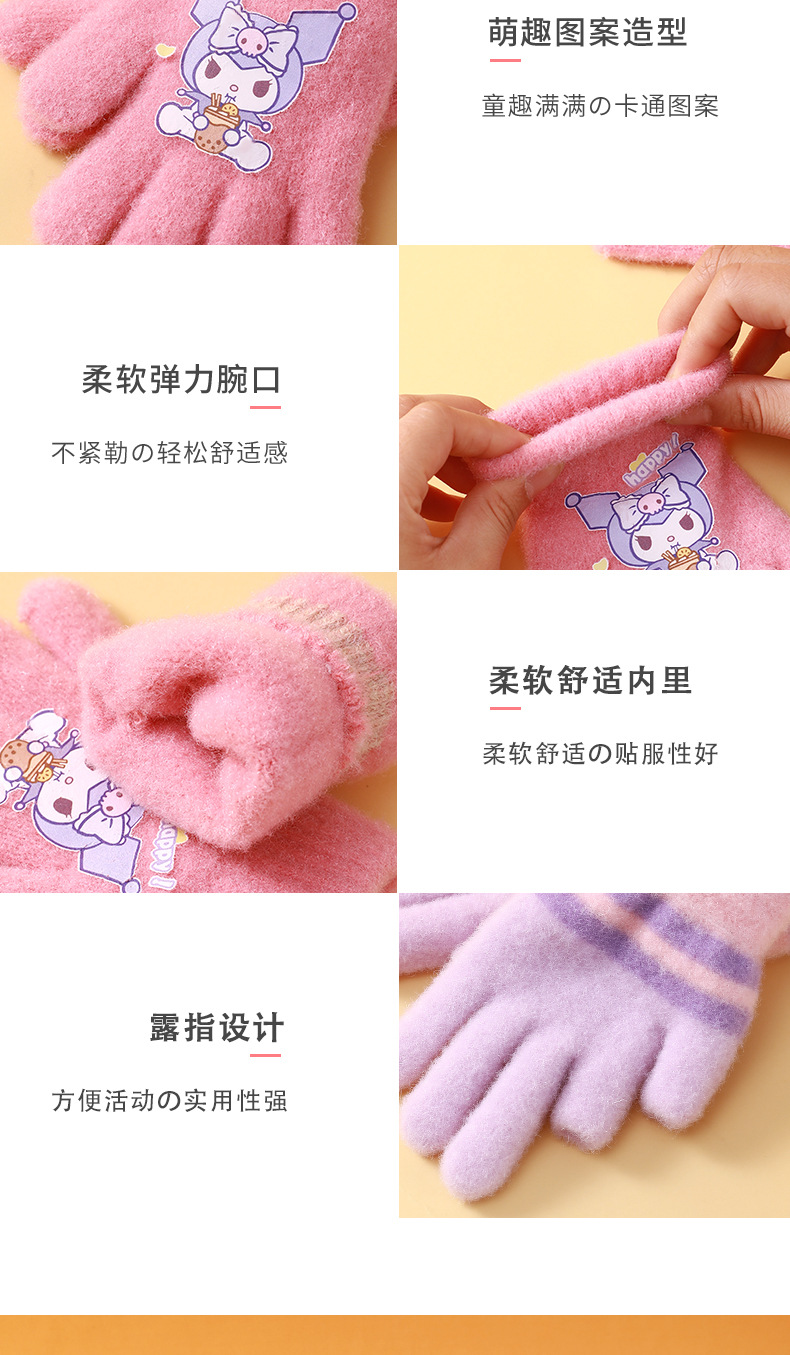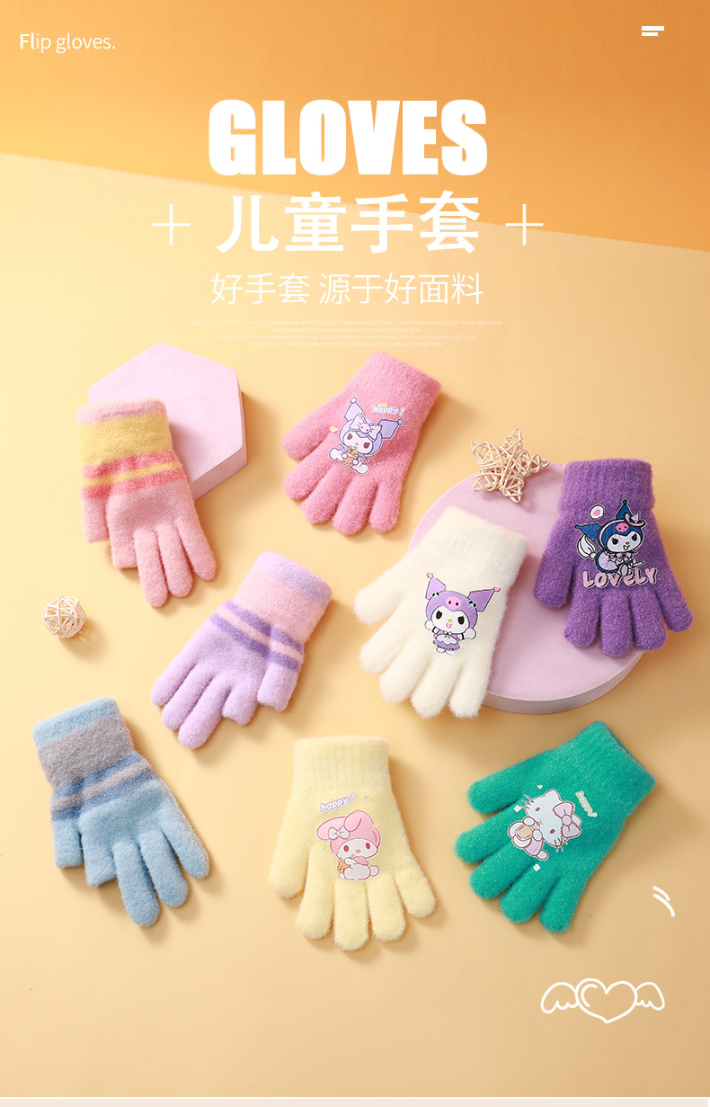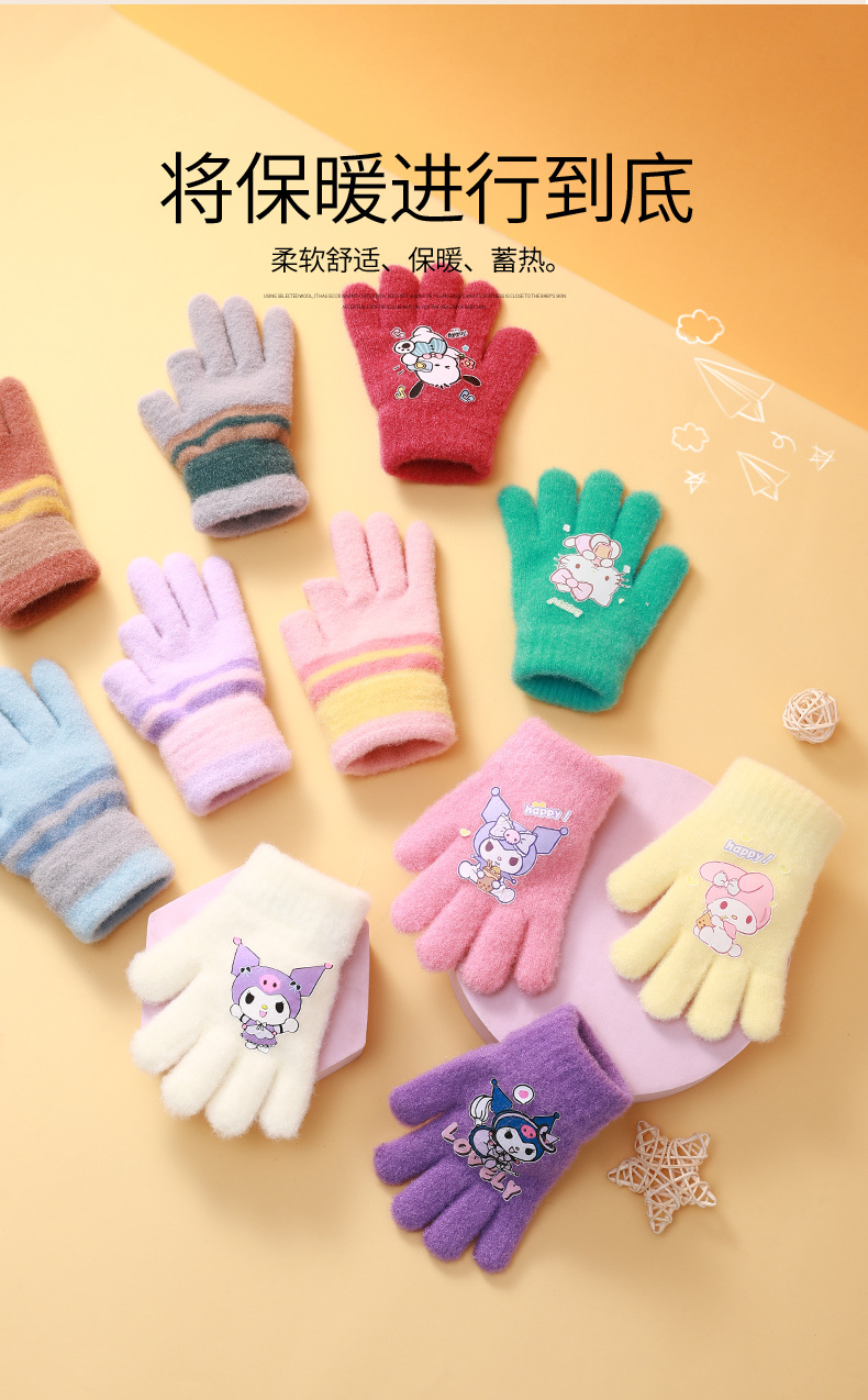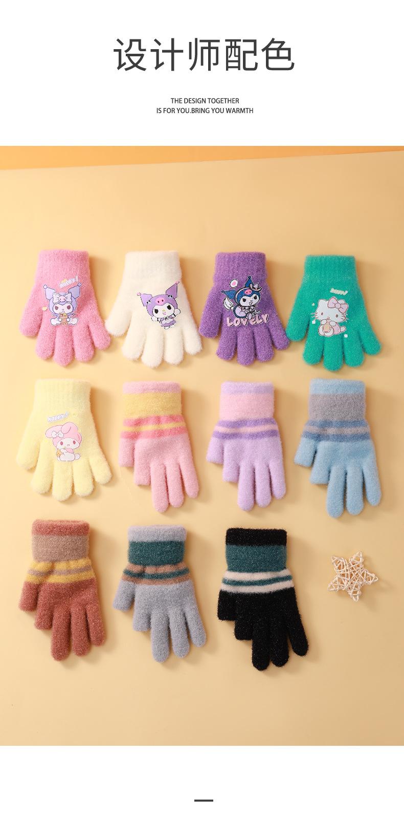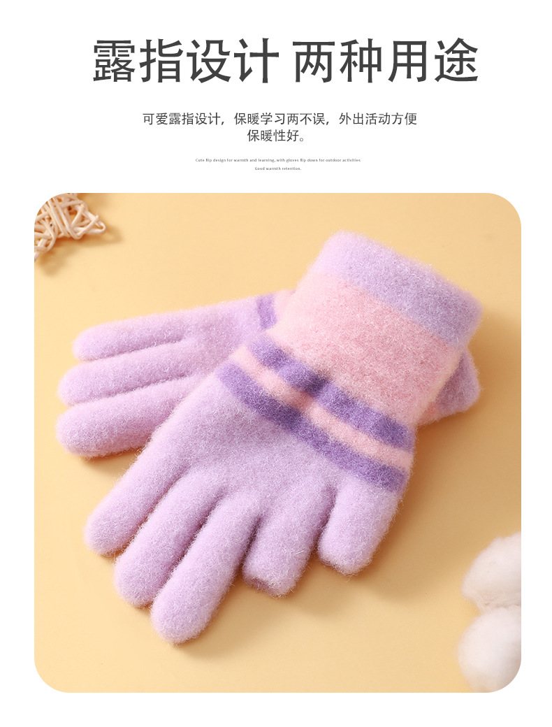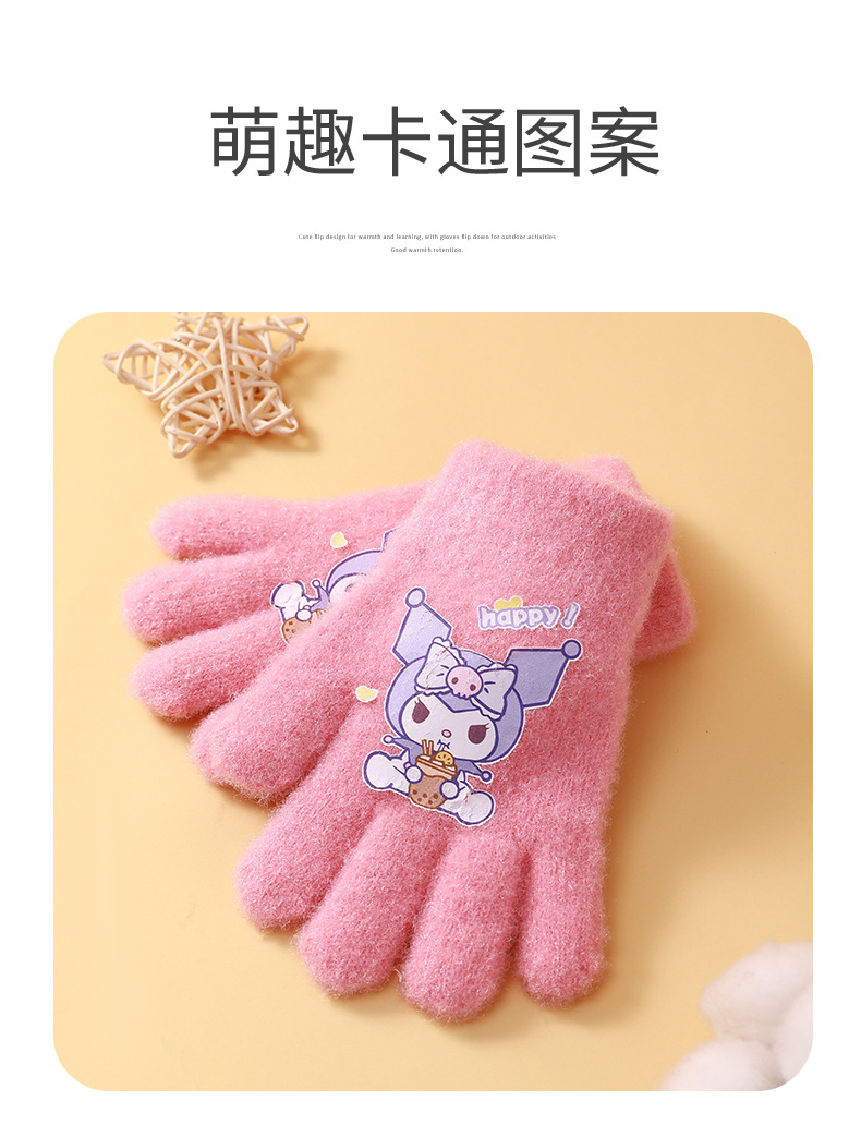 어린이 장갑 겨울 따뜻한 니트 양모 기모 만화 다섯 손가락 귀여운 손가락 쓰기 장갑 소년 소녀를위한 장갑스토어 가기