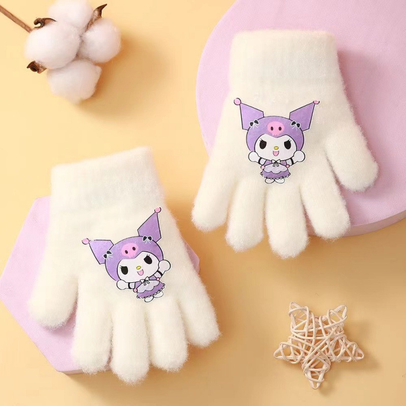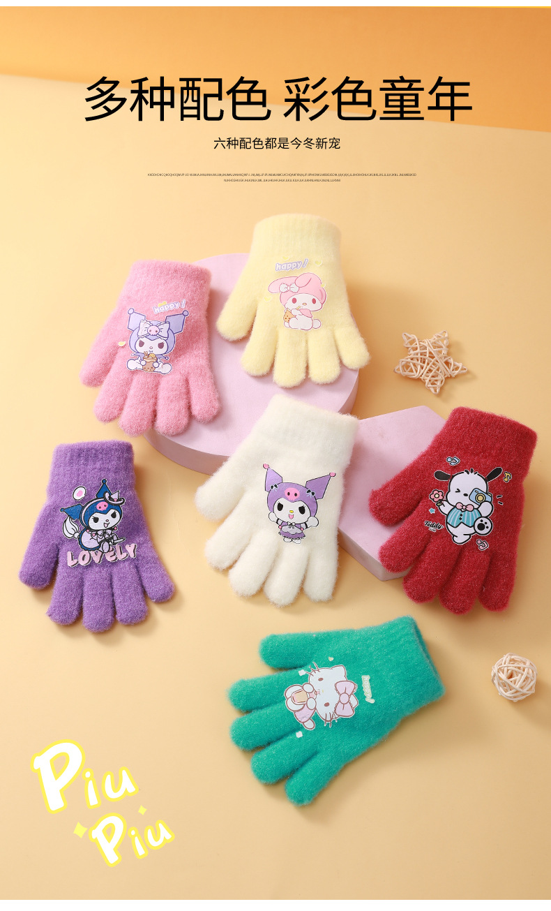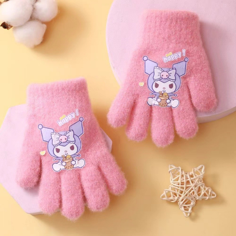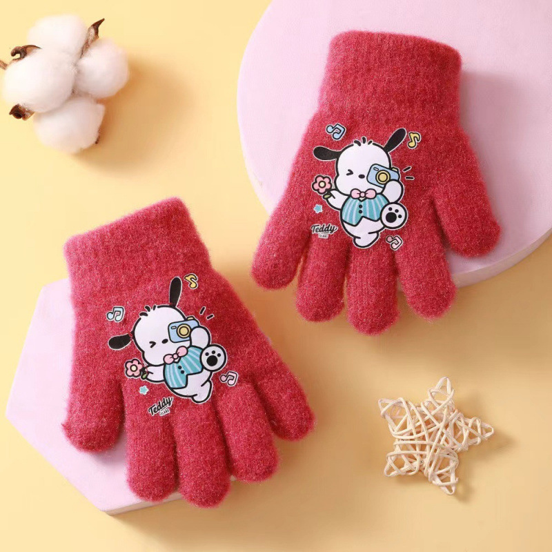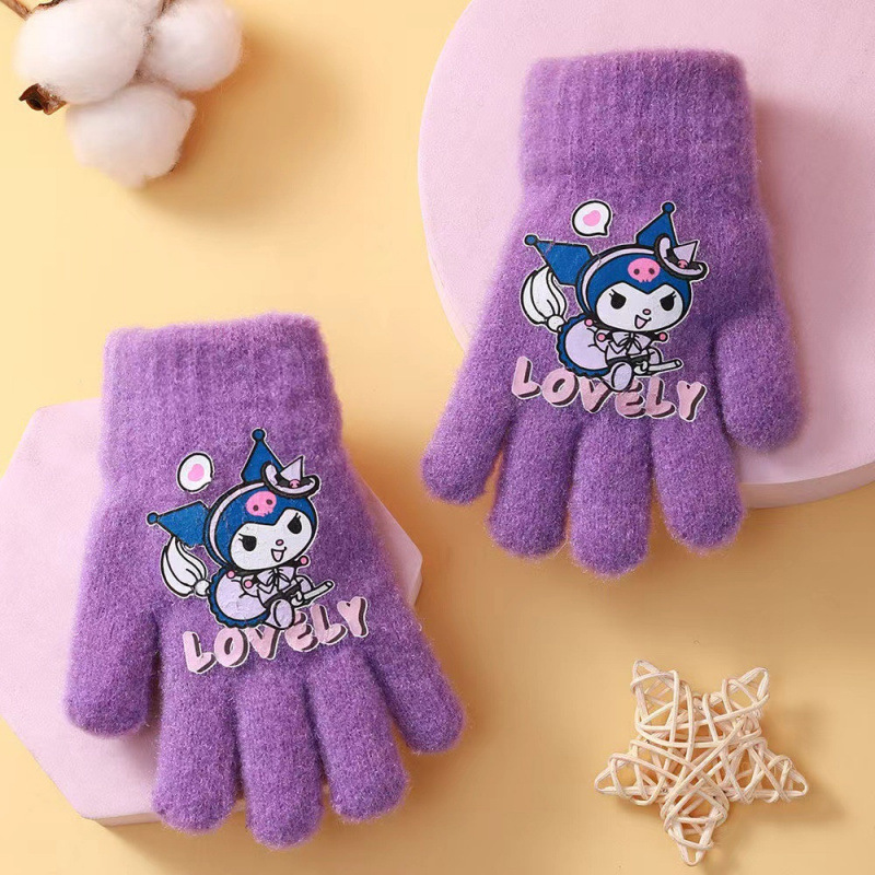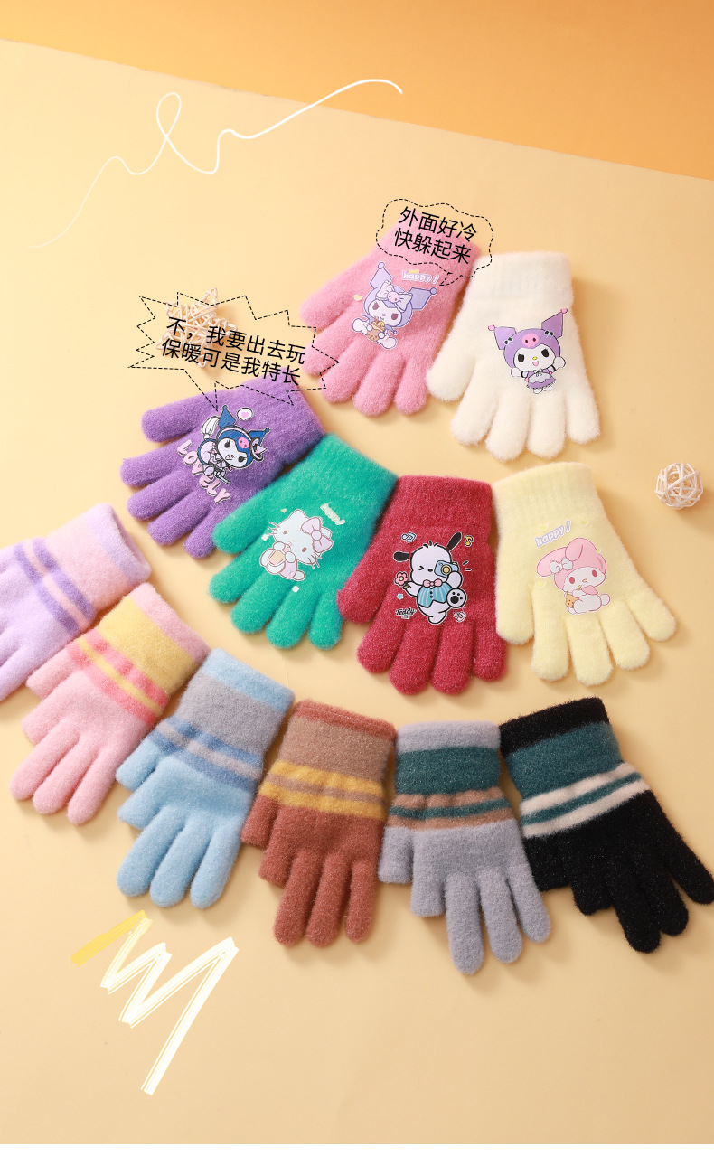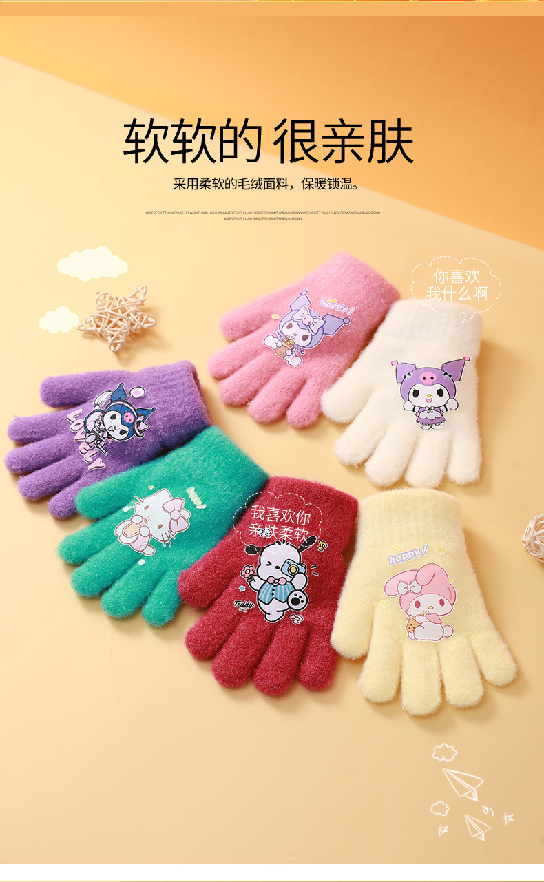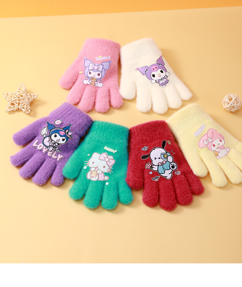어린이 장갑 겨울 따뜻한 니트 양모 기모 만화 다섯 손가락 귀여운 손가락 쓰기 장갑 소년 소녀를위한 장갑스토어 가기