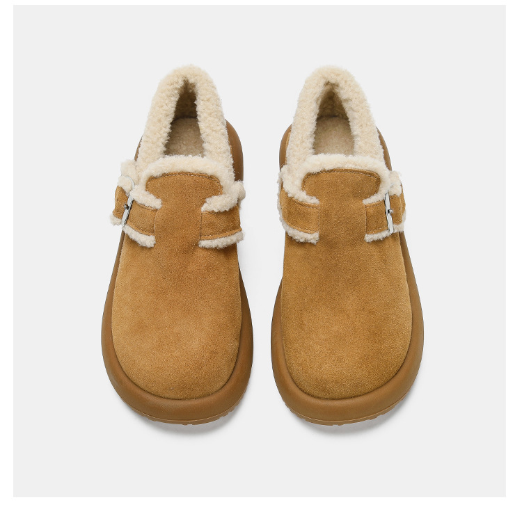 두꺼운 바닥 기모 콩 신발 여성의 2024 겨울 새로운 라운드 토 가죽 마오 마오 신발 캐주얼 스노우 부츠 Birkenn 코튼 신발스토어 가기