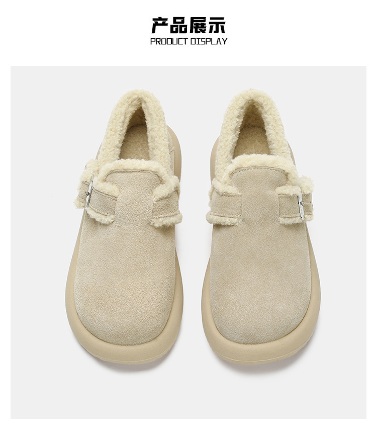 두꺼운 바닥 기모 콩 신발 여성의 2024 겨울 새로운 라운드 토 가죽 마오 마오 신발 캐주얼 스노우 부츠 Birkenn 코튼 신발