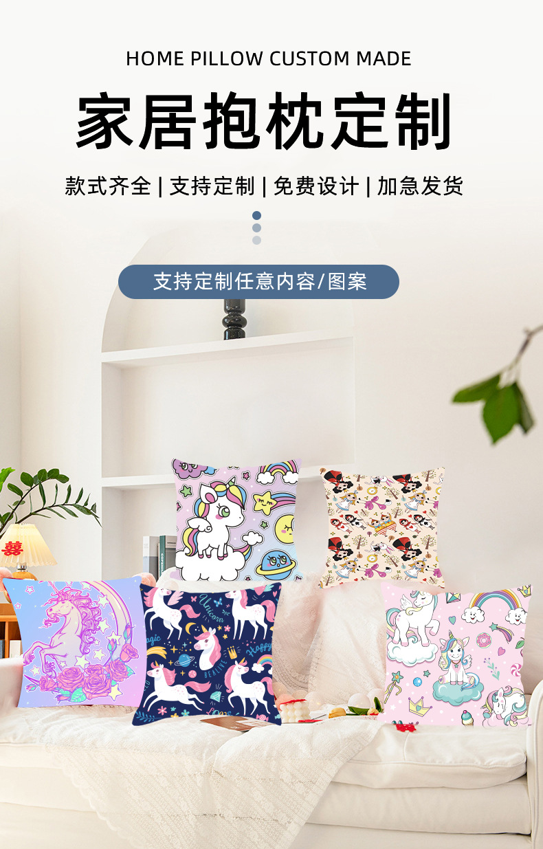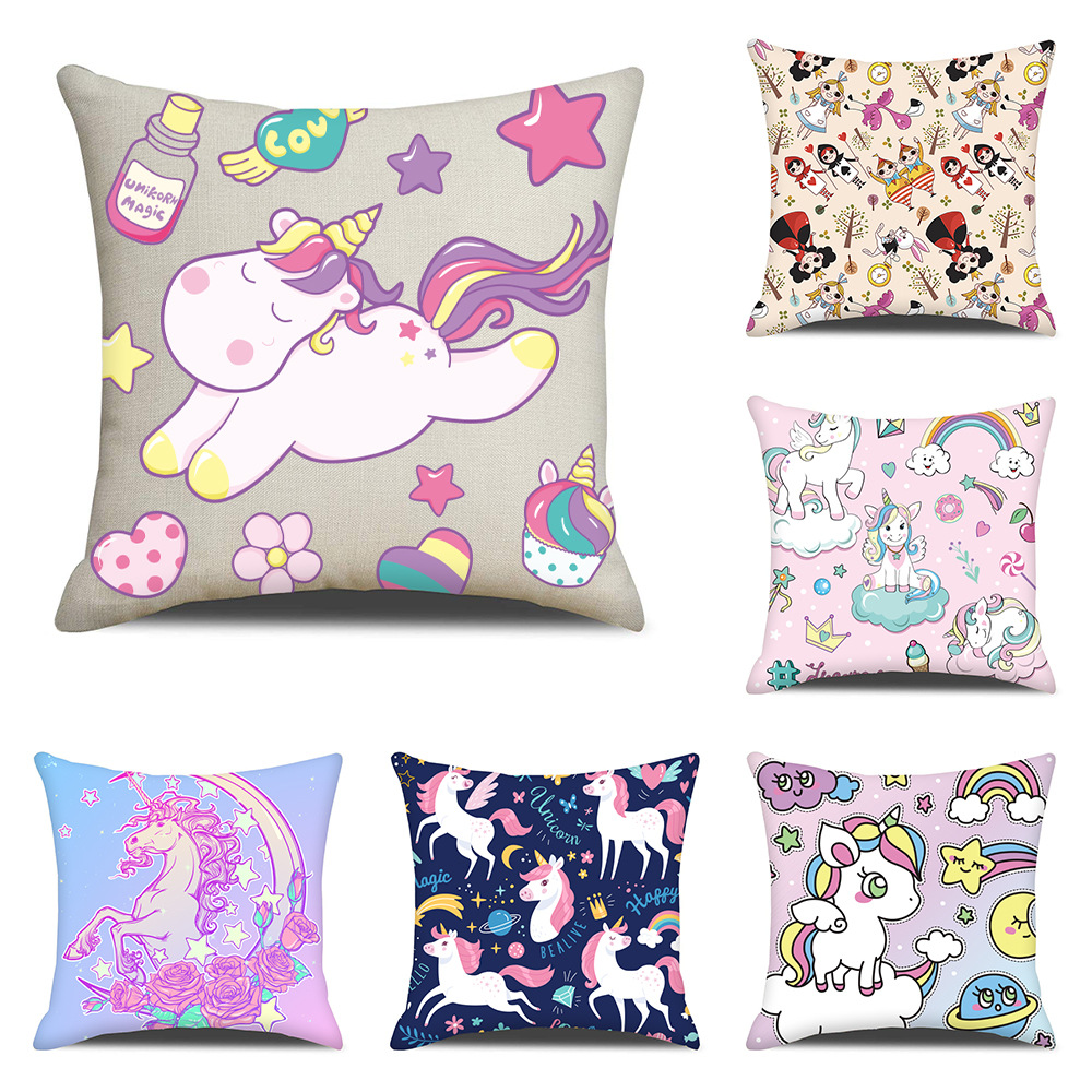 만화 애니메이션 베개 케이스 어린이 침실 귀여운 무지개 흰색 말 베개 케이스 홈 침실 면 린넨 베개 케이스스토어 가기