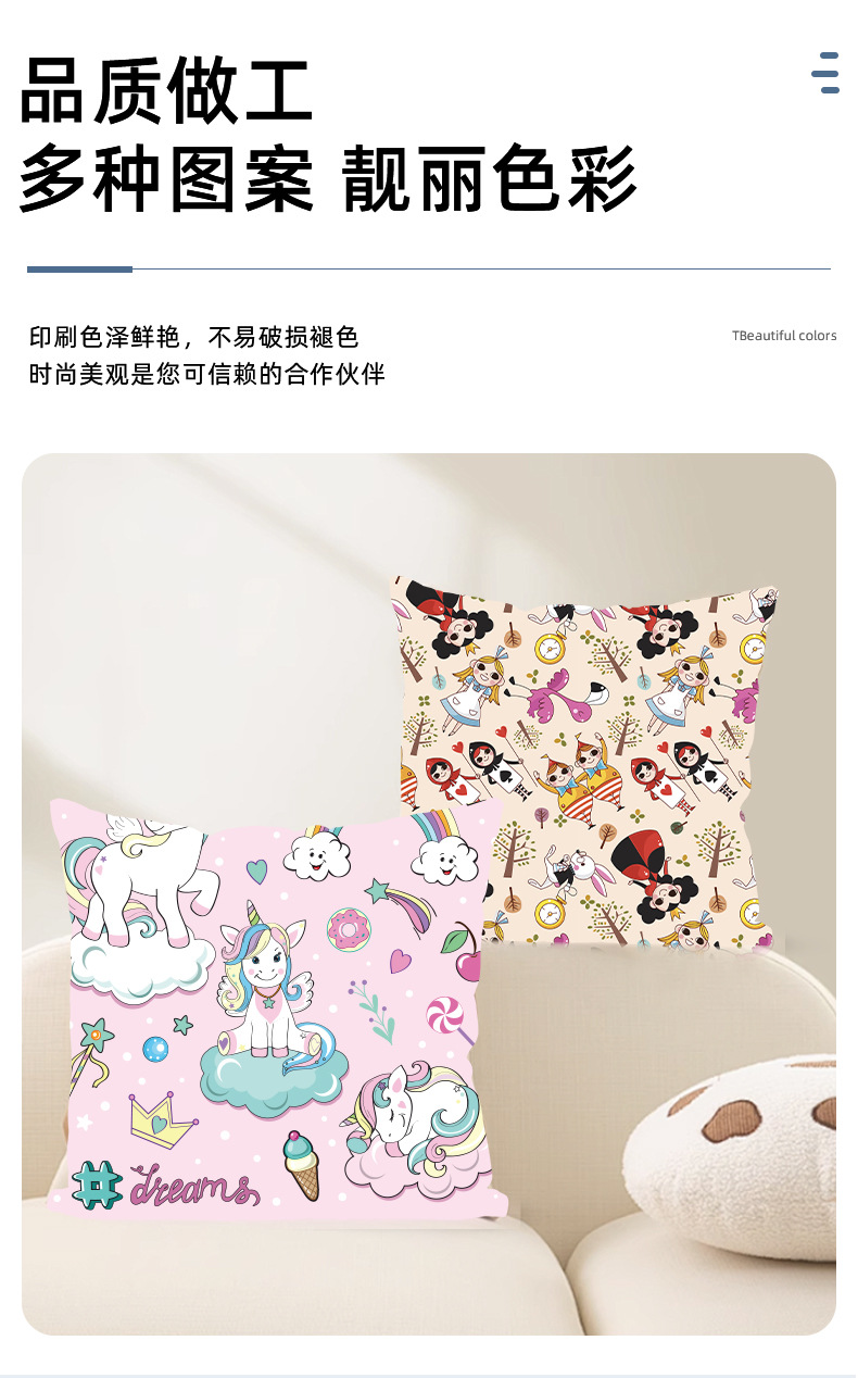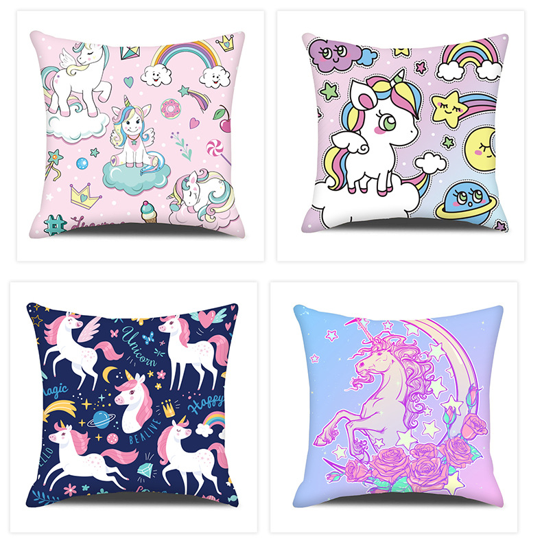 만화 애니메이션 베개 케이스 어린이 침실 귀여운 무지개 흰색 말 베개 케이스 홈 침실 면 린넨 베개 케이스