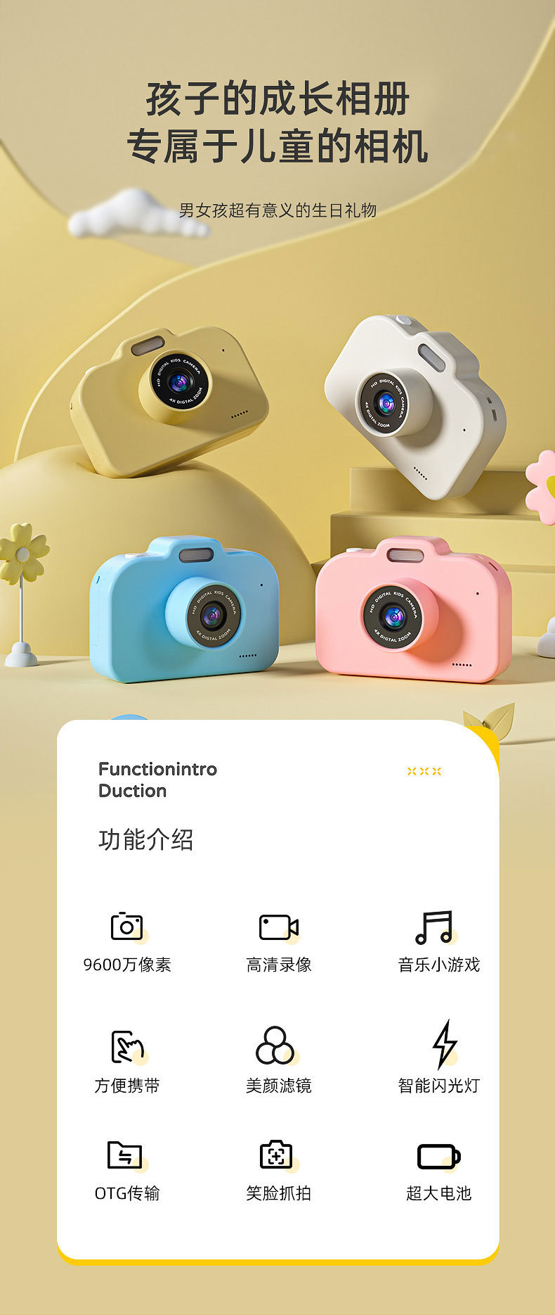 跨境新款卡通太空宇航员水转印 儿童相机 X2D闪光灯相机 前后双摄