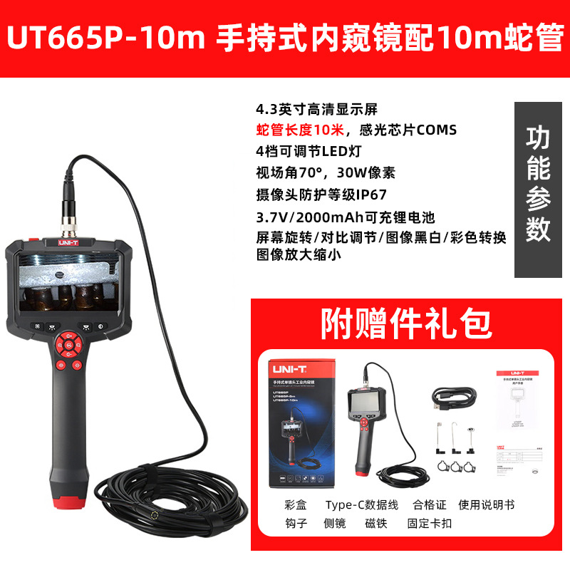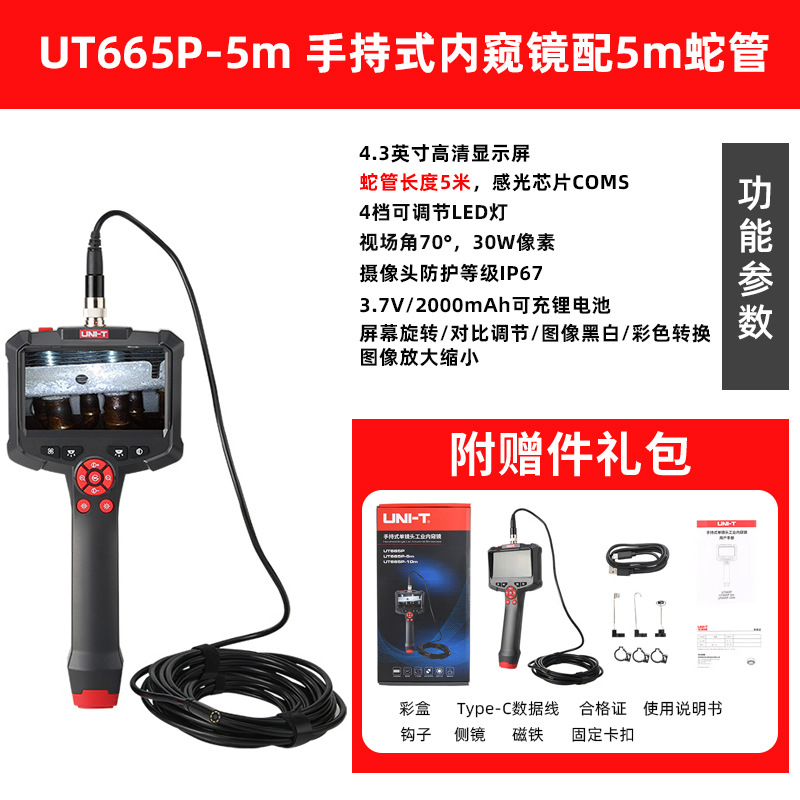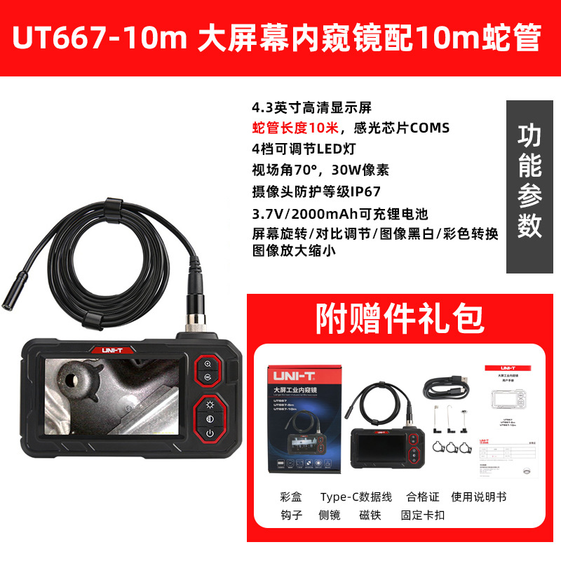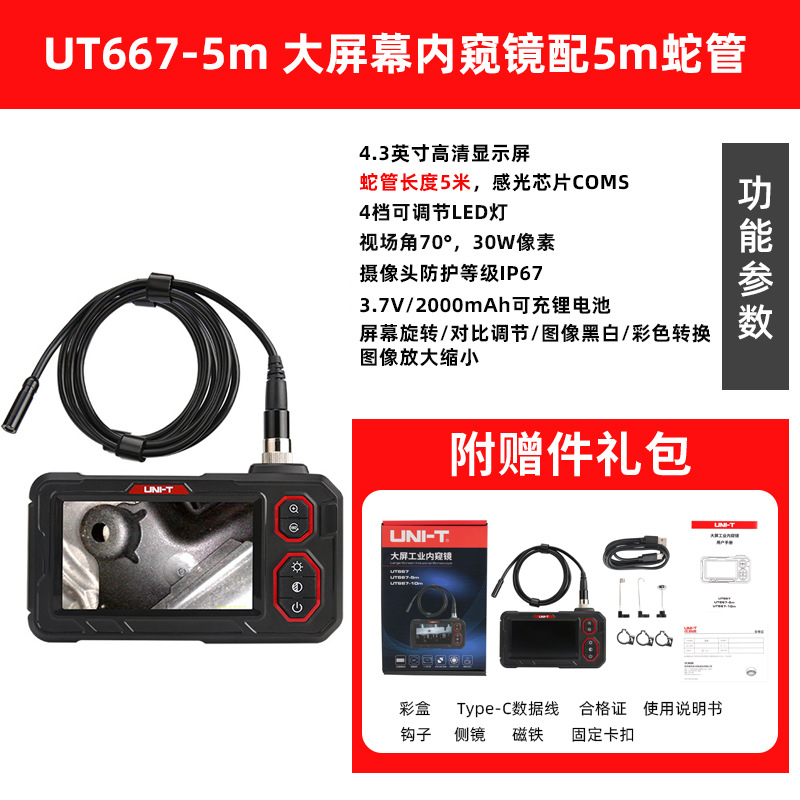 Unilide UT667 산업용 내시경 HD 카메라 자동차 유지 보수 파이프라인 검사 방수 프로브