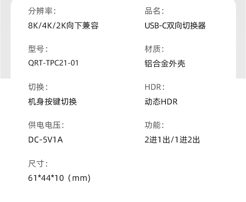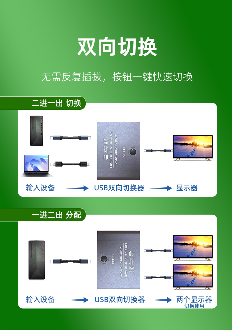 typec3.1 스위처 2 in 1 out TYPEC 양방향 스위처 kvm2 in 1 out USB-C Thunderbolt 3 인터페이스스토어 가기