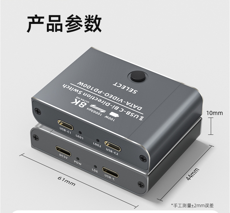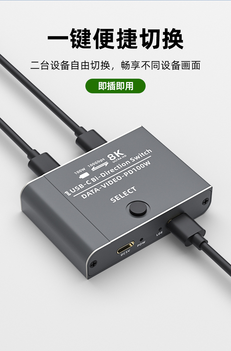 typec3.1 스위처 2 in 1 out TYPEC 양방향 스위처 kvm2 in 1 out USB-C Thunderbolt 3 인터페이스