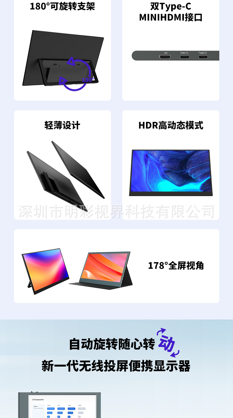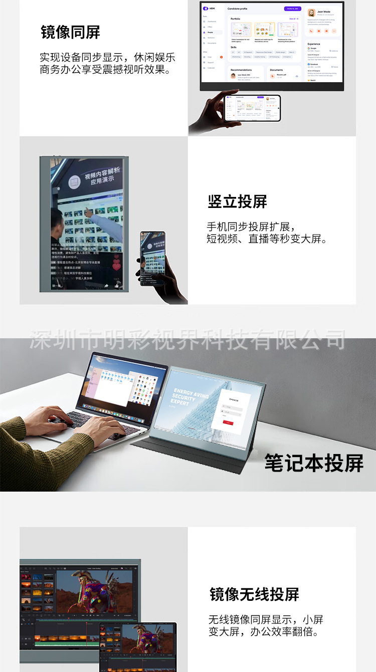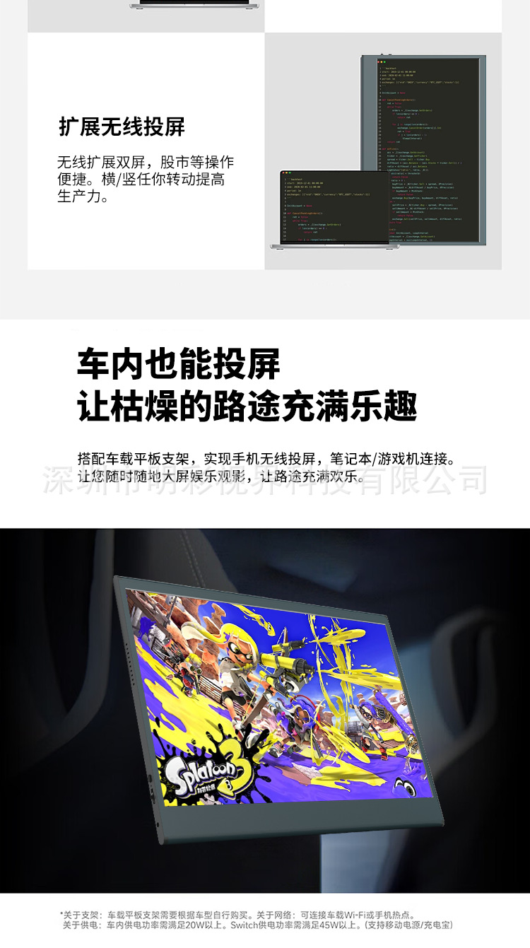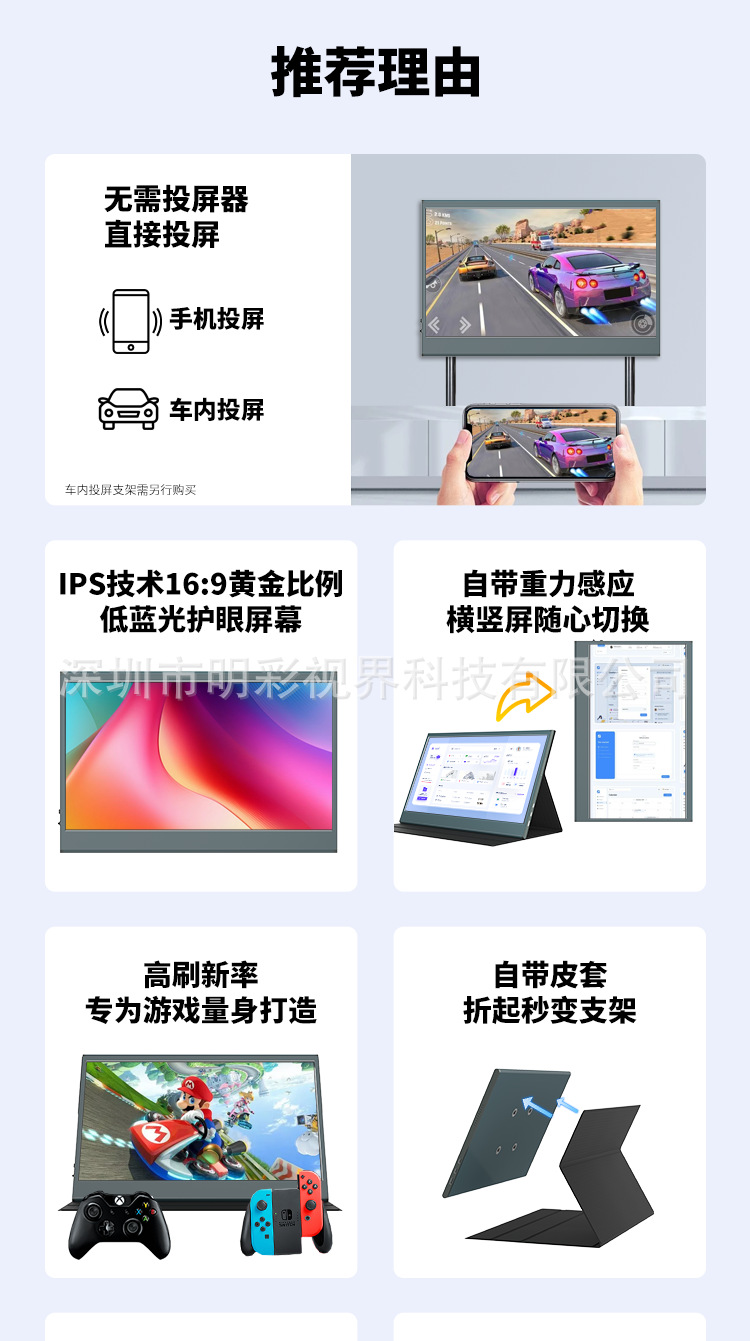 공장 직접 판매 15.6inch 휴대용 모니터 무선 스크린 프로젝션은 PS4/스위치 노트북 디스플레이를 벽에 걸 수 있습니다.스토어 가기