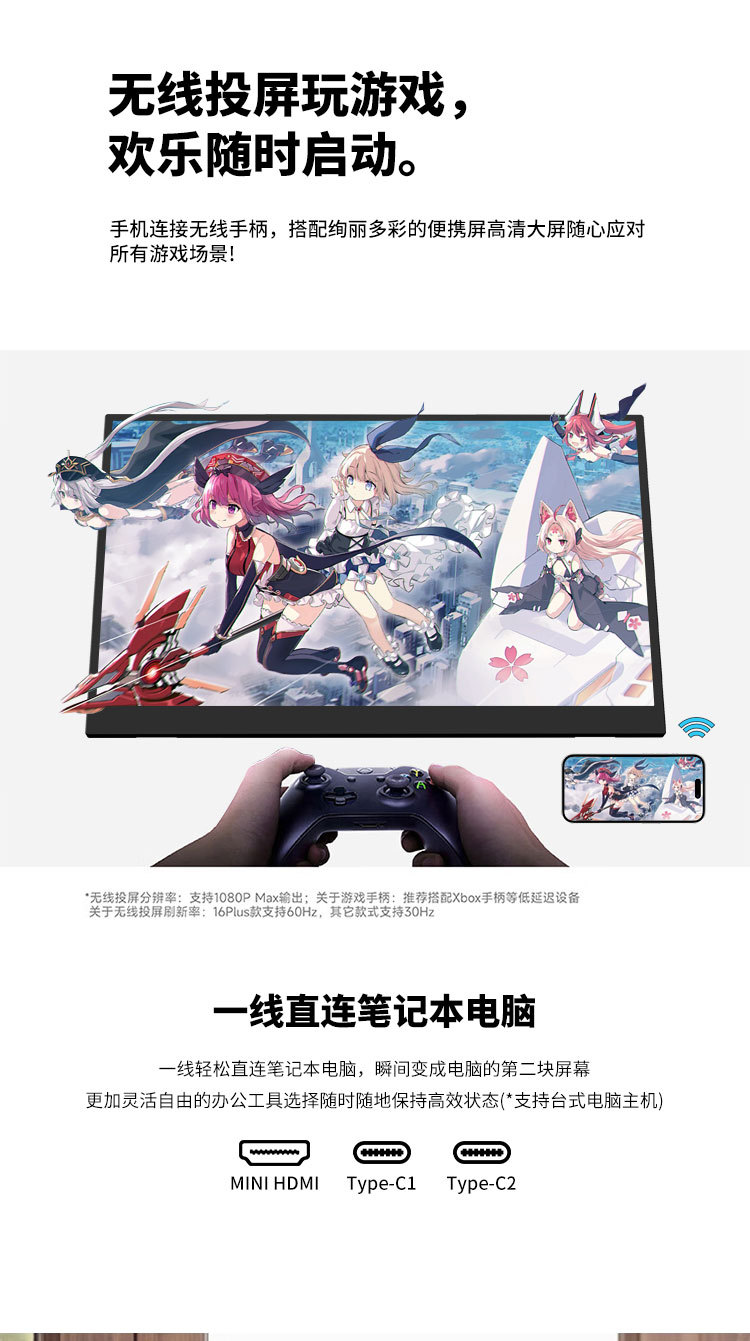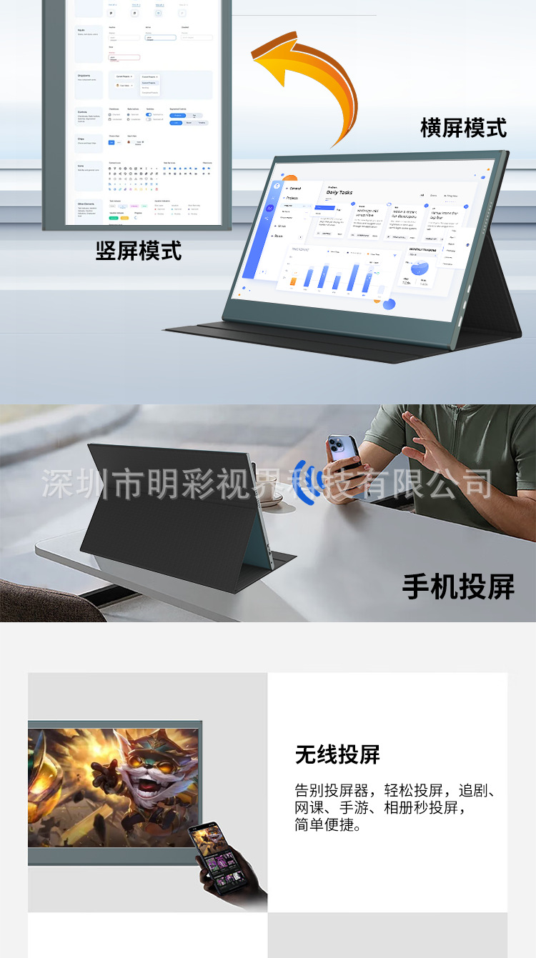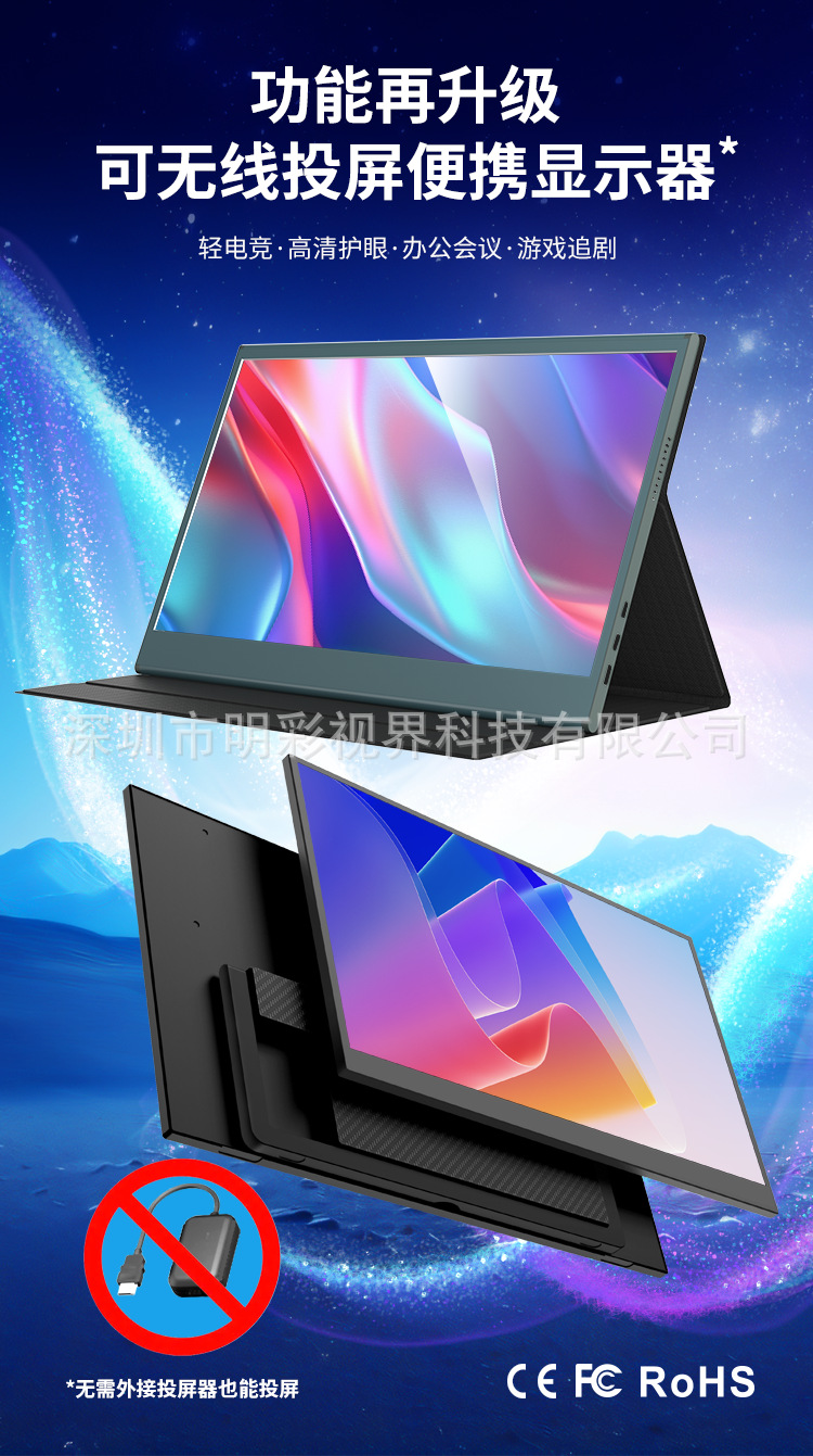 공장 직접 판매 15.6inch 휴대용 모니터 무선 스크린 프로젝션은 PS4/스위치 노트북 디스플레이를 벽에 걸 수 있습니다.
