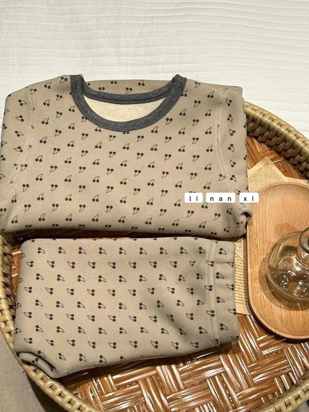 • 카키색 바탕에 작은 체리