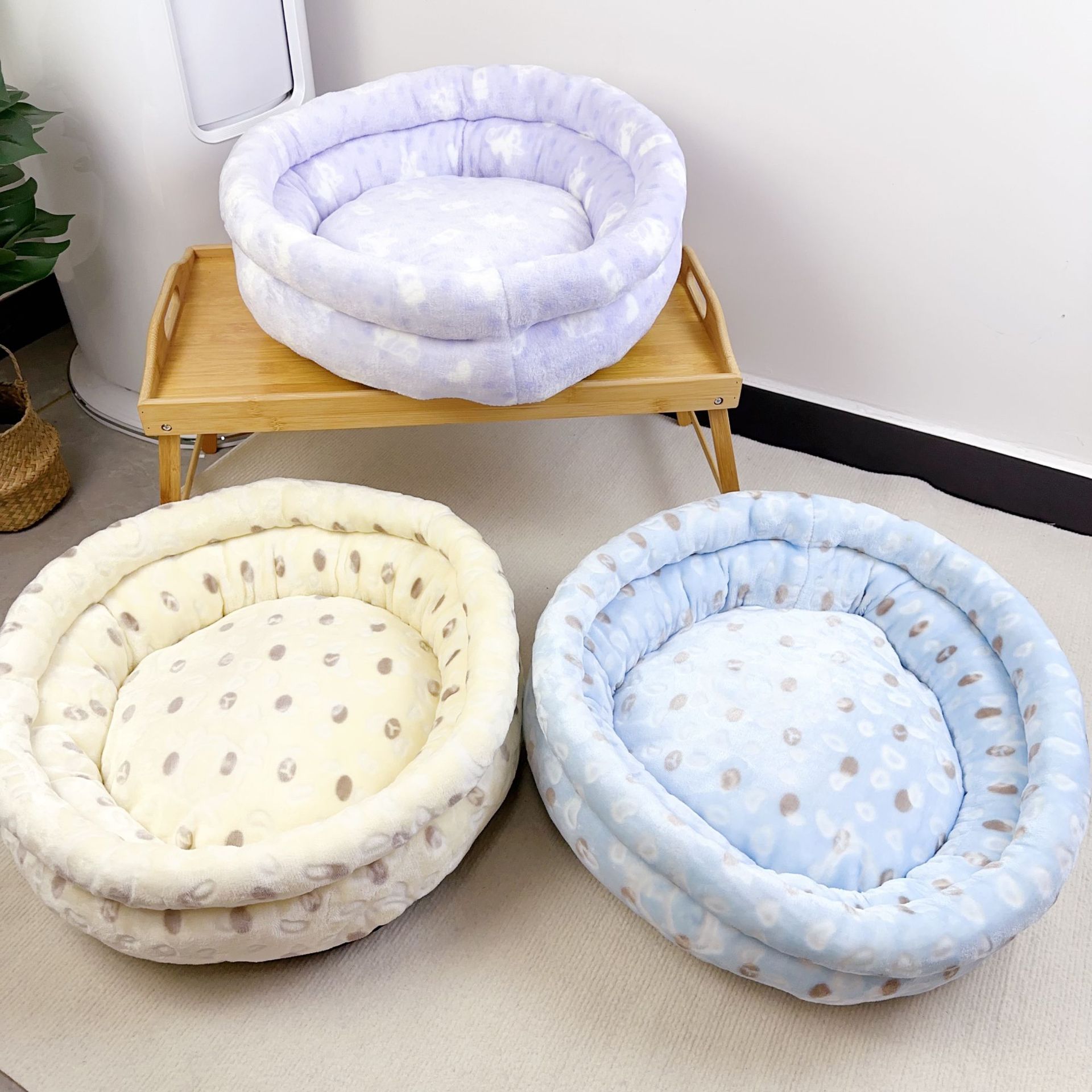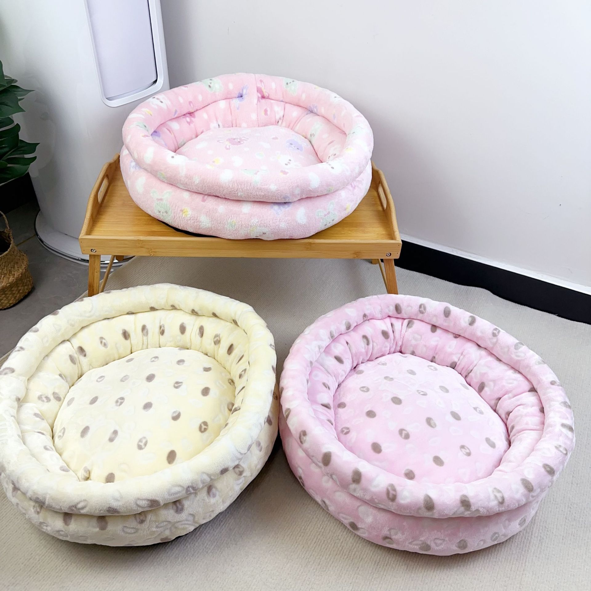 가을과 겨울 애완 동물 고양이 사육장 중소형 개 깊은 수면 따뜻한 면 사육장 우유 벨벳 면 매트 개 침대 용품