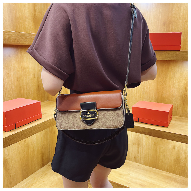 하이 엔드 프랑스 틈새 여성 가방 2024 새로운 유럽과 미국 패션 인쇄 작은 광장 가방 올 매치 어깨 크로스 바디 백스토어 가기