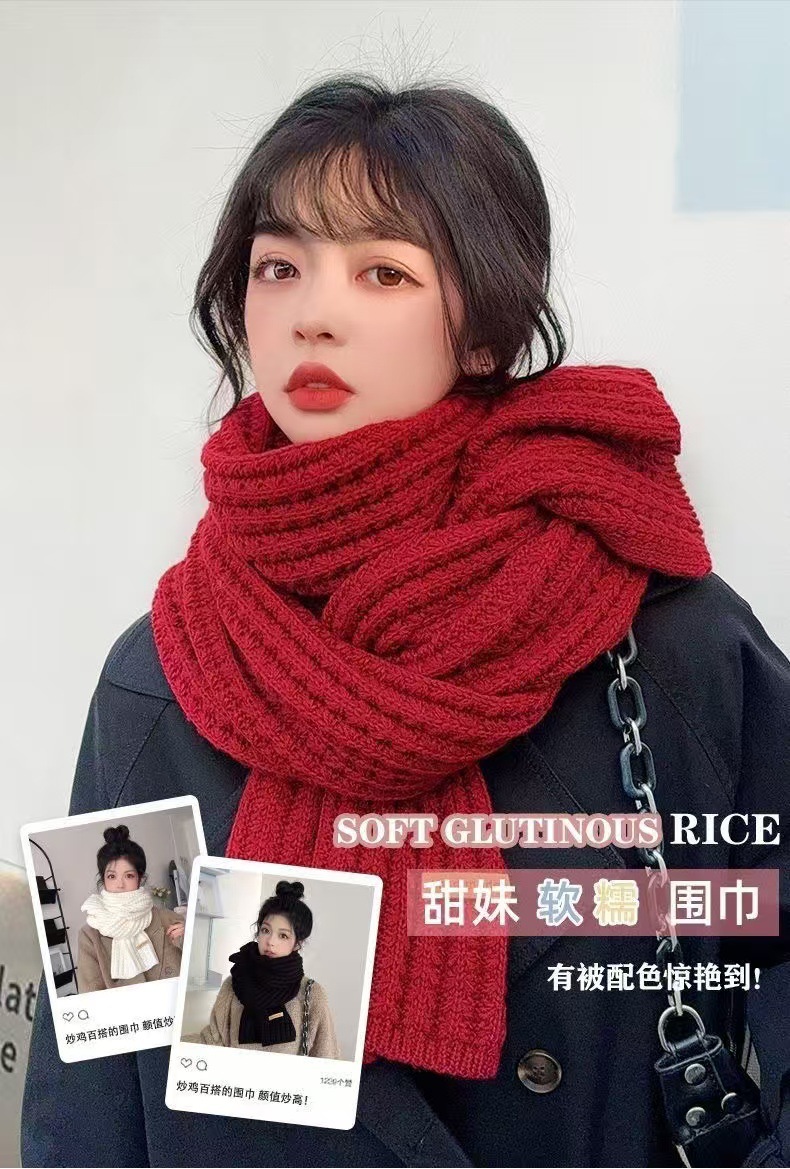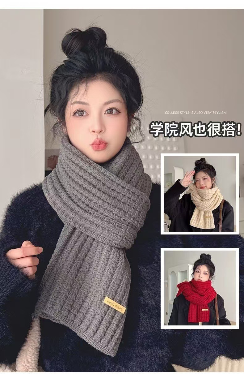 새로운 스카프 가을과 겨울 한국 단색 니트 봉제 따뜻한 학생 두꺼운 목 스카프 패션 조커스토어 가기