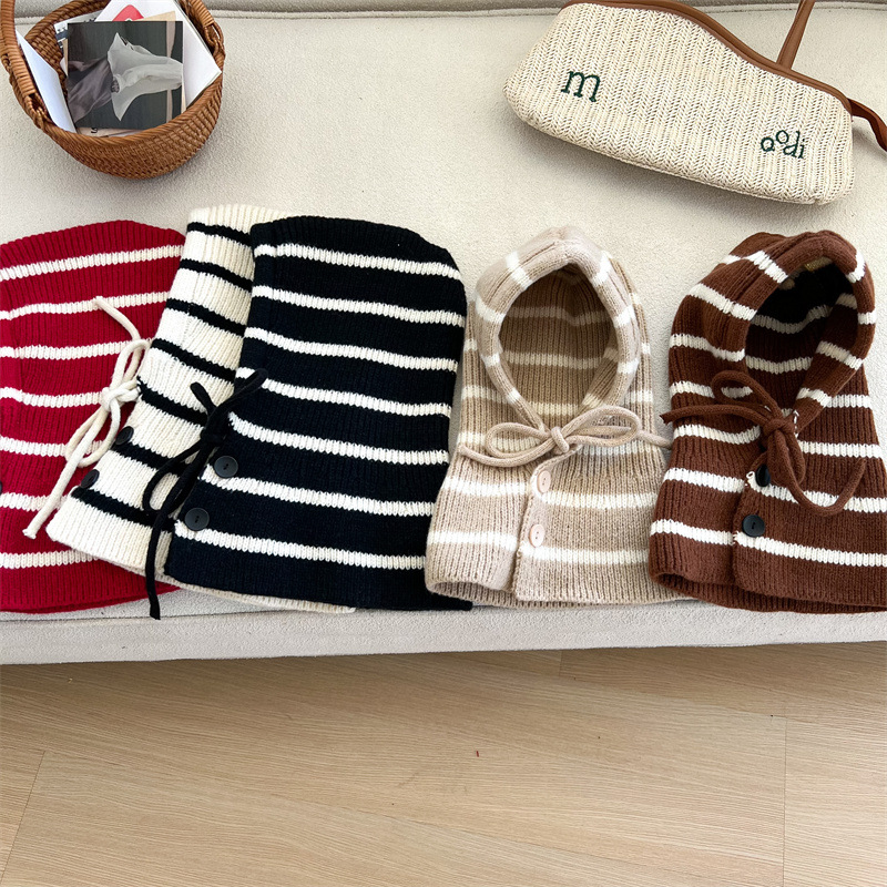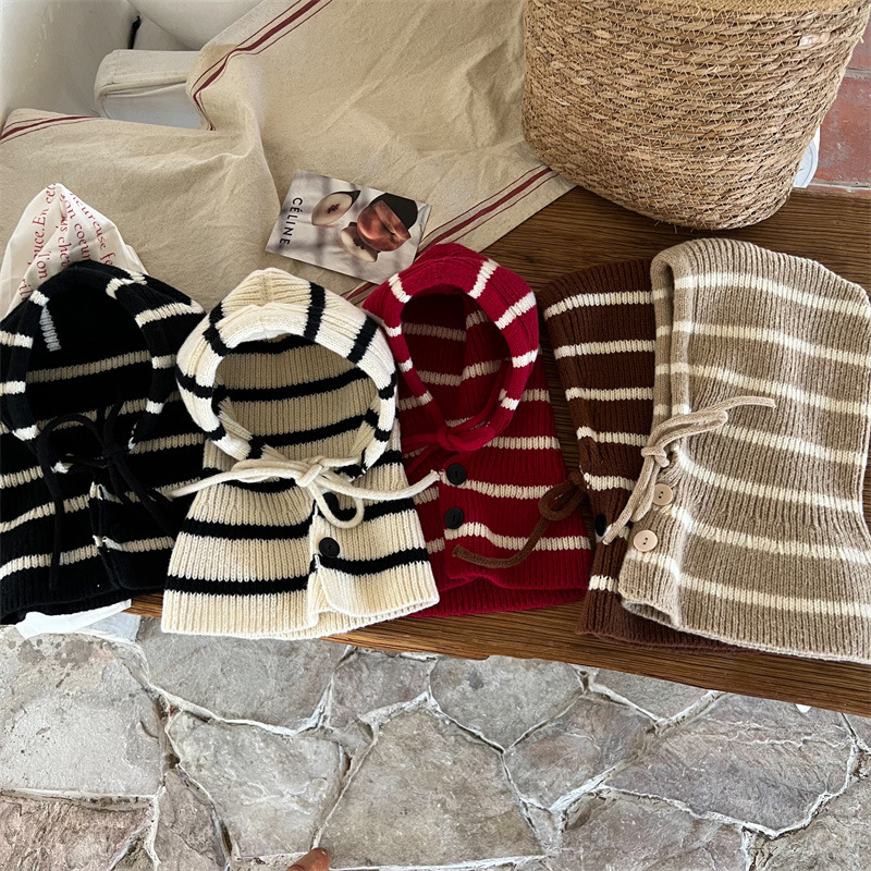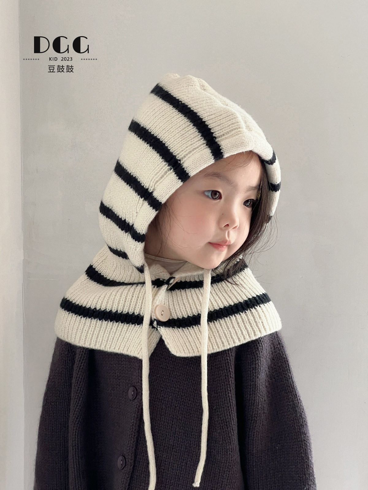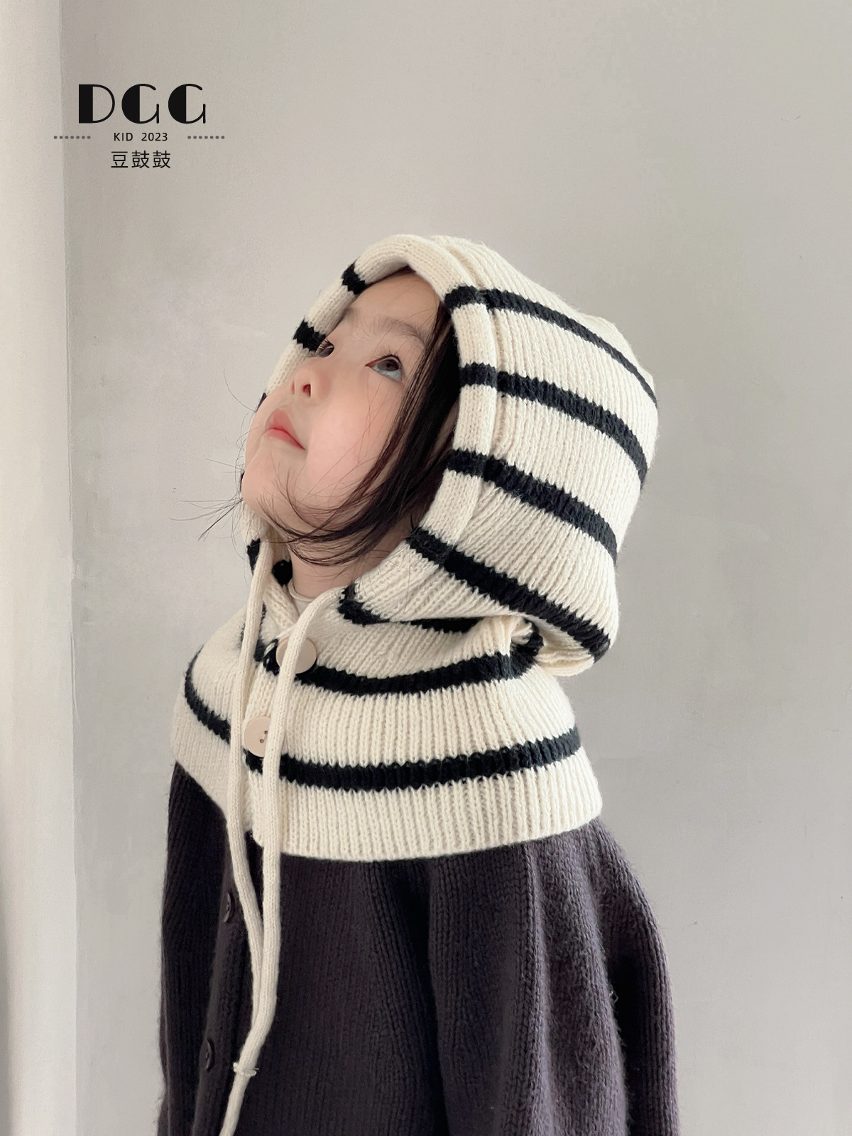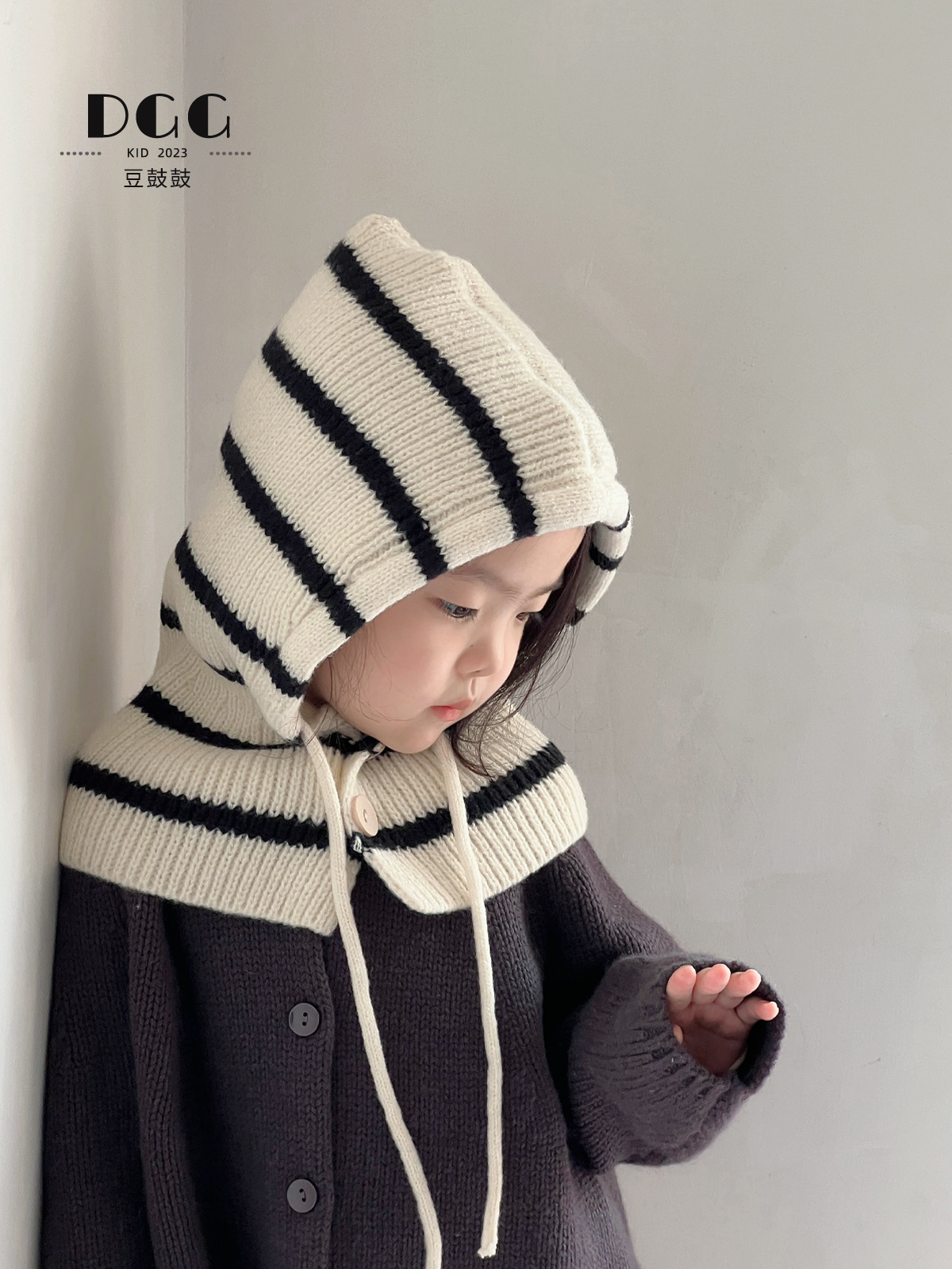 어린이 모자 발라 클라 바 모자 가을과 겨울 따뜻한 소년과 소녀 원피스 목 줄무늬 니트 원피스 모자 외국 스타일