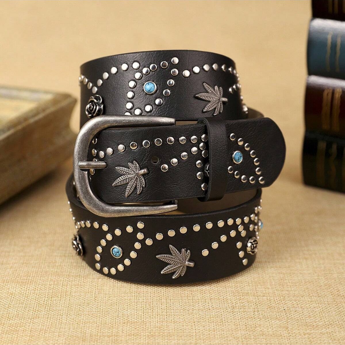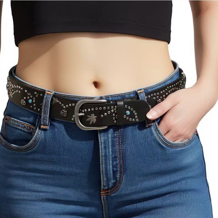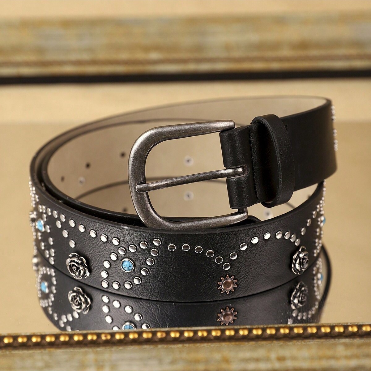 새로운 여성용 벨트, 패셔너블한 합금 리벳 장식, 레트로 캐주얼, 다용도 와이드 가죽 벨트, 심플한 청바지 벨트스토어 가기