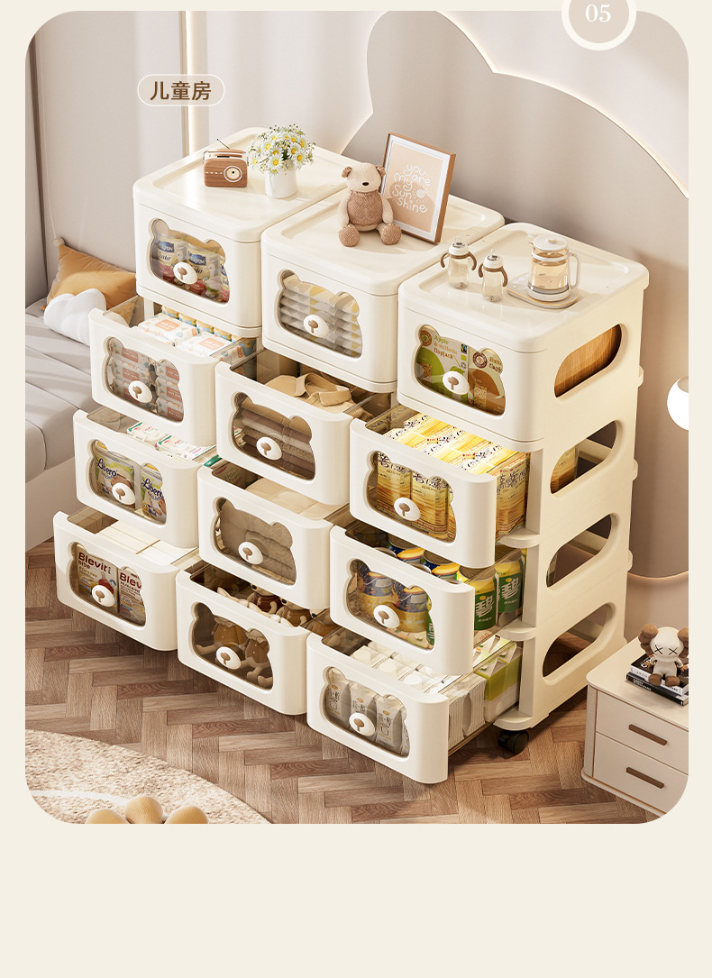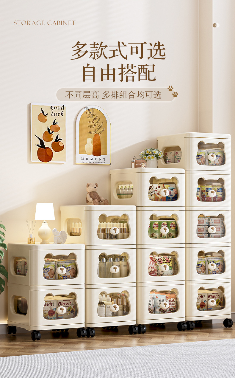 맞춤형 침대 옆 이동식 수납 캐비닛, 바닥에 설치된 다층 장난감 및 의류 수납 캐비닛, 설치가 필요 없는 수납 캐비닛