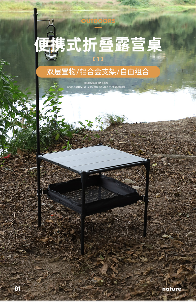 이중층 야외 캠핑 휴대용 접이식 식탁 및 의자 자가 운전 여행용 차 테이블 바베큐 테이블 해외 판매스토어 가기