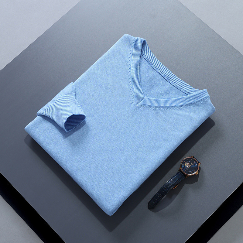 남자 V-넥 가을과 겨울 새로운 느슨한 플러스 사이즈 사업 풀오버 긴팔 스웨터 중년 니트 치킨 하트 칼라베이스 셔츠