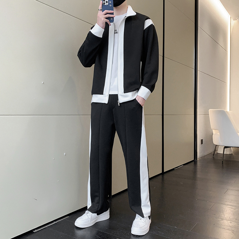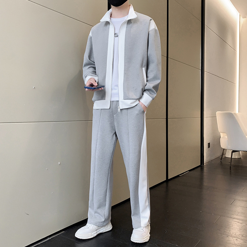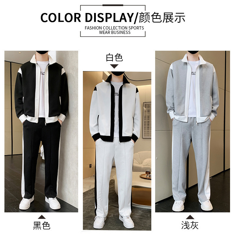 캐주얼 스포츠 세트 남성 봄과 가을 칼라 재킷 패션 스티칭 스웨터 십대 스포츠웨어스토어 가기