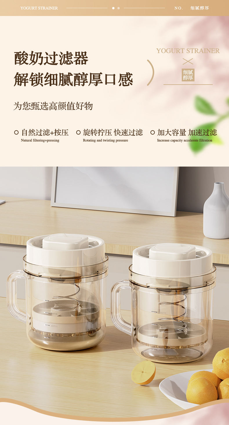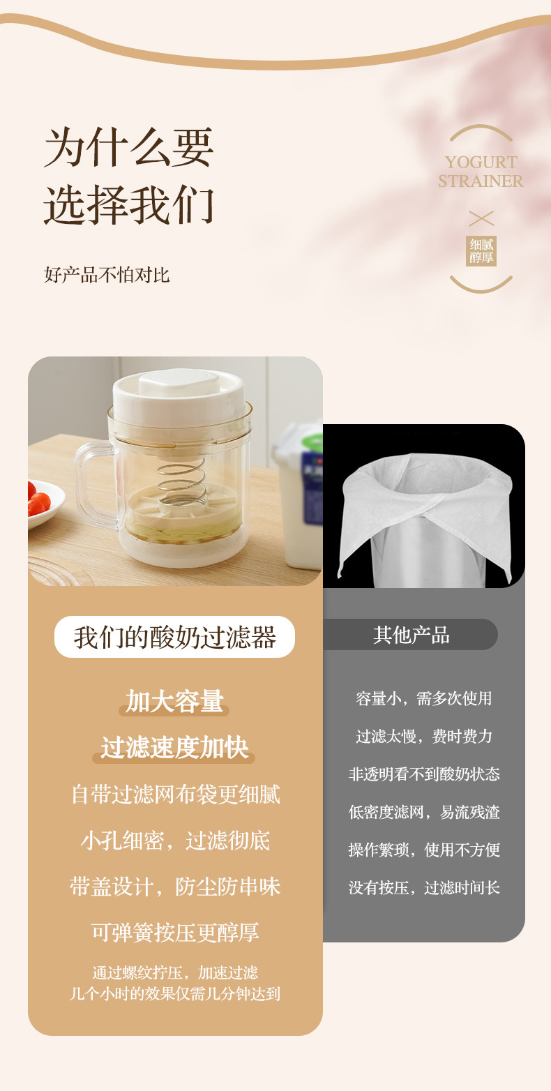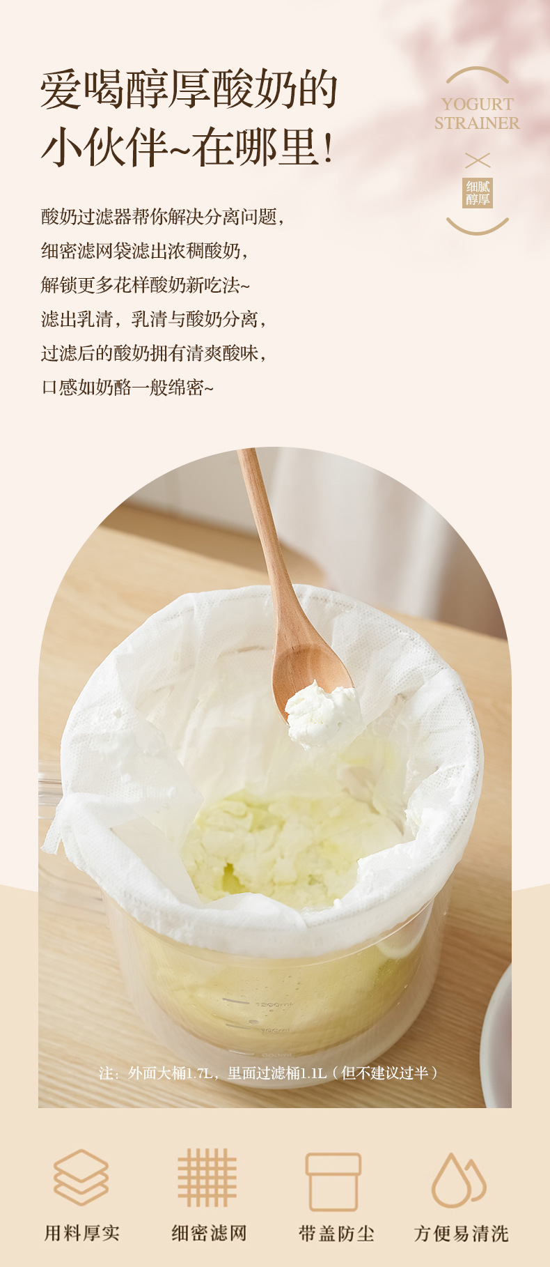 • 요구르트 여과기 [10분 여과] ⭐ 1.7L 대용량 - 필터 천 3개 포함
