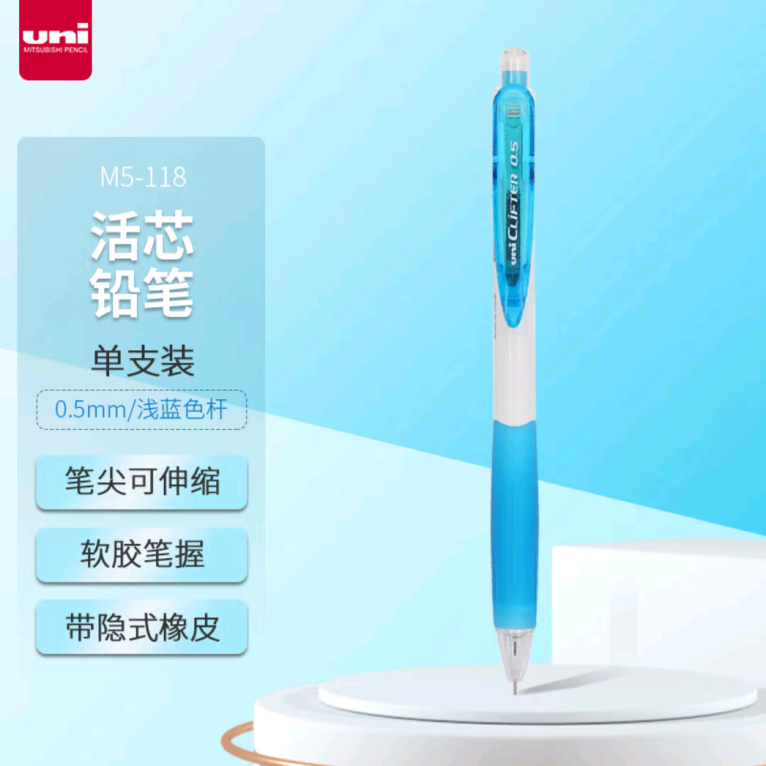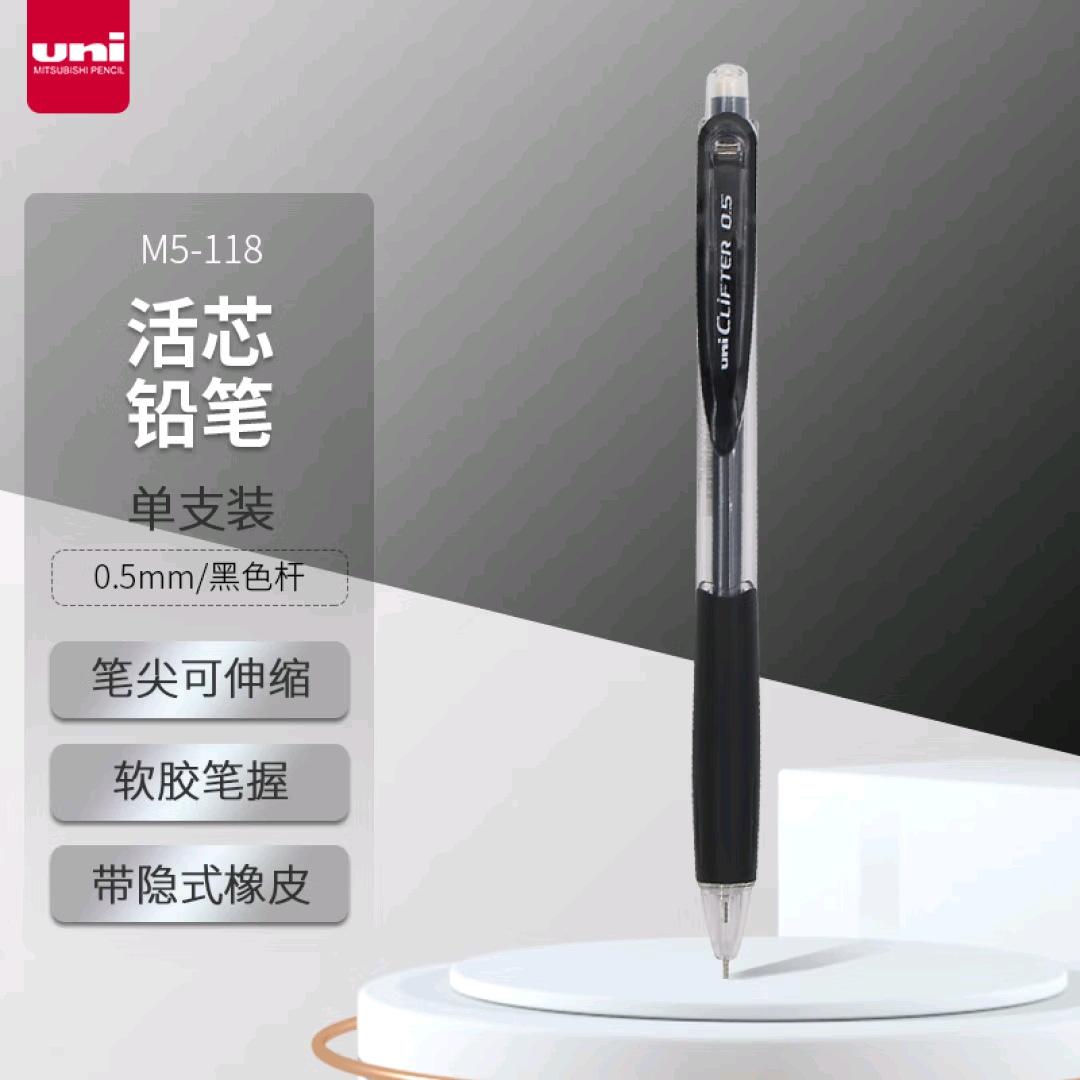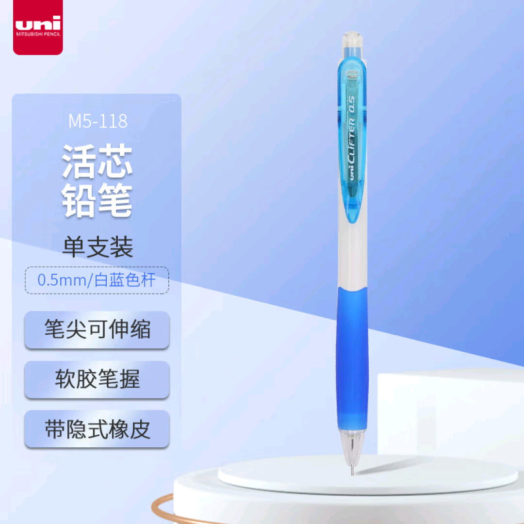 일본 UNI 미쓰비시 M5-118 학생용 자동 연필 번짐 방지 오염 방지 연필심 0.5 지우개 포함 시험용스토어 가기