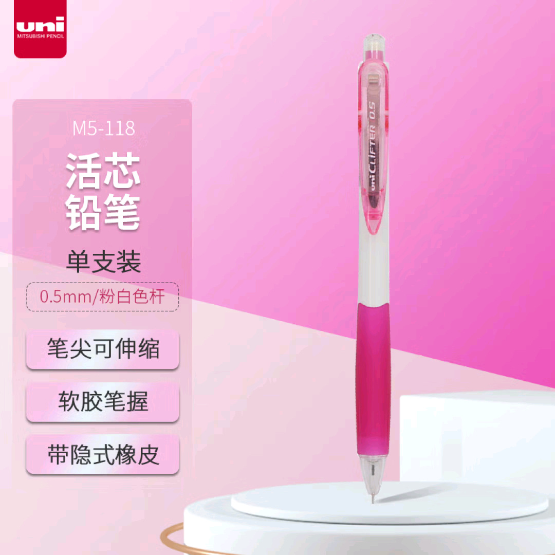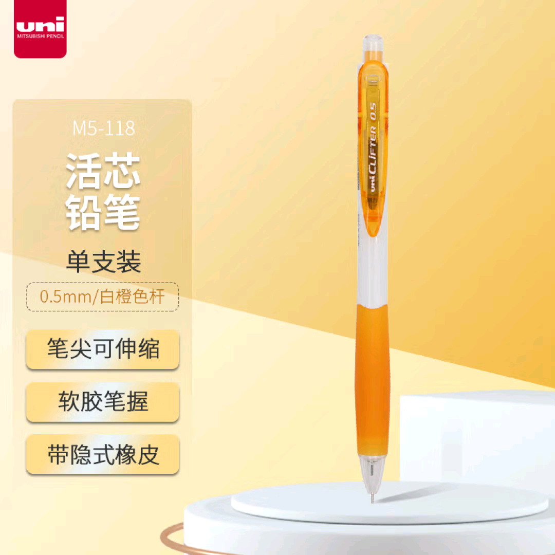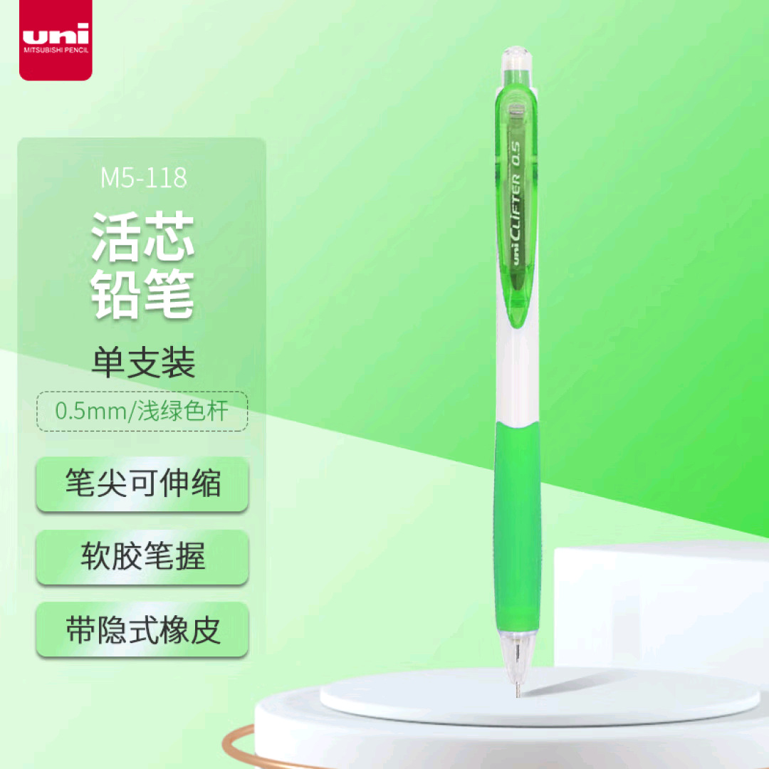 일본 UNI 미쓰비시 M5-118 학생용 자동 연필 번짐 방지 오염 방지 연필심 0.5 지우개 포함 시험용스토어 가기