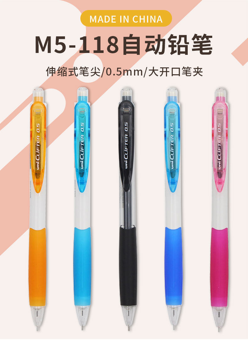 일본 UNI 미쓰비시 M5-118 학생용 자동 연필 번짐 방지 오염 방지 연필심 0.5 지우개 포함 시험용