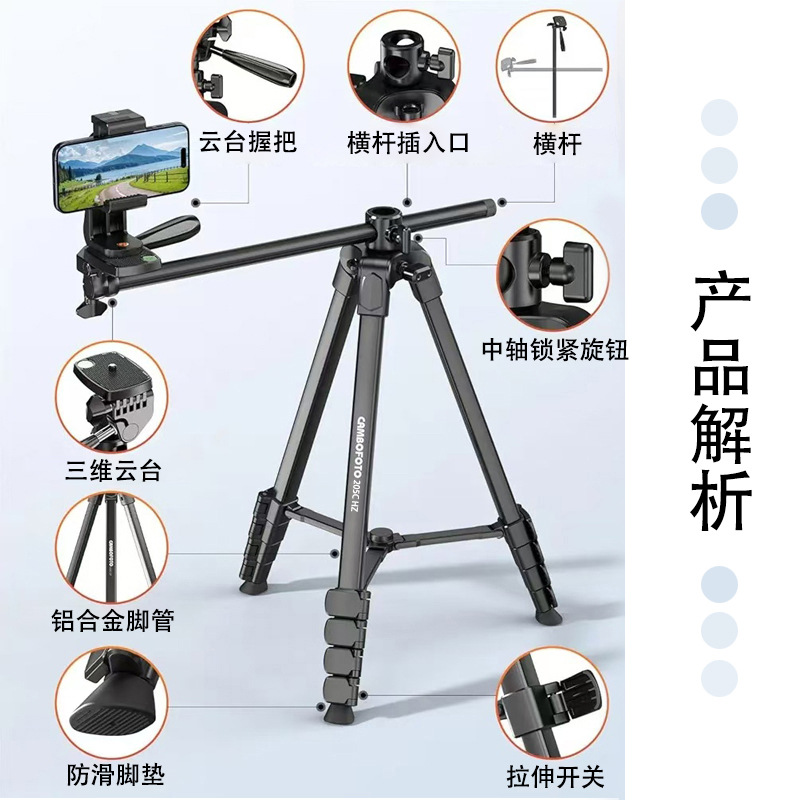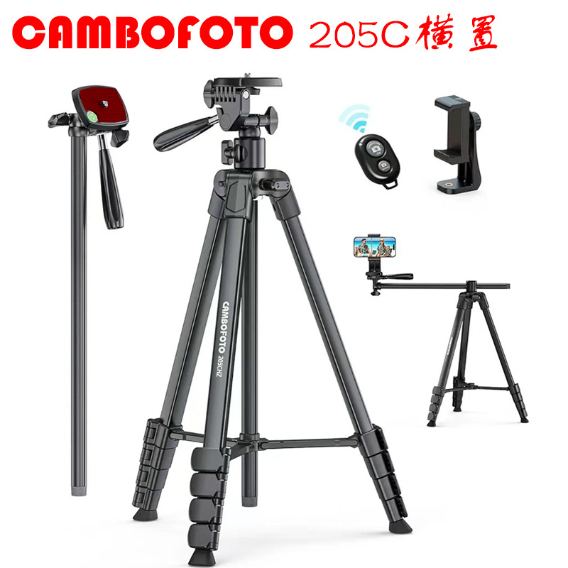 CAMBOFOTO 205C 수평 삼각대 필 라이트 스탠드 휴대 전화 라이브 방송 플로어 삼각대 낚시 라이트 스탠드스토어 가기