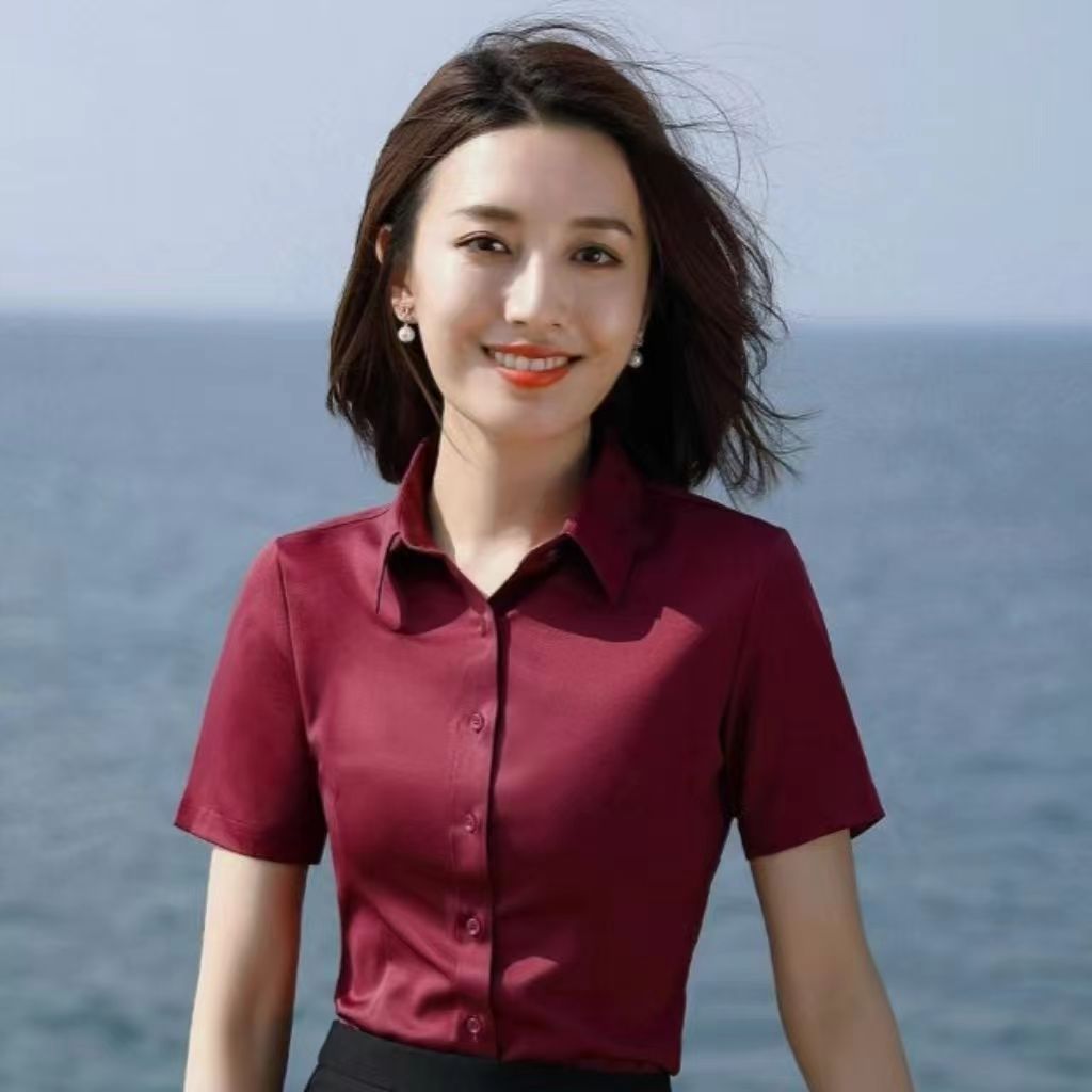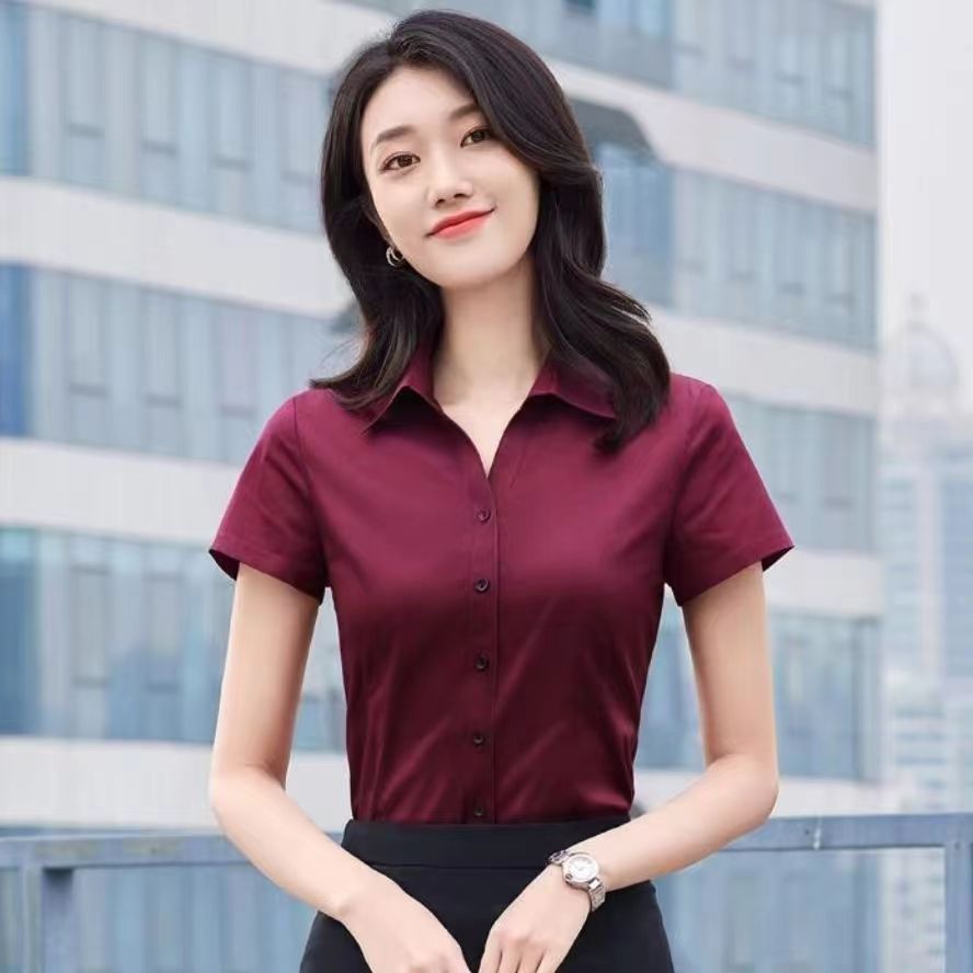 화이트 셔츠 여성용 슬림 핏 반팔 비즈니스 착용 작업복 요새 봄과 여름 화이트 블랙 셔츠 여성 한국 스타일 탑스토어 가기