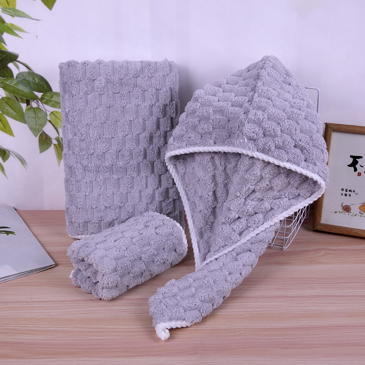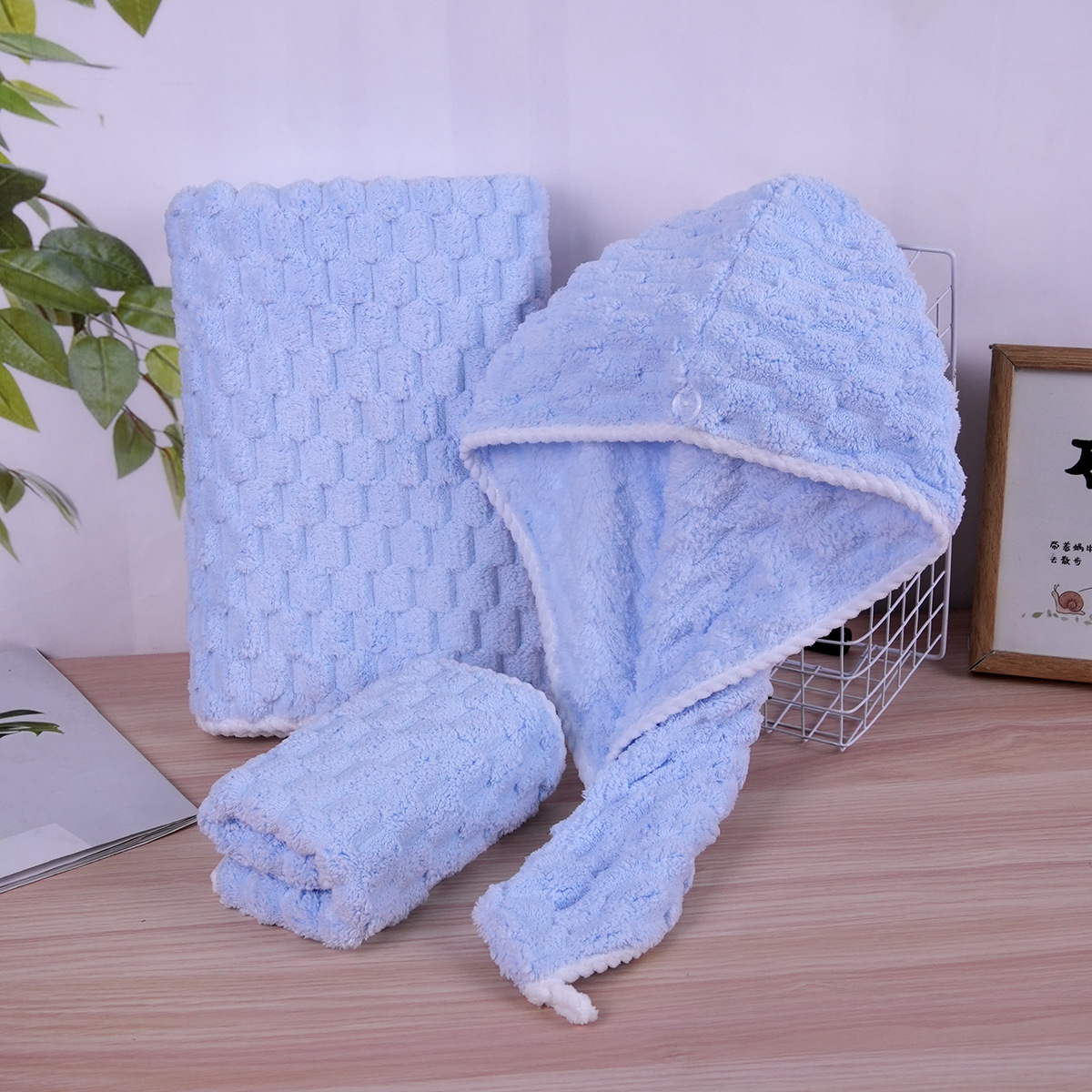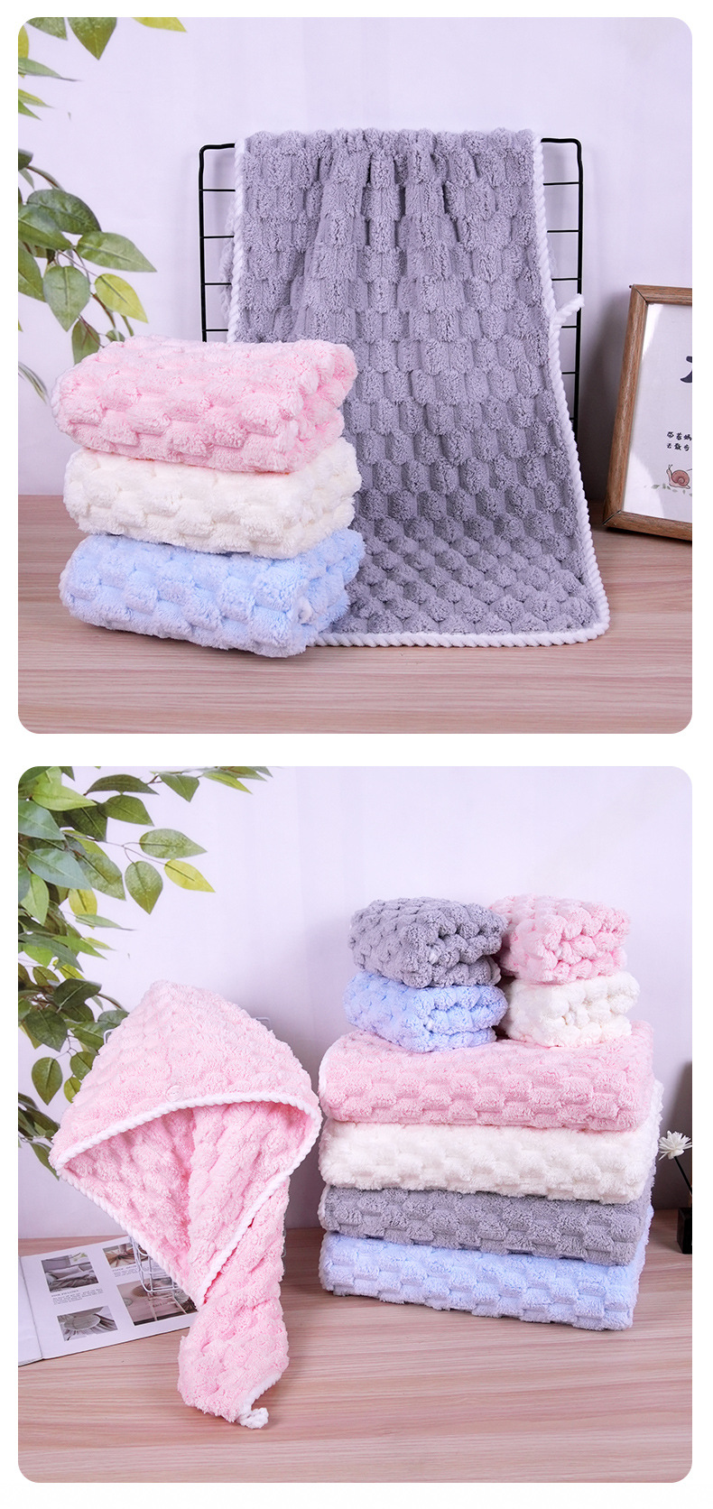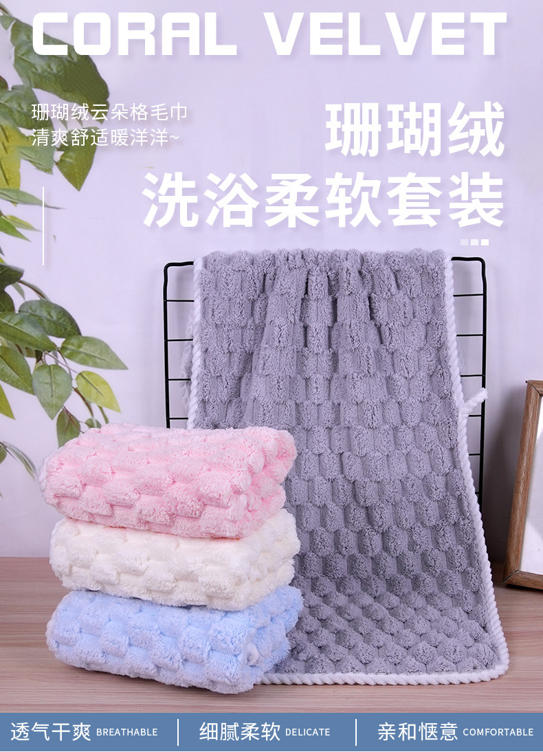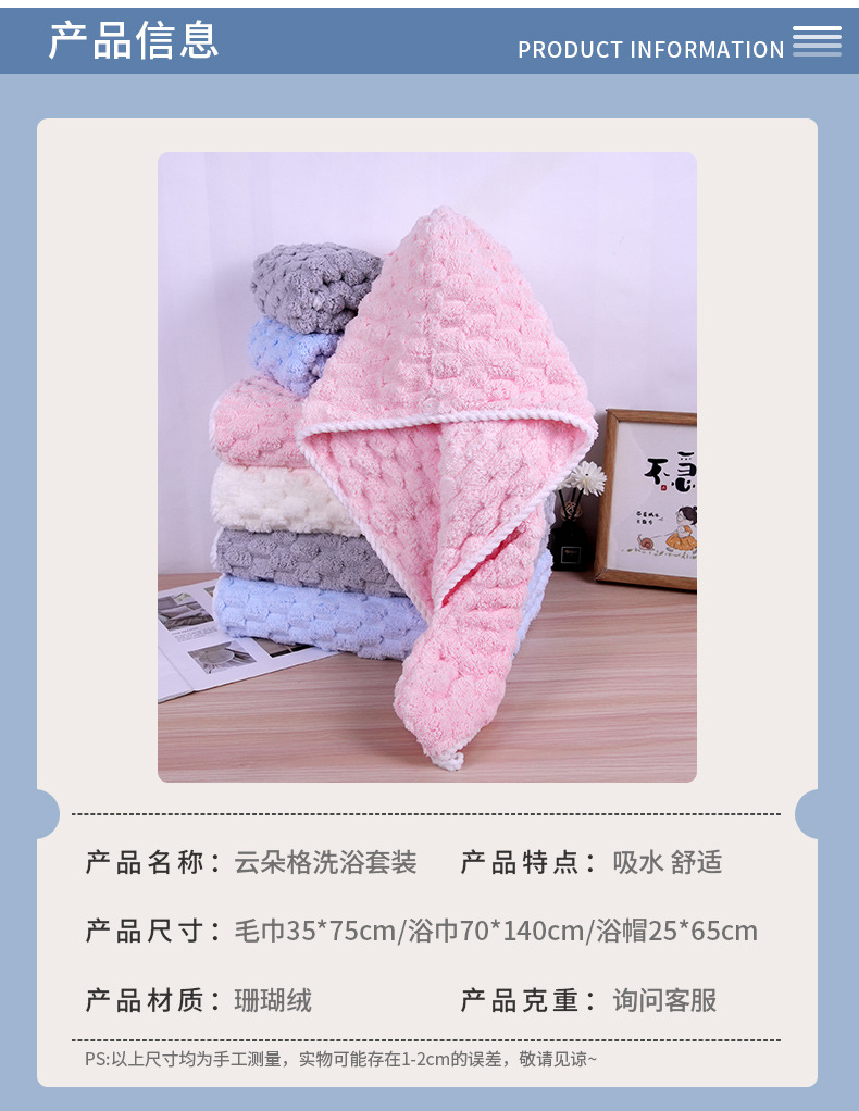 가정용 구름무늬 벨벳 타월 세트 흡수성 코랄벨벳 목욕 타월 부드러운 흡수성 헤어 드라이 캡 해외 직구스토어 가기