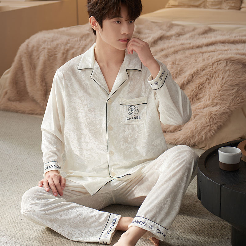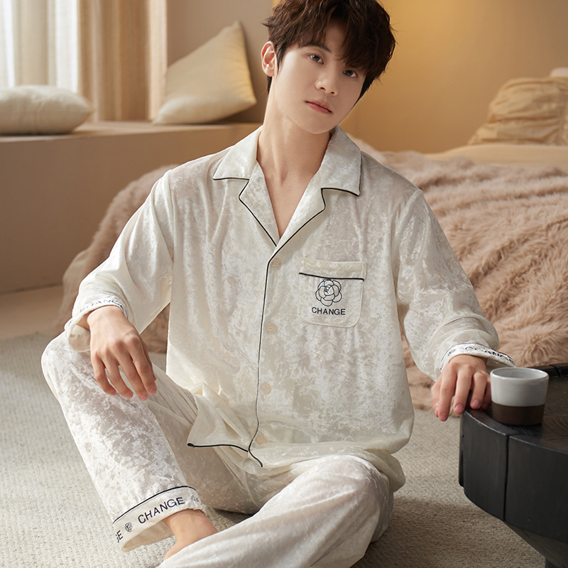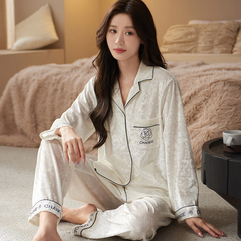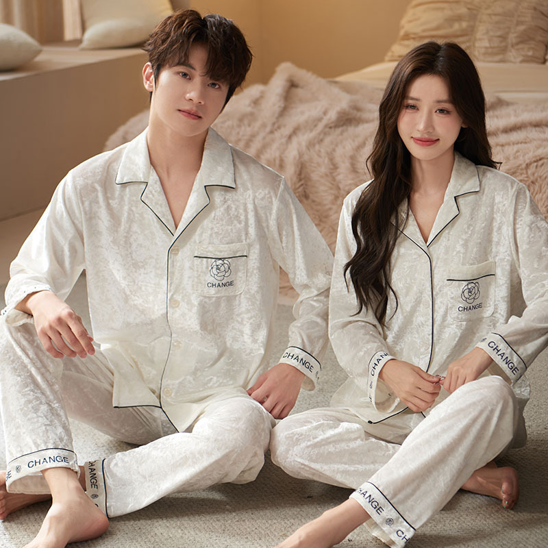 2025년 가을 신상 패션 캐주얼 골드 벨벳 커플 잠옷 인기 폭발 심플 가디건 홈웨어 외출복으로도 가능