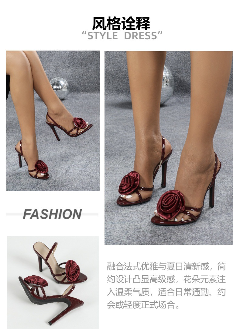 국경을 넘는 유럽과 미국 여성의 3 차원 꽃 크로스 벨트 백 발목 스트랩 둥근 발가락 스틸레토 힐 샌들이 빨간 하이힐을 올렸습니다.스토어 가기
