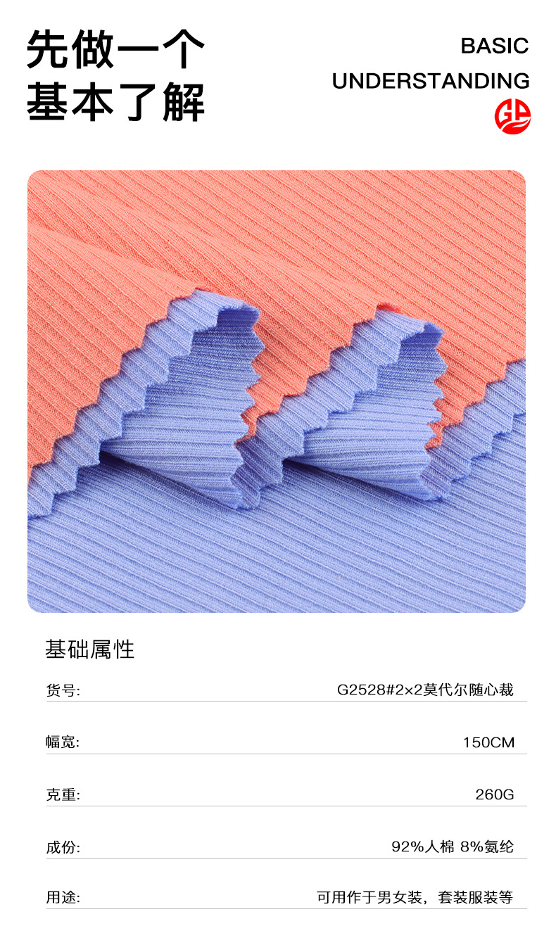 40S 레이온 2X2 맞춤형 핏 스트라이프 스레드 2*2 모달 니트 원단 골지 여성용 베이스 레이어 원단스토어 가기