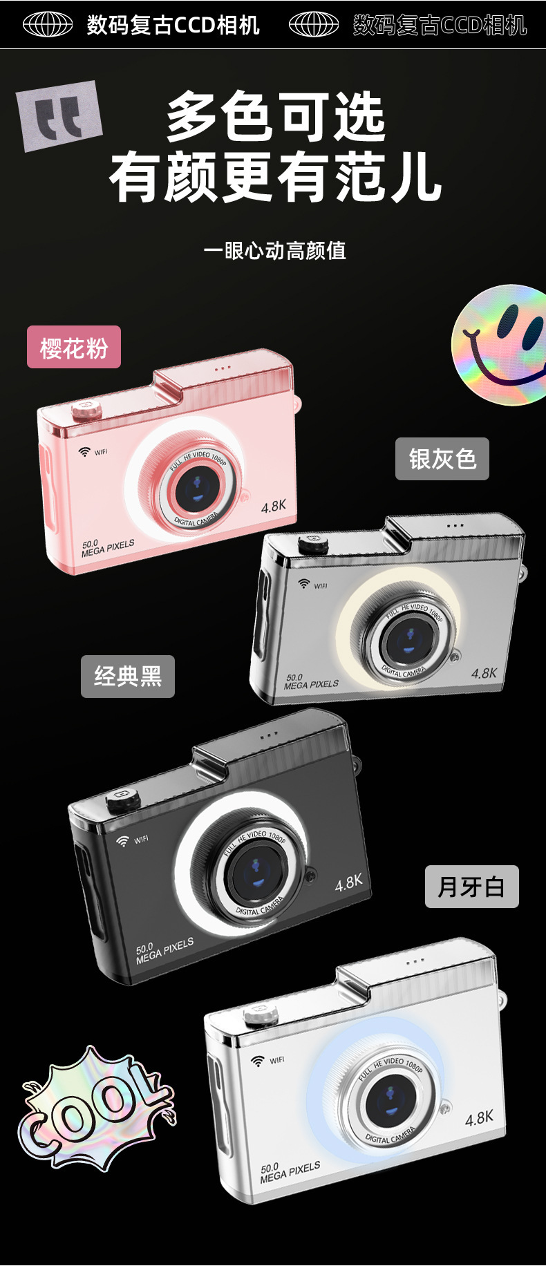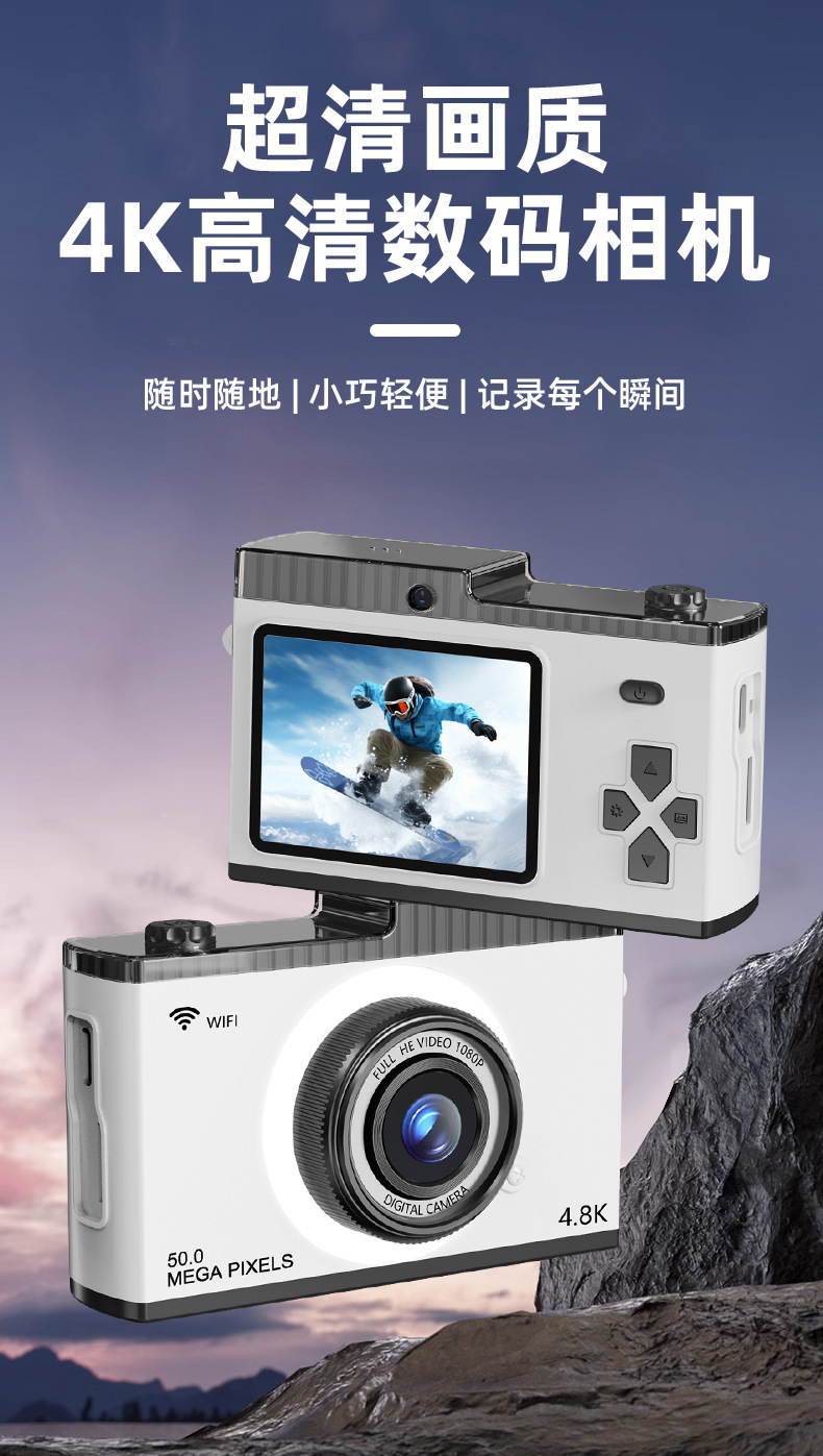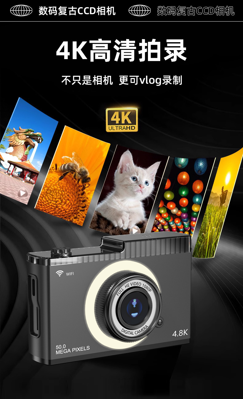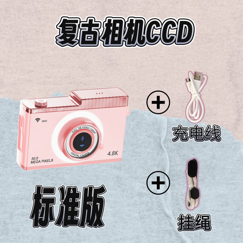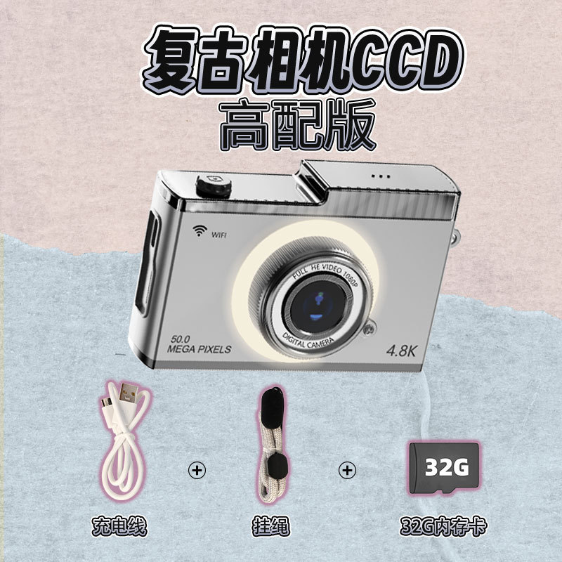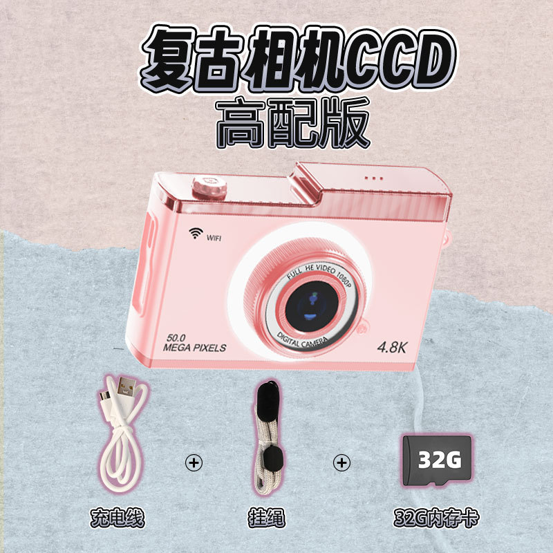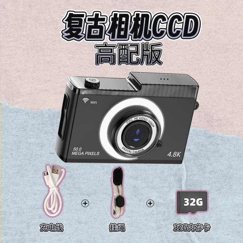 支持WIFI传输CCD校园学生相机5000W高清双摄迷你复古数码相机玩具