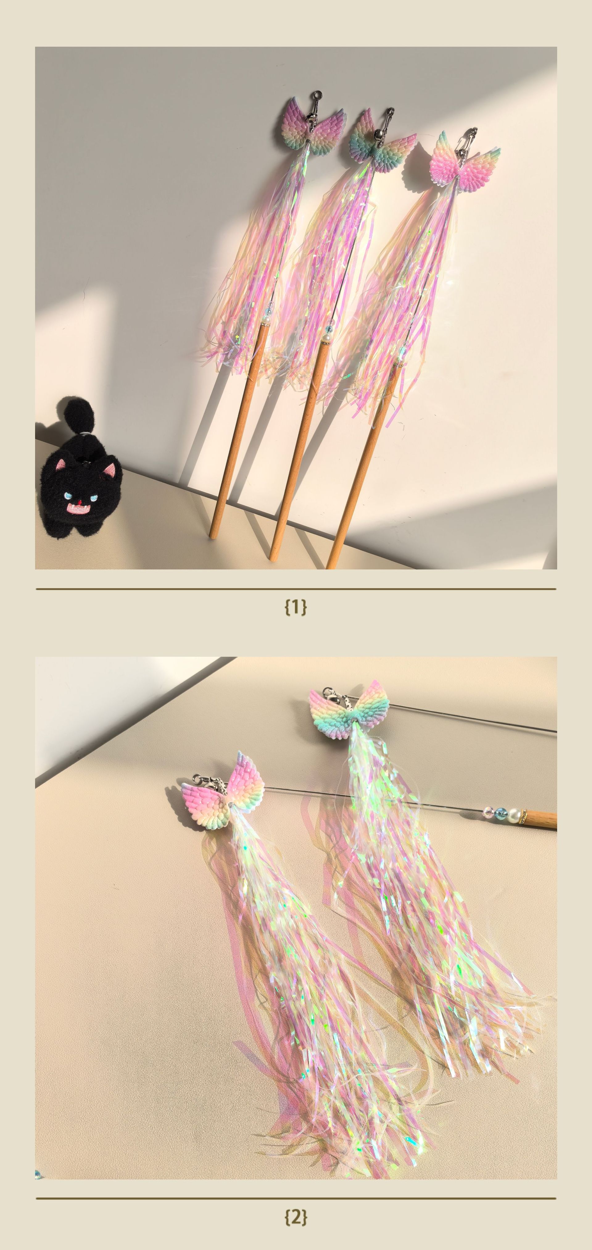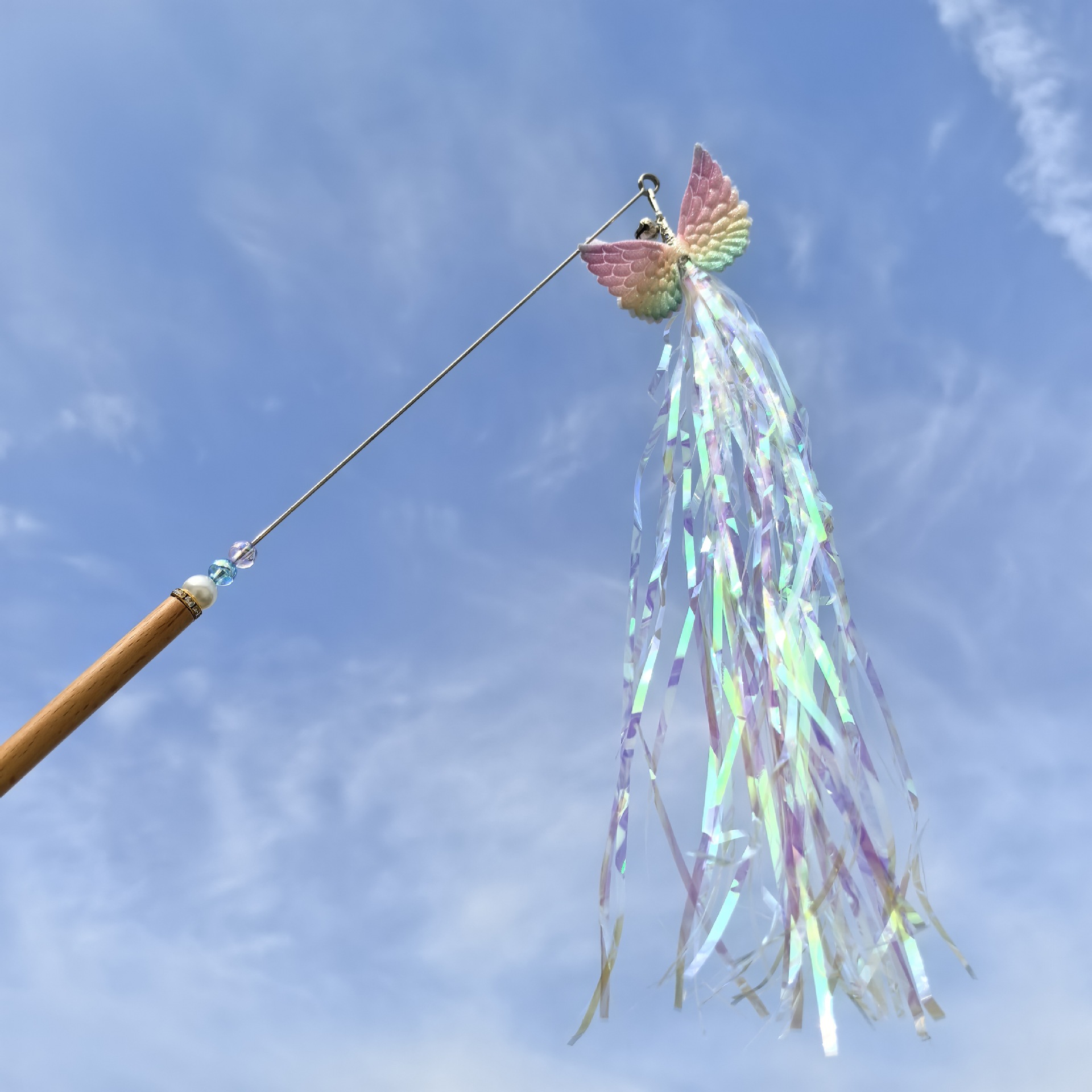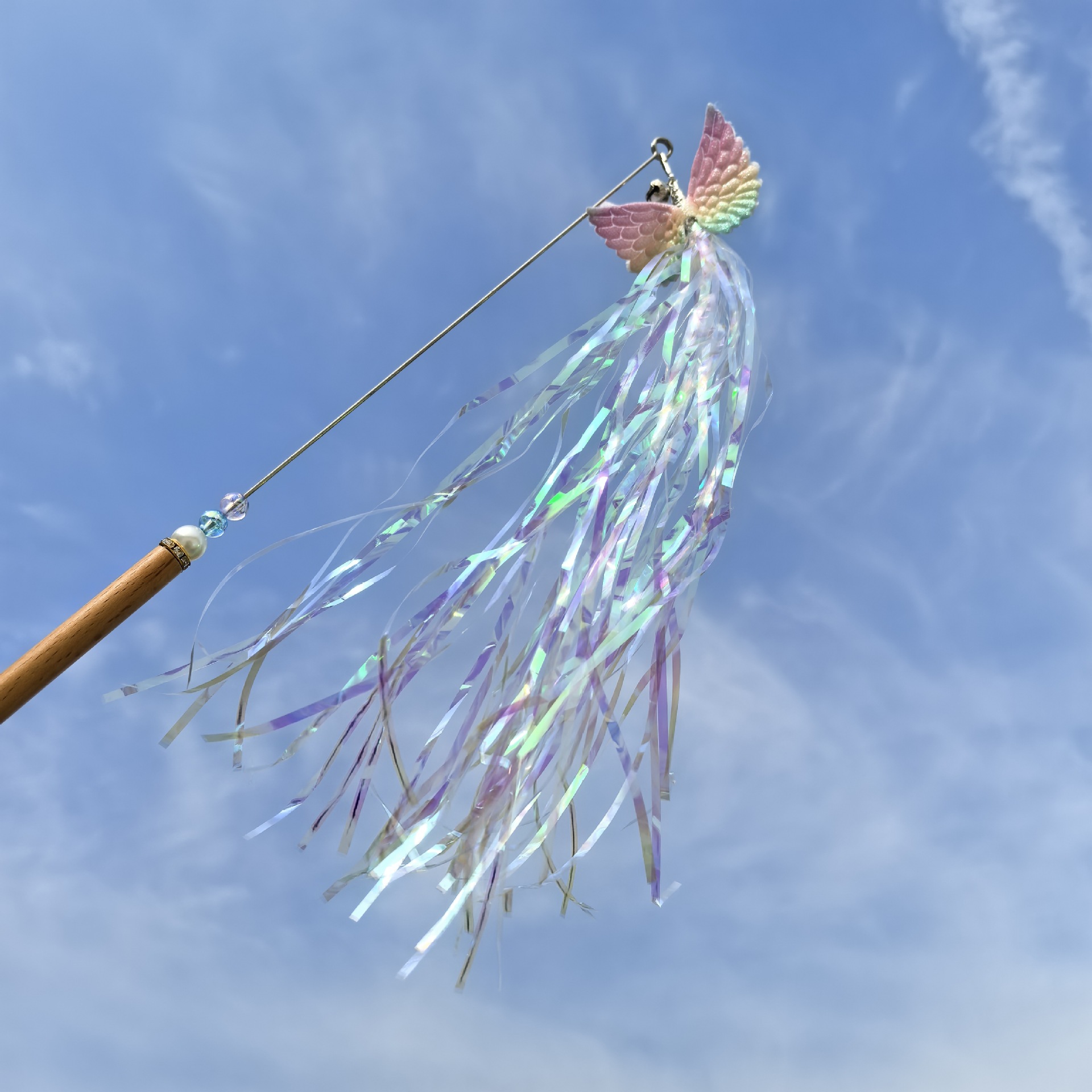 술 날개 고양이 똑딱 거리는 스틱 인터랙티브 벨 셀프 하이 고양이 똑딱 거리는 장난감 긁힘 방지 고양이 똑딱 거리는 스틱 스틸 와이어