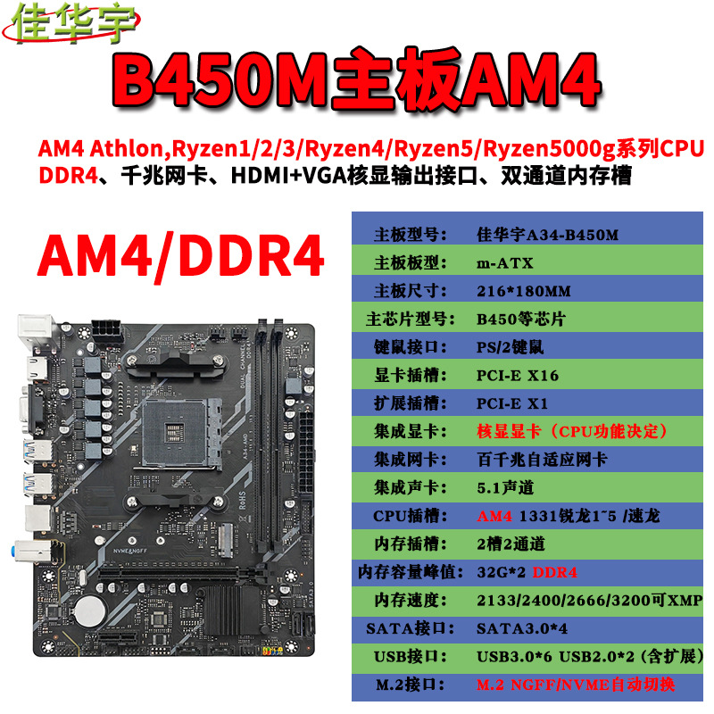 새로운 B450m 데스크탑 컴퓨터 마더 보드 AM4 듀얼 프로토콜 M.2 하드 드라이브 지원 Rex Gen 1-5 CPU 지원스토어 가기