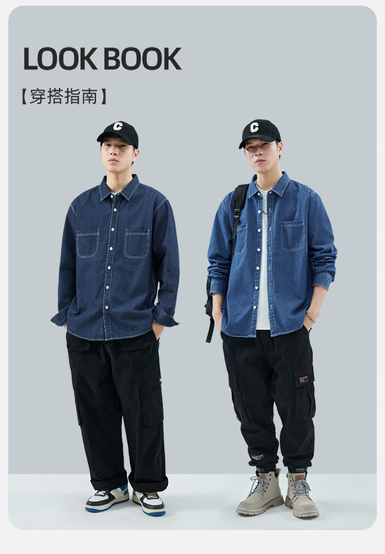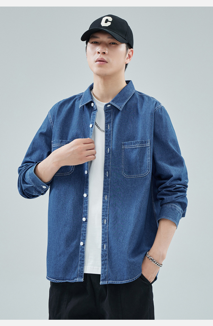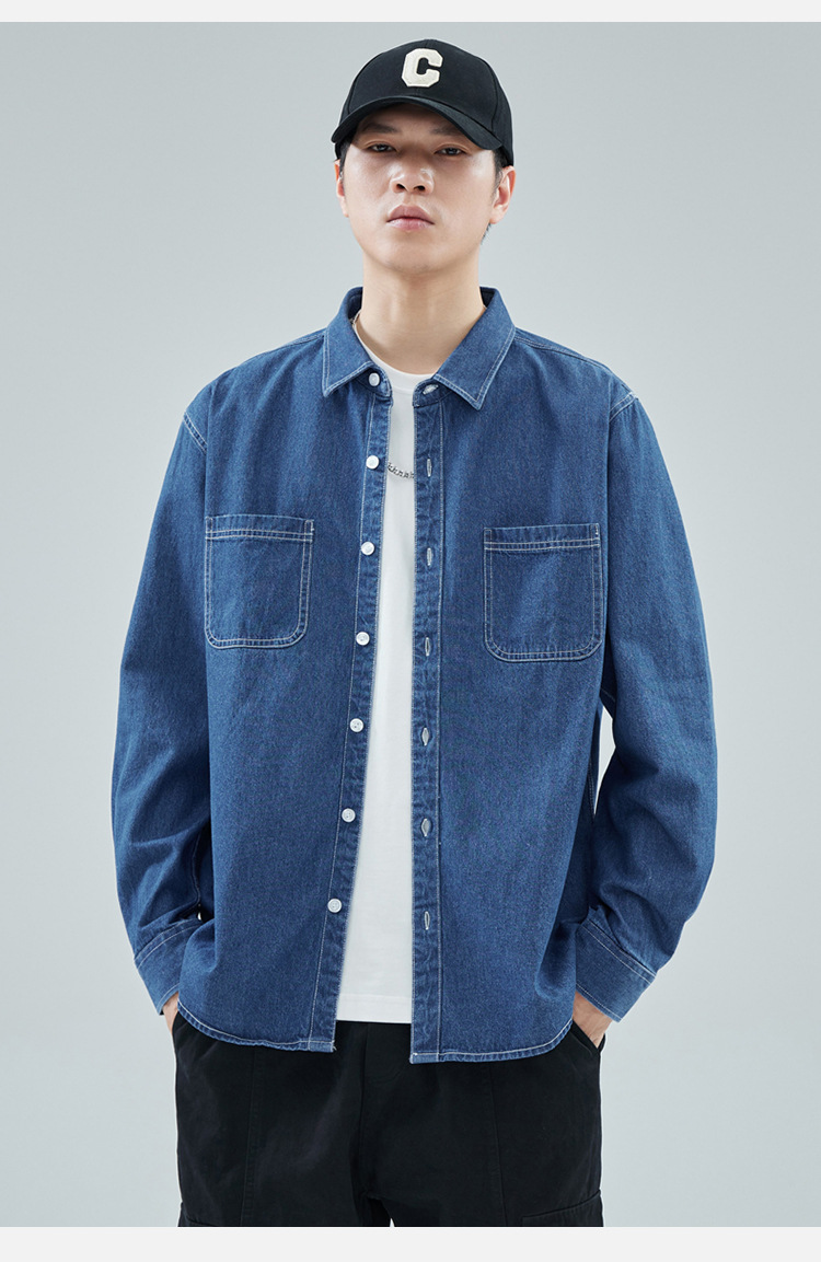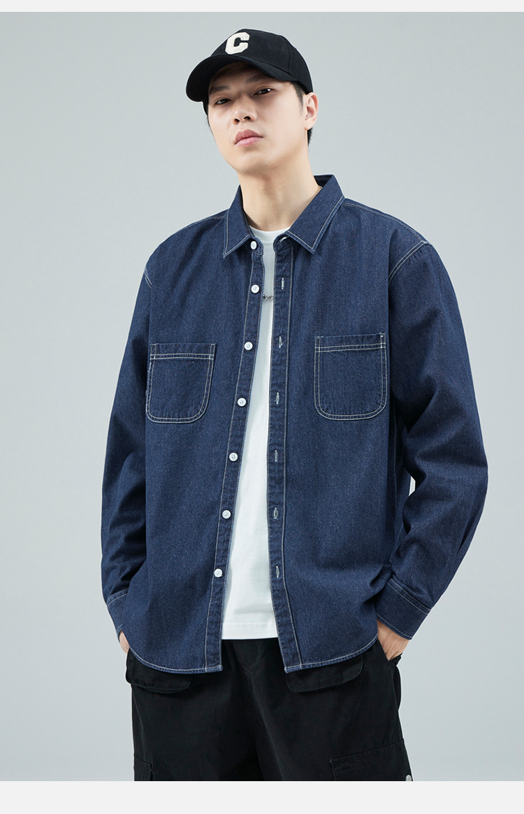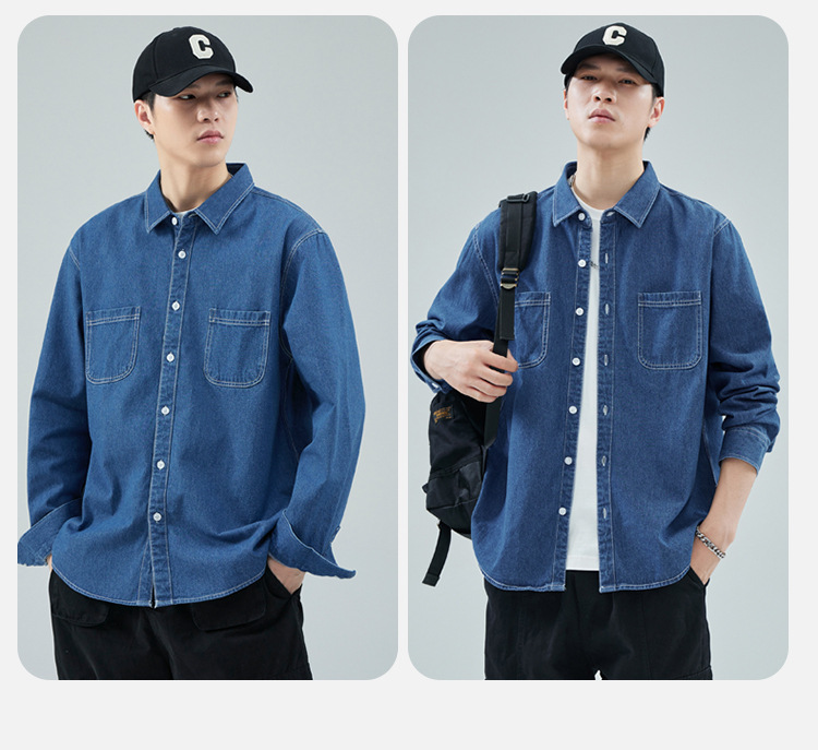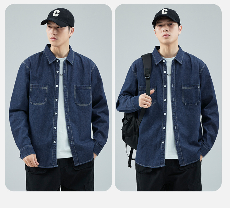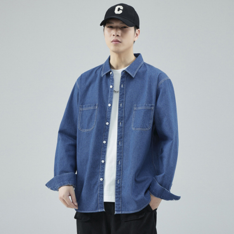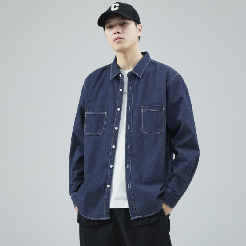 가을 새로운 남성 데님 면 긴팔 셔츠 캐주얼 셔츠 두꺼운 최고 남성 코트 트렌디스토어 가기