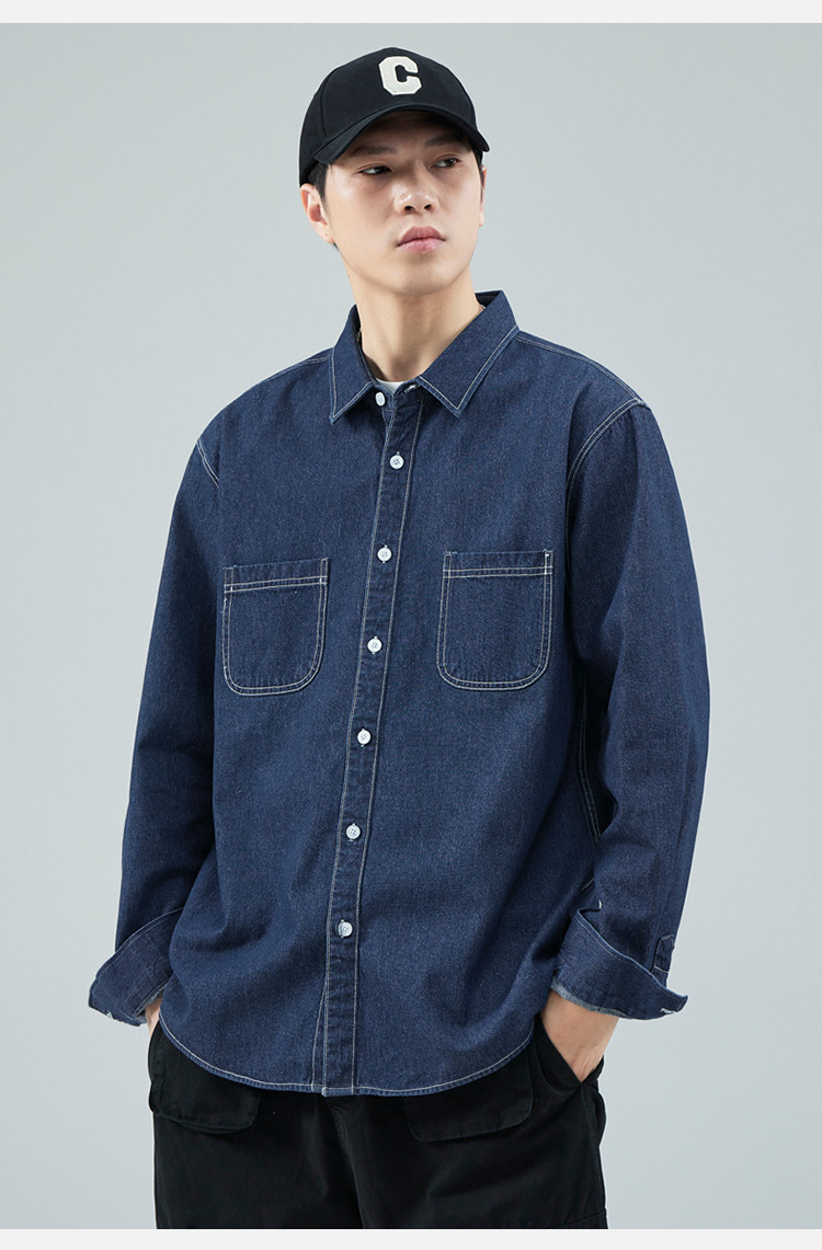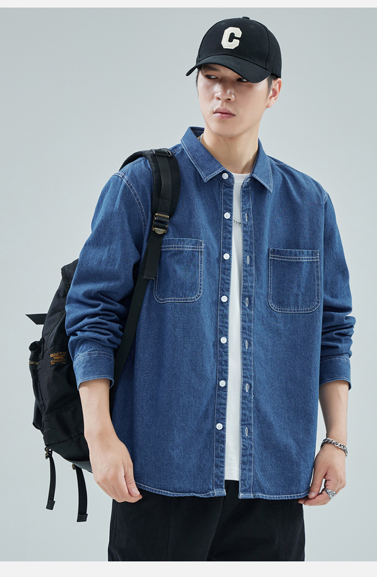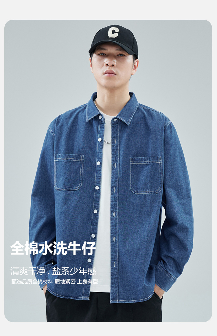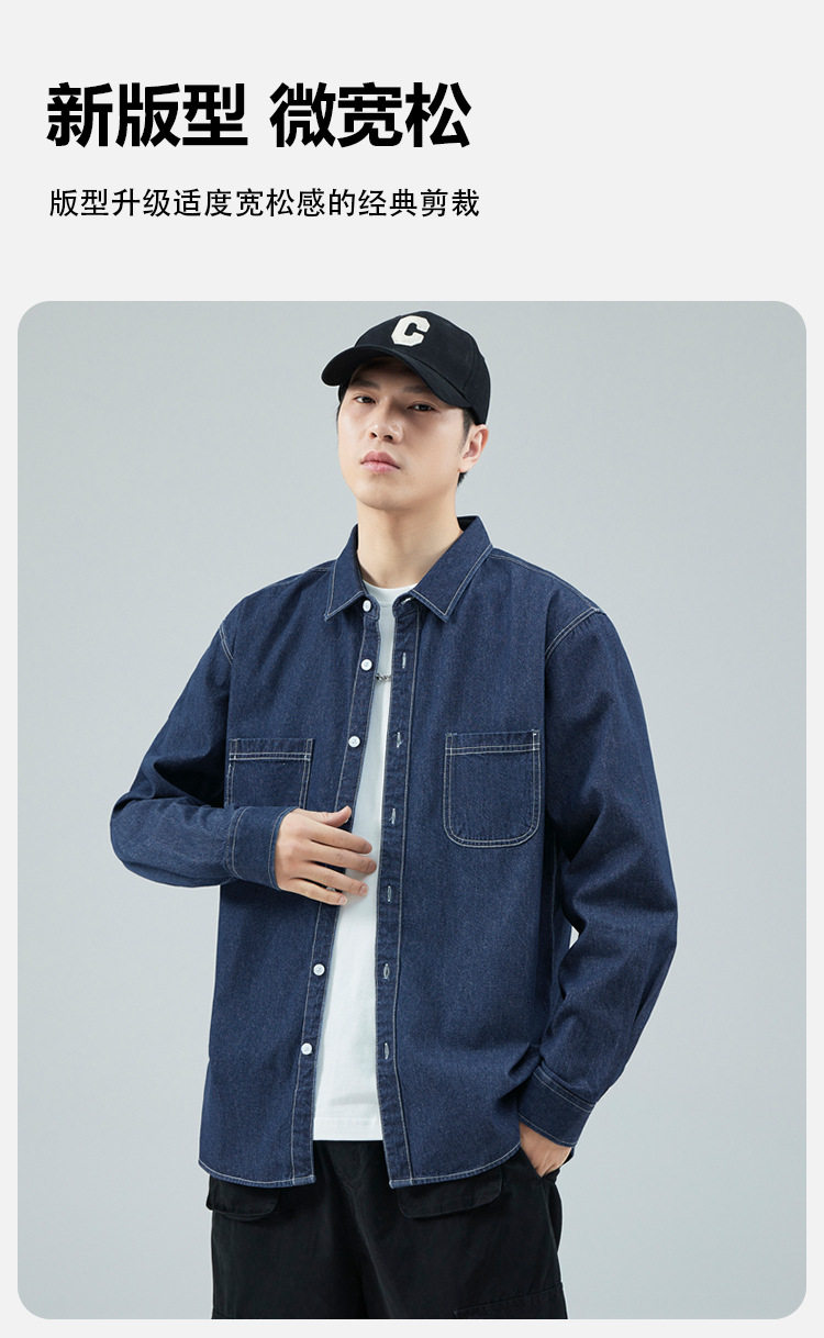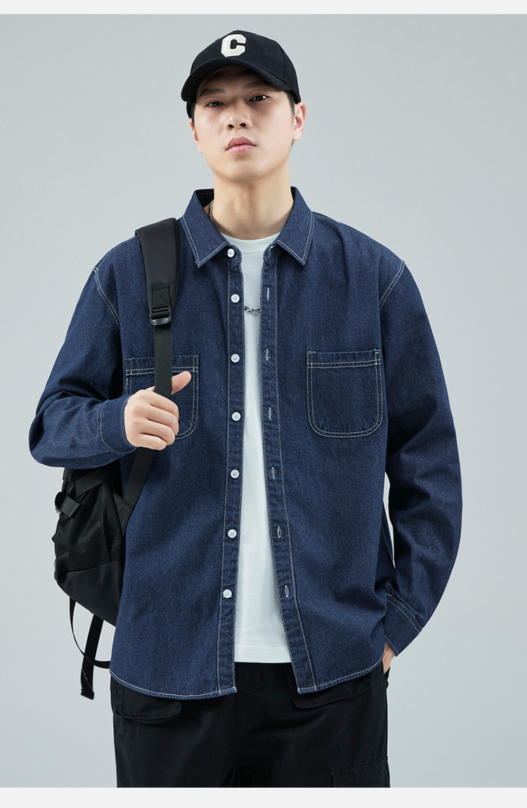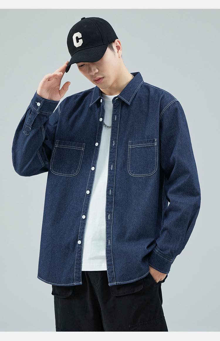 가을 새로운 남성 데님 면 긴팔 셔츠 캐주얼 셔츠 두꺼운 최고 남성 코트 트렌디스토어 가기