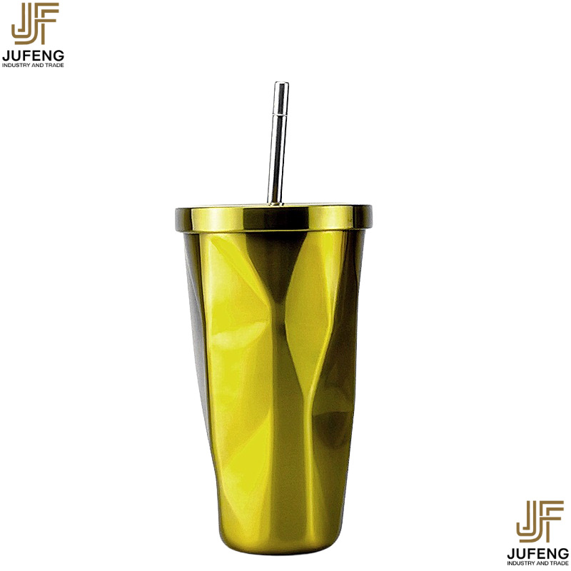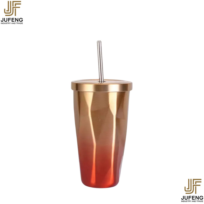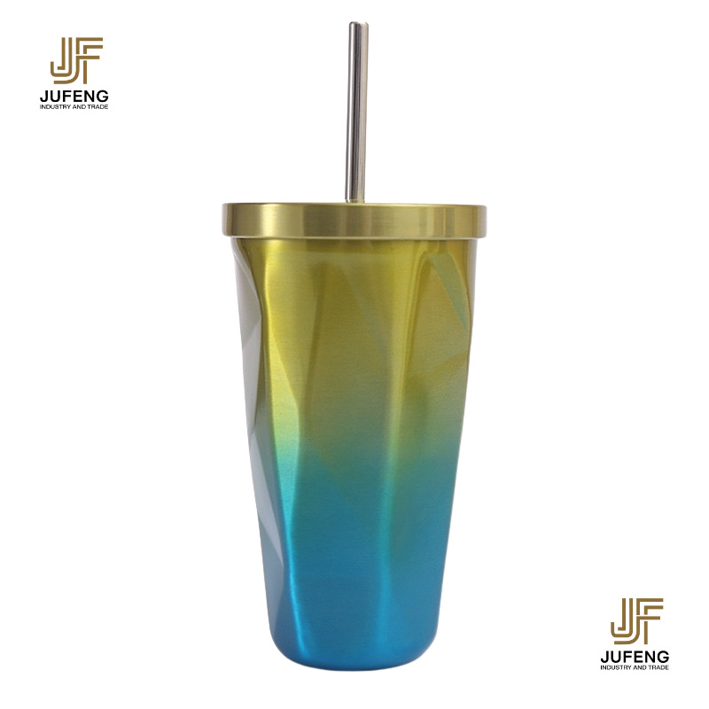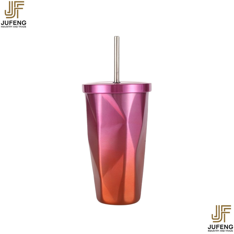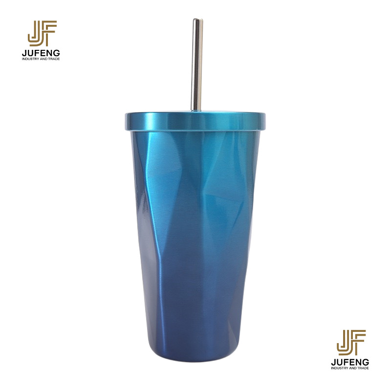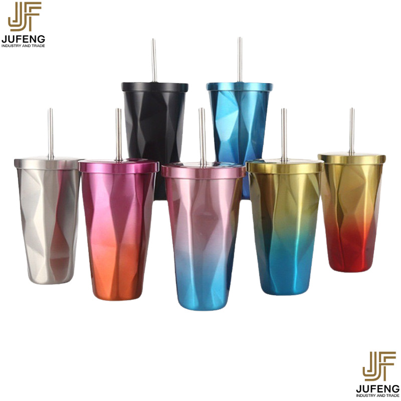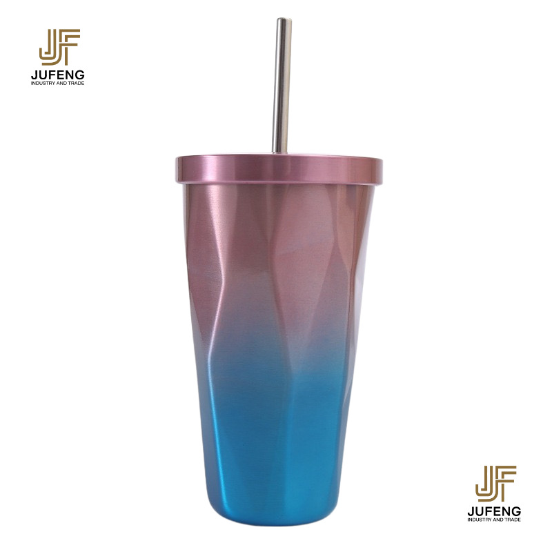 고급스럽고 세련된 디자인의 다이아몬드 모양 빨대컵, 보온보냉, 차량용 대용량, 304 스테인리스 스틸, 그라데이션 색상