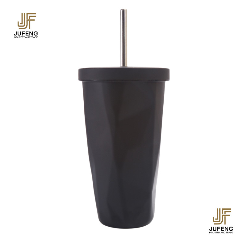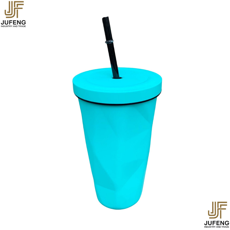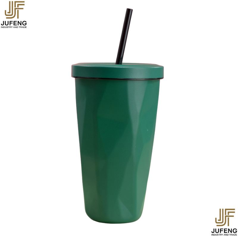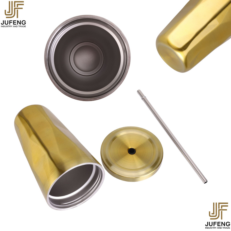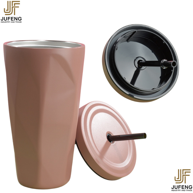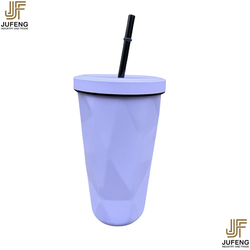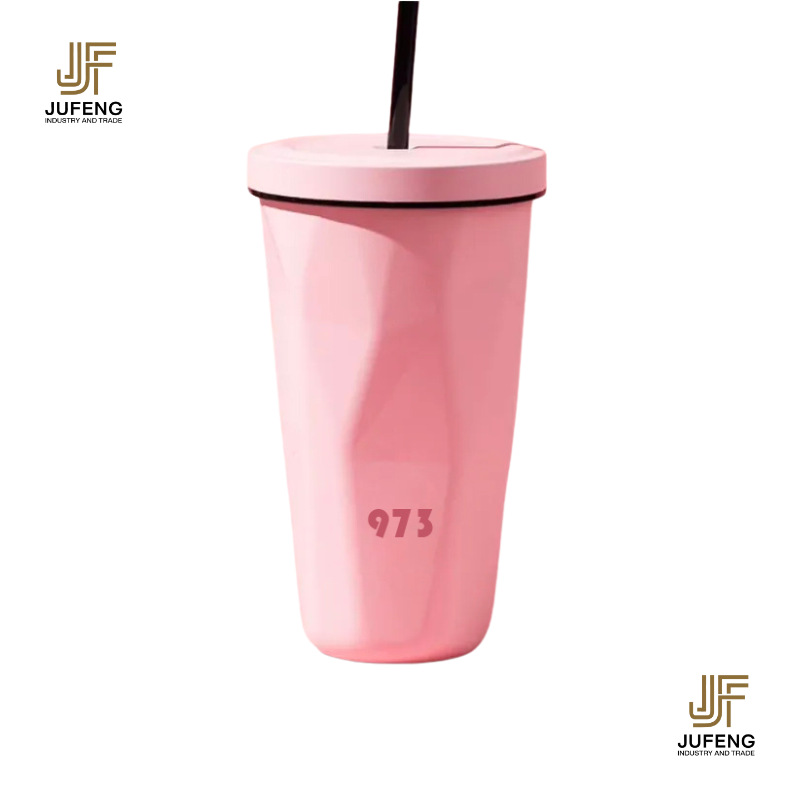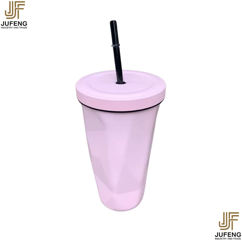 고급스럽고 세련된 디자인의 다이아몬드 모양 빨대컵, 보온보냉, 차량용 대용량, 304 스테인리스 스틸, 그라데이션 색상