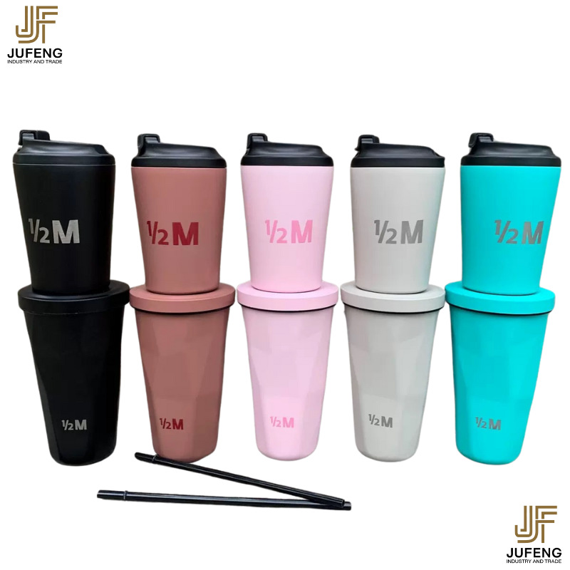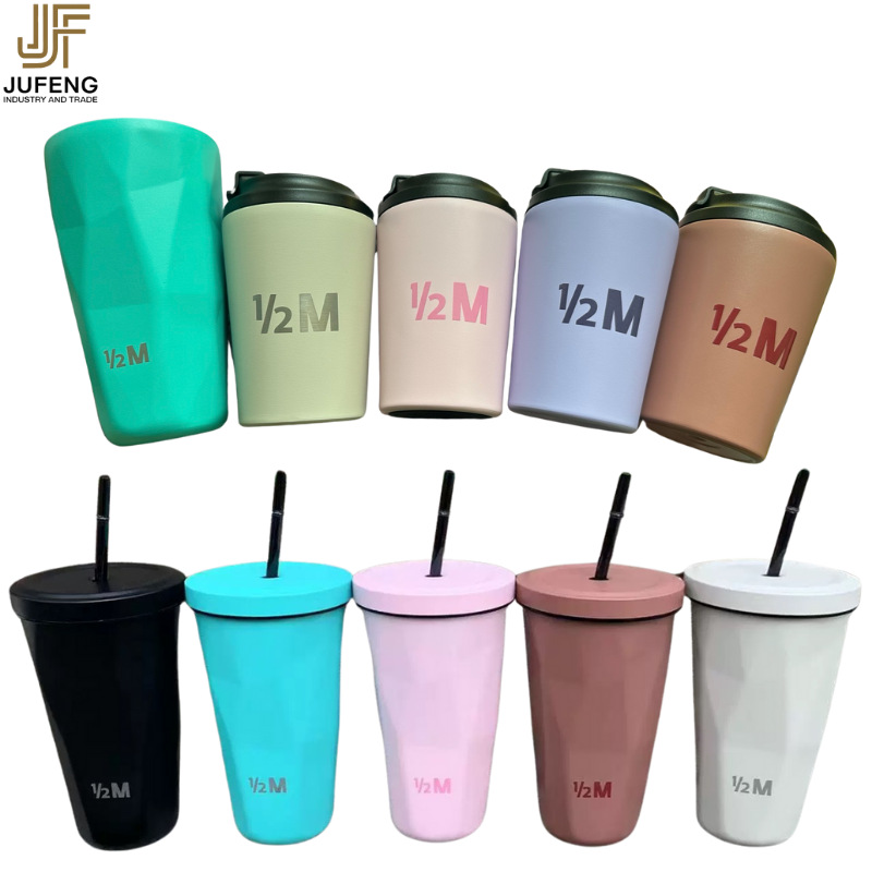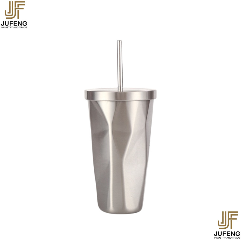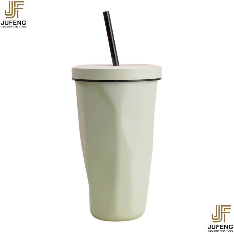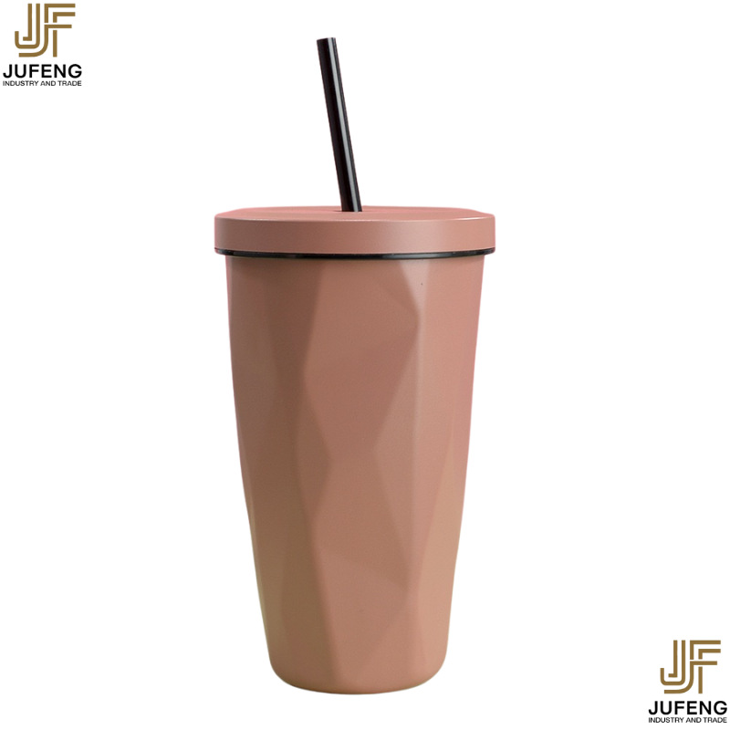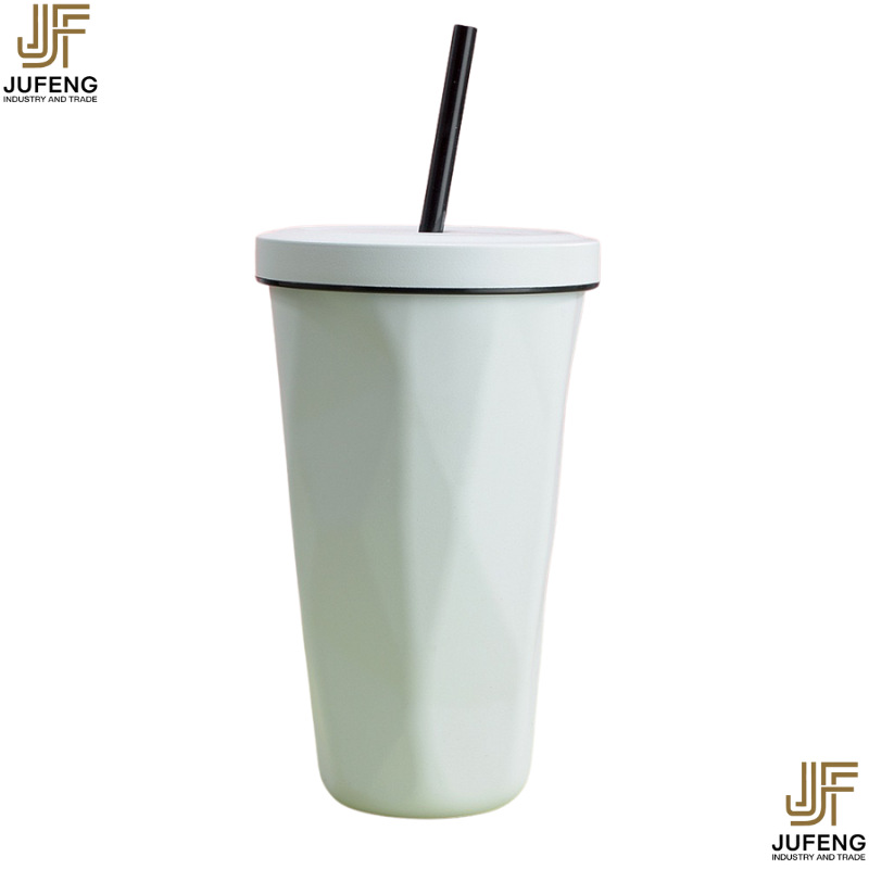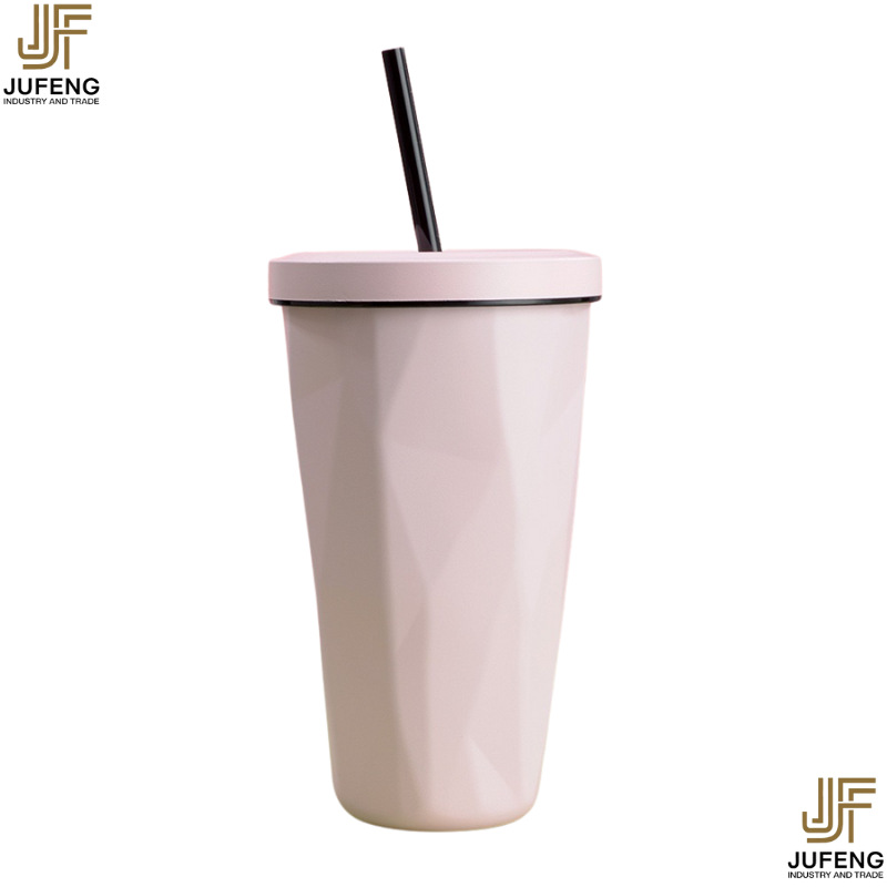 고급스럽고 세련된 디자인의 다이아몬드 모양 빨대컵, 보온보냉, 차량용 대용량, 304 스테인리스 스틸, 그라데이션 색상