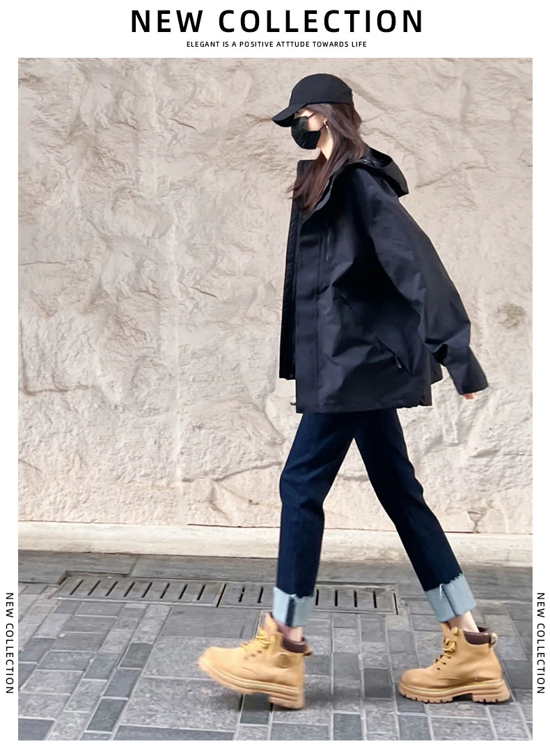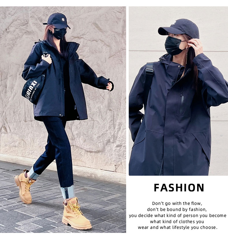 블랙 아메리칸 스타일 충전 재킷 여성의 봄과 가을 새로운 방수 방풍 야외 등산 재킷 운동복