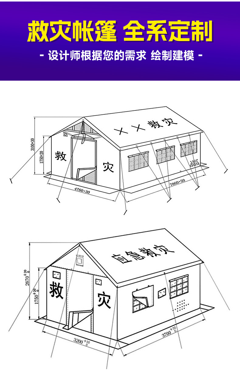 두꺼운 텐트 야외 5-8 명 옥스포드 천 3*4 텐트 더블 레이어 폭풍우 비상 재해 구호 텐트