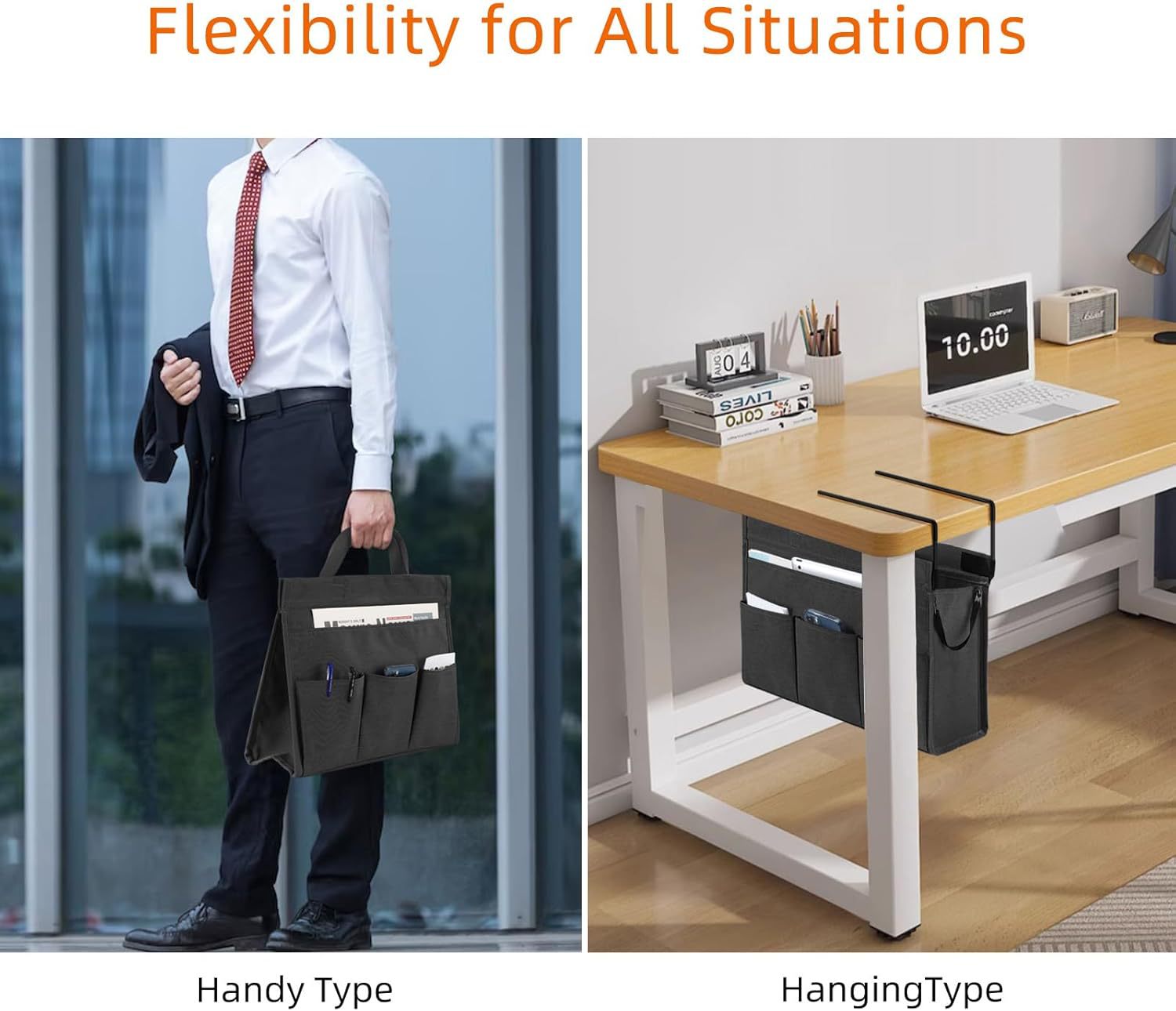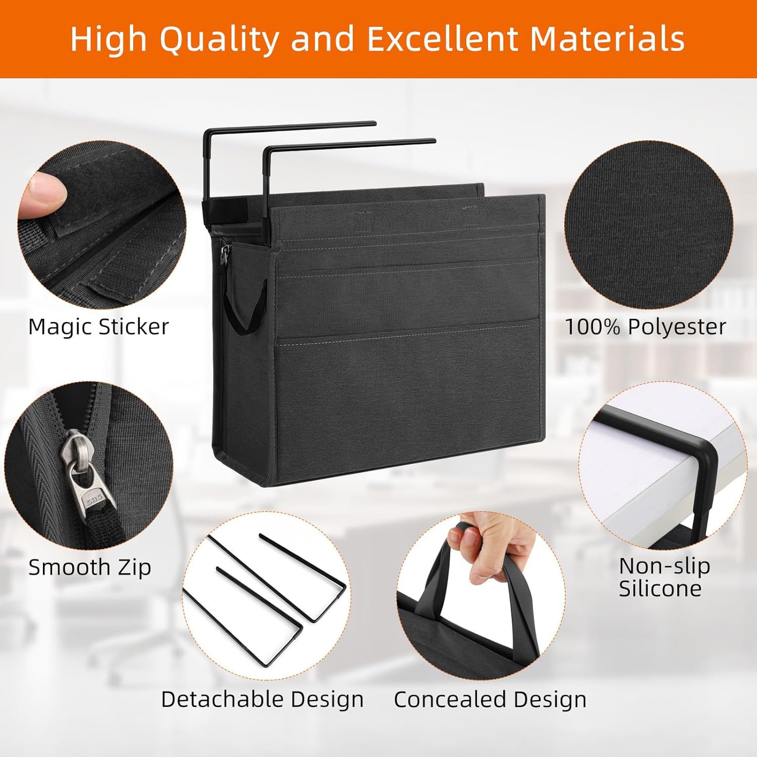 【个性化设计】桌面下文件整理器的可拆卸挂钩可以实现更多功能,手提包或工具袋;内部网眼口袋用于存放重要文件和材料;侧面的光滑拉链方便取用,可用于存放文件。文件看不到内容,不使用时也可以折叠到底部。