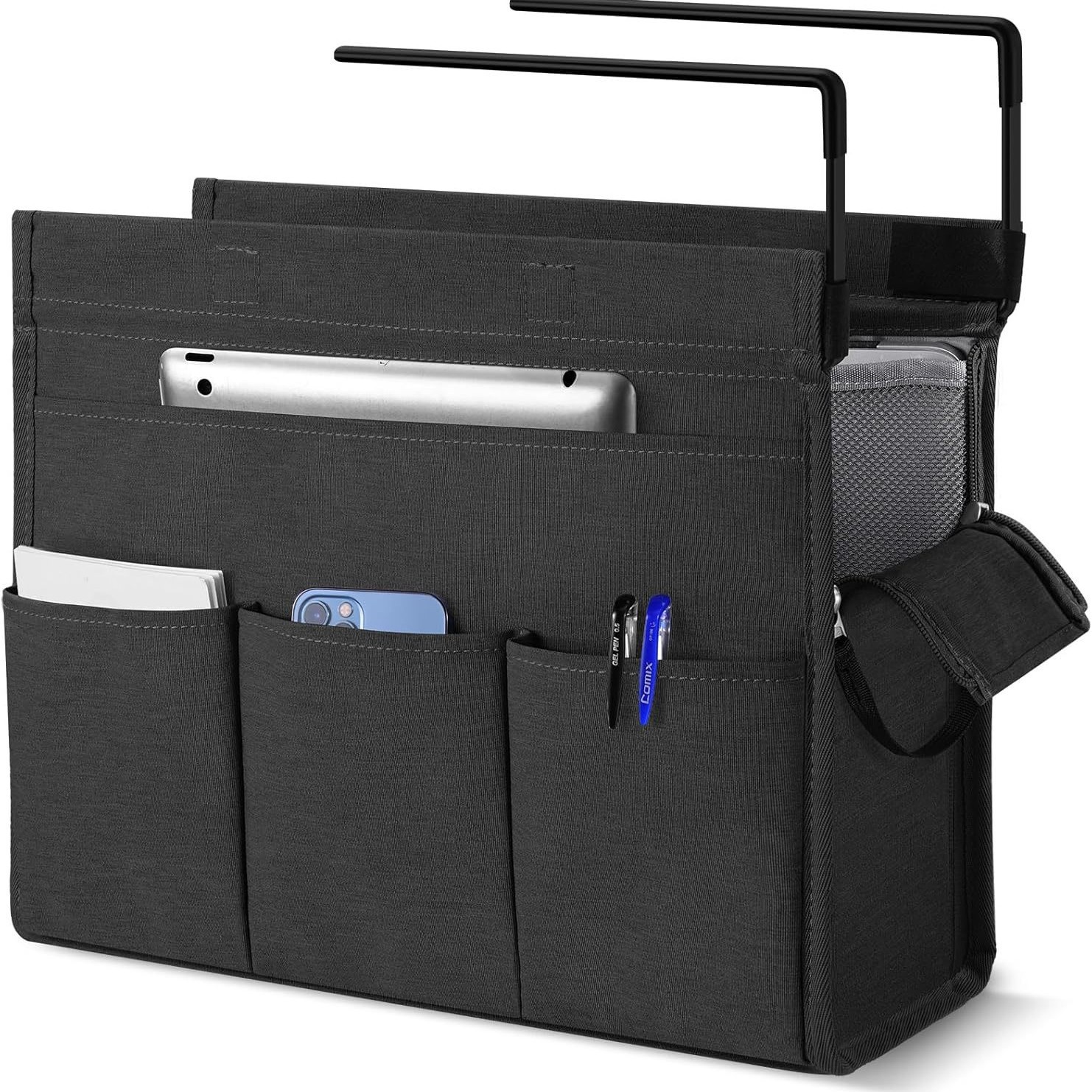 【强大的存储功能】这款桌子下收纳袋两侧的小口袋用于存放鼠标电缆、文具、智能手机等小物品。 多口袋设计可以完全解决桌面上的混乱,让您的书籍井然有序。 它可以与行李一起携带,或存放在家里的衣柜里或工作场所的储物柜中。